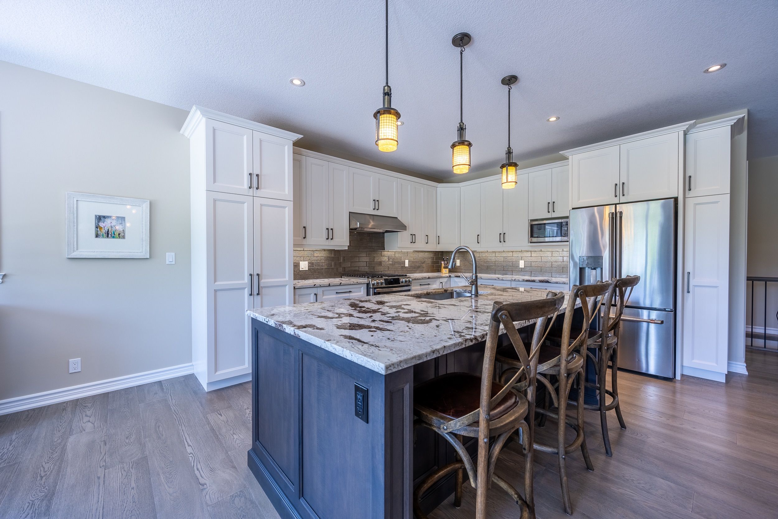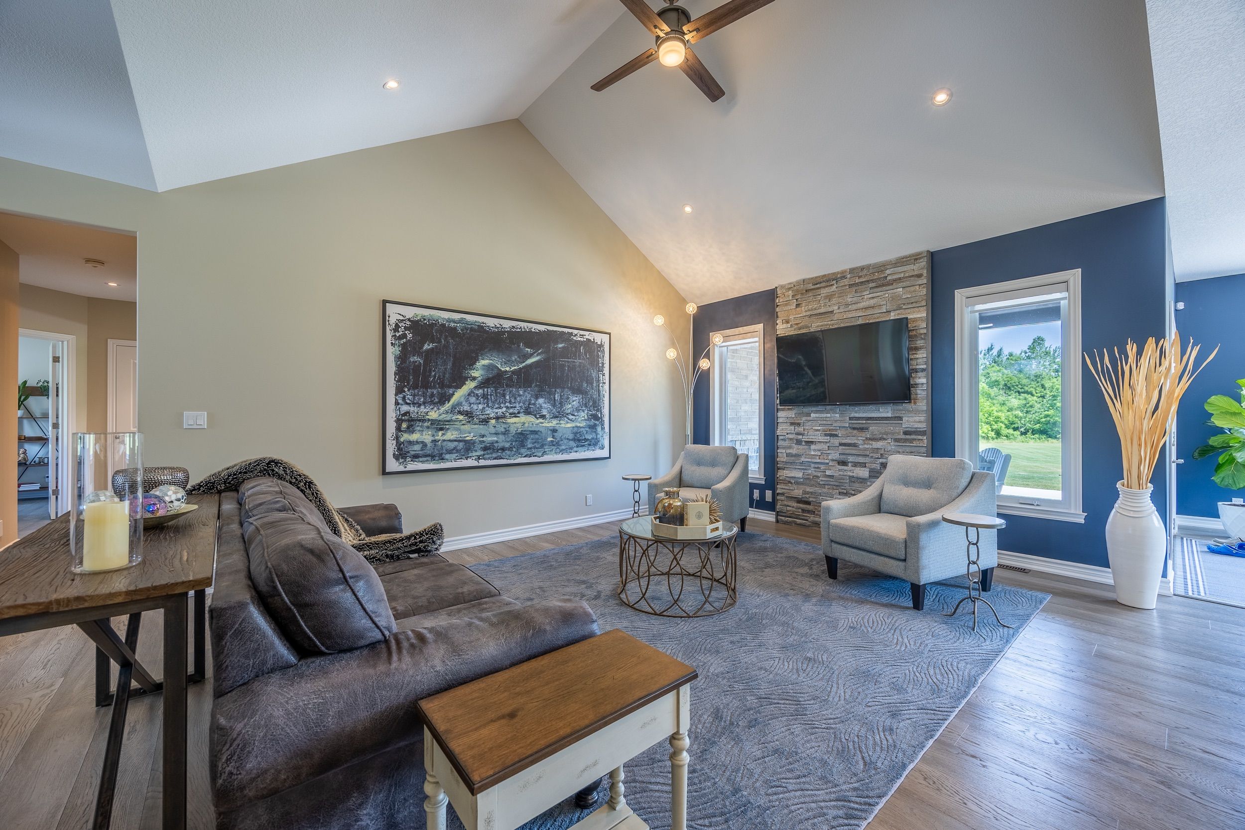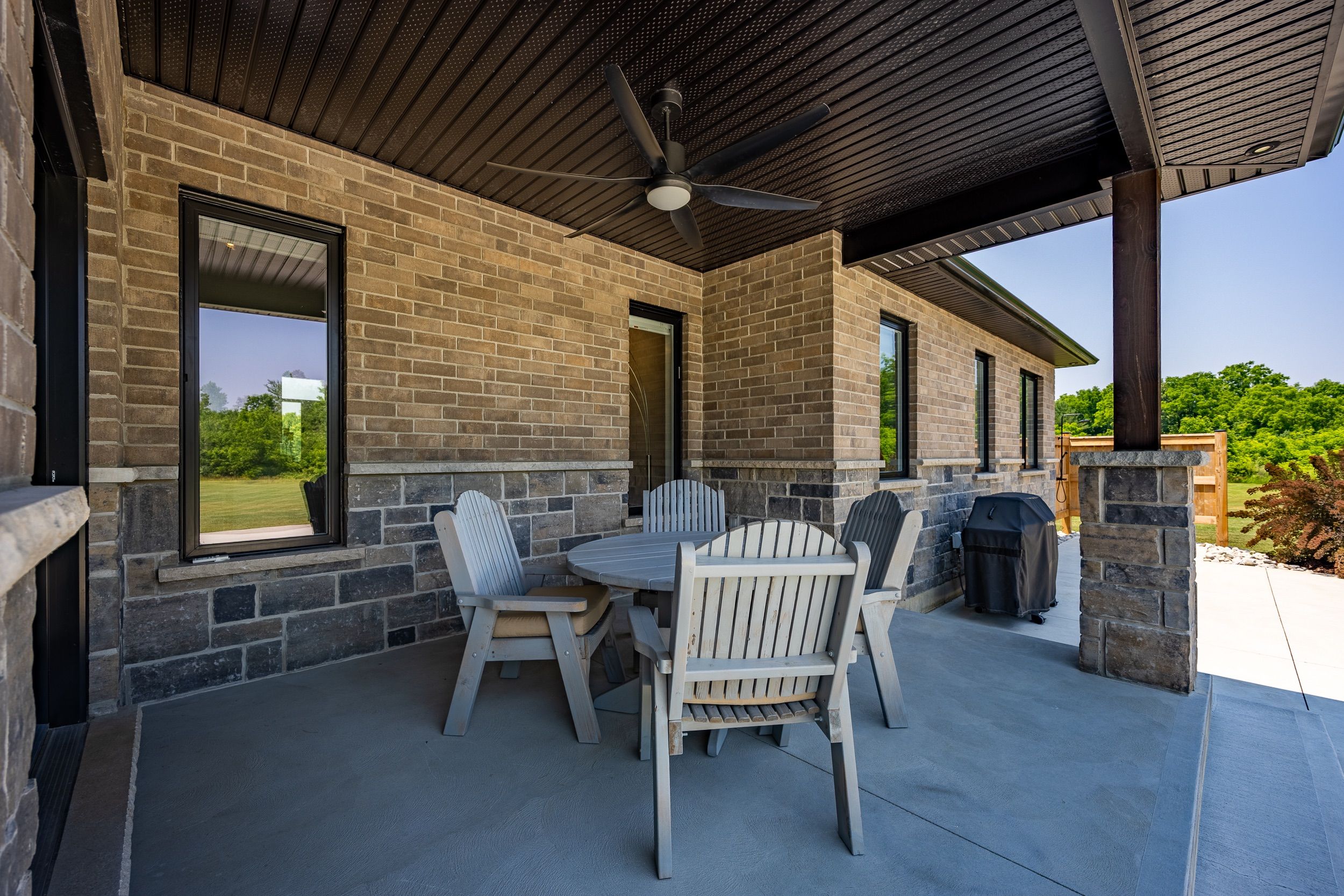 Welcome to an exceptional executive, custom-built energy star qualified residence, privately set on 7. 5+ acres and enveloped by 80+ acres of protected conservation land. This rare offering delivers refined country luxury with effortless access to the waterfront lifestyle just 15 minutes from the sandy beaches of lake erie and multiple nearby marinas, ideal for boating, fishing, and sunset escapes. Impeccably maintained, the home showcases premium craftsmanship and upscale finishes throughout. A standout feature is the oversized 1,219 sq. Ft. Four-bay garage with shelving, perfect for car collectors, recreational toys, or abundant storage. A 22 kw natural gas whole-home backup generator ensures uninterrupted comfort in every season. The interior exudes warmth and sophistication with engineered hardwood floors, granite countertops, a gas range, and a striking 8-foot custom granite kitchen island, complete with counter stools, designed for both entertaining and everyday living. Led pot lighting throughout the home and exterior enhances the bright, modern ambiance while remaining energy efficient. The fully finished basement offers an expansive recreation space featuring 9-foot ceilings, large windows, and a cozy gas fireplace, creating the perfect retreat for relaxed evenings or hosting guests. Outdoors, your private resort-style setting awaits. Enjoy a 2,300+ sq. Ft. Concrete patio complete with an outdoor shower, and a dedicated fire-pit lounge with adirondack chairs. Concrete porches at both the front and rear provide durable, low-maintenance spaces to take in the peaceful surroundings. Additional amenities include two wells (one dedicated to lawn irrigation) and a 10' x 24' shed with hydro and water, ideal for hobbies, gardening, or additional storage. Whether you're entertaining in the elegant indoor spaces or unwinding outdoors after a day on the water or hiking in the woods , this thoughtfully designed property offers a rare blend of privacy, luxury.