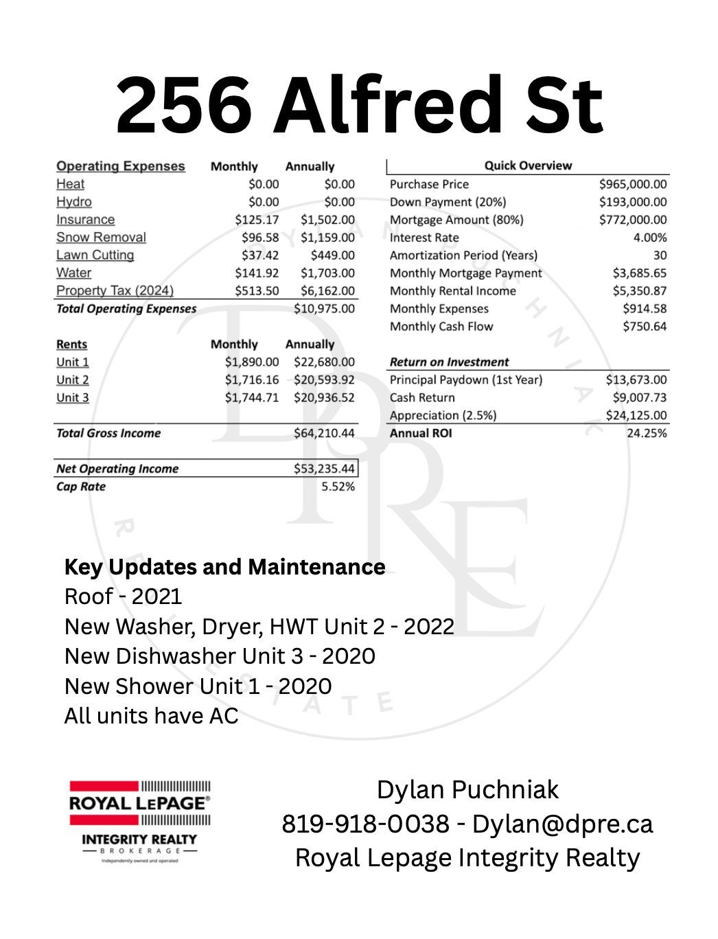 • Upgraded kitchens and bathrooms in all units for tenant satisfaction.