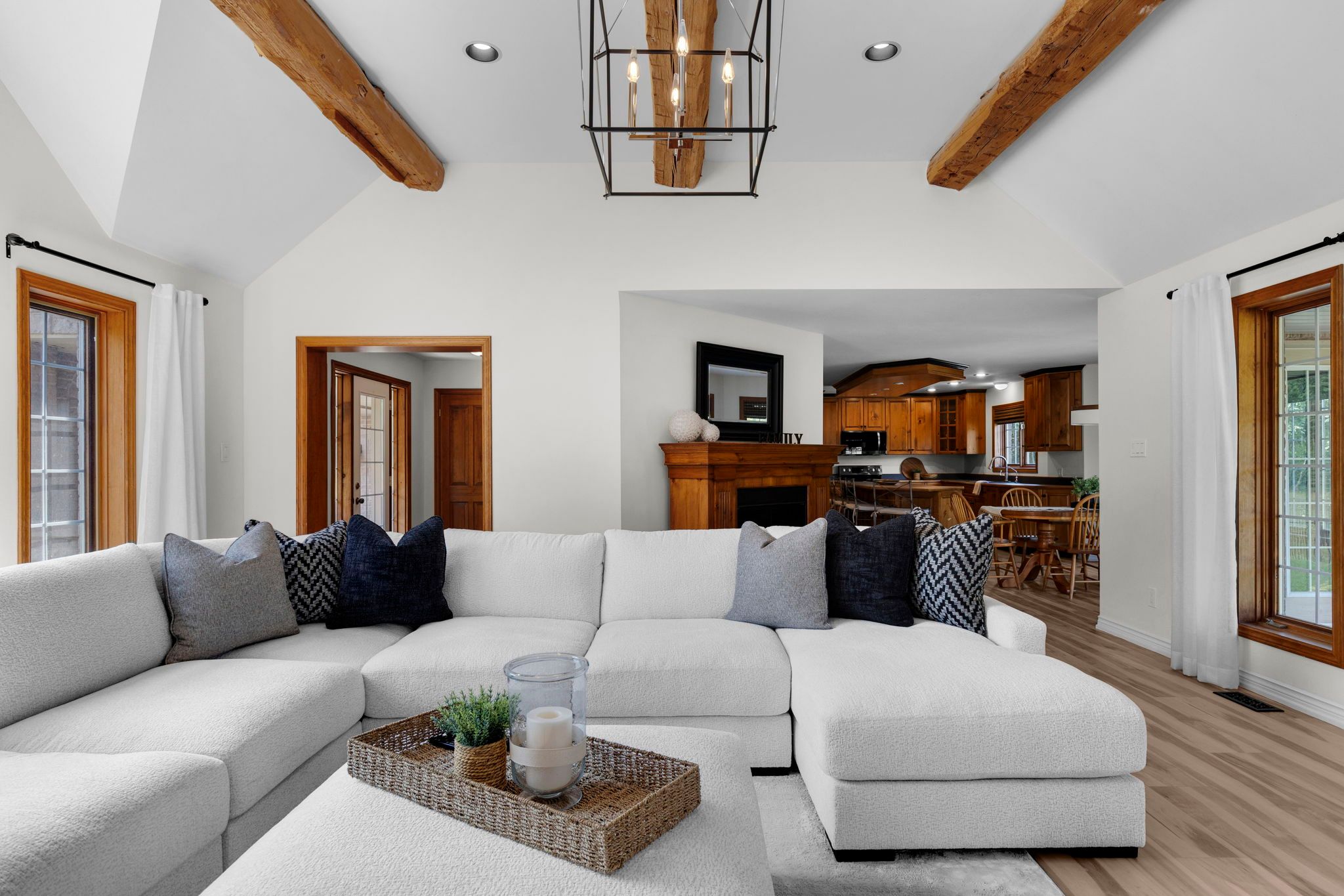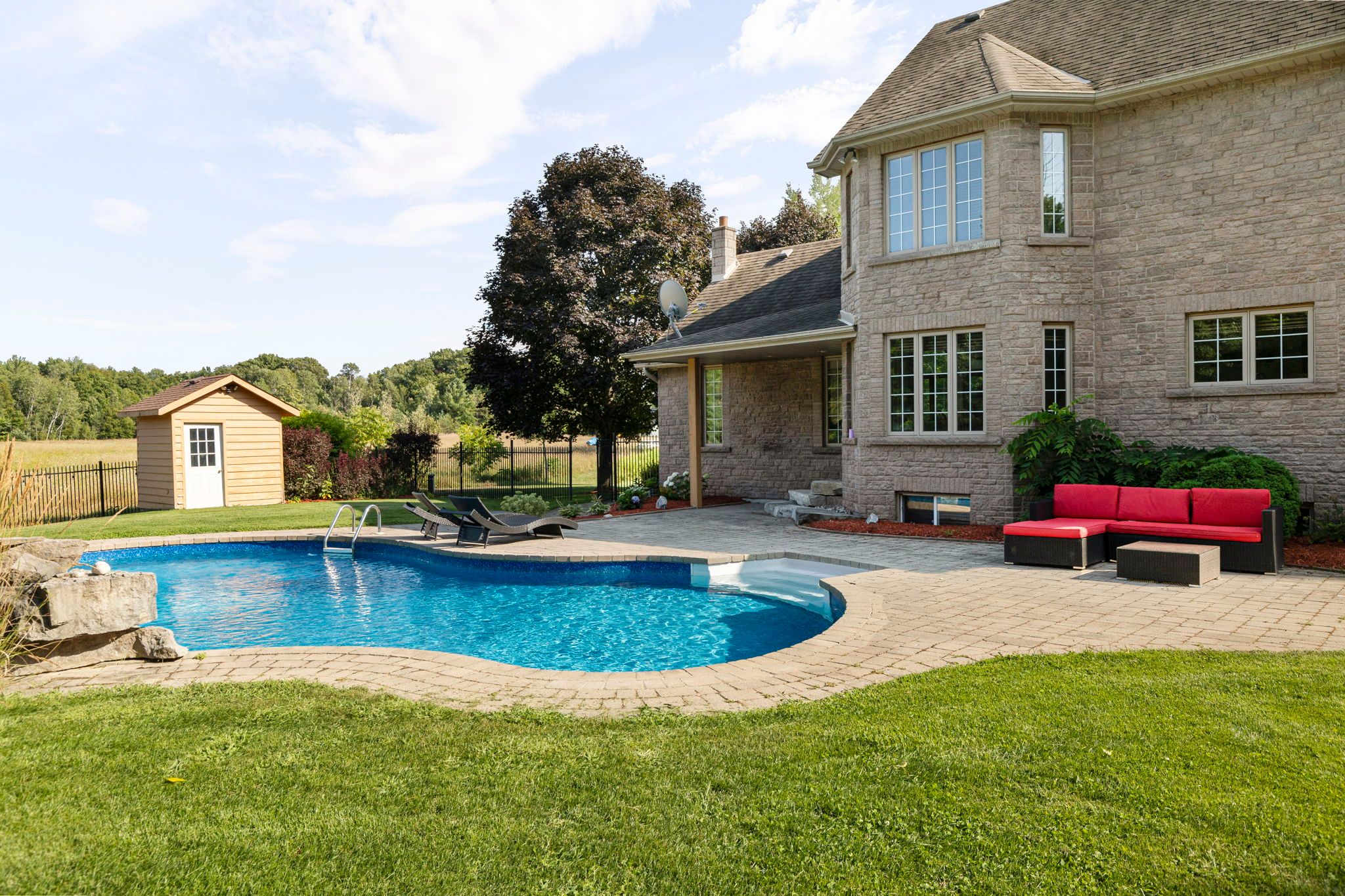 Introducing 256 denney drive, a beautifully crafted residence nestled on a nearly 2 acre private, professionally landscaped lot in one of essa's most desirable neighborhoods. This exquisite property offers the perfect blend of elegance, space, and tranquility, making it a true sanctuary just minutes from barrie, angus, and alliston. Spanning over 3,500 sq. Ft. Of finished living space, this stunning home features 4+1 bedrooms and 4 bathrooms, thoughtfully designed to accommodate both family living and stylish entertaining. As you arrive, a generous driveway welcomes you, leading to an oversized garage -- ideal for vehicles, storage, and workshop needs. Mature trees and lush landscaping frame the home, offering both privacy and striking curb appeal. Step inside to discover a residence where pride of ownership is immediately evident. The timeless color palette, paired with custom finishes throughout, sets a warm and inviting tone. The gourmet kitchen boasts elegant cabinetry, a charming bay window, and direct access to an expansive patio -- perfect for hosting gatherings or enjoying serene morning coffees. The living room is truly the heart of the home, featuring soaring 12' ceilings, exposed natural wood beams, and a stunning chandelier surrounded by large windows that flood the space with natural light. Downstairs, a fully finished basement expands your living potential, offering a large rec room, additional bedroom, and ample space to customize to your needs -- whether its a home gym, office, or media room. Step outside and unwind in your private backyard oasis, complete with a beautiful inground pool, surrounded by mature landscaping that creates a resort-like atmosphere all summer long. 256 denney drive is more than a home -- its a lifestyle. If you're seeking space, privacy, and understated luxury in a prime location, this property is a must-see. Don't miss this exceptional opportunity to own a truly one-of-a-kind home in essa.