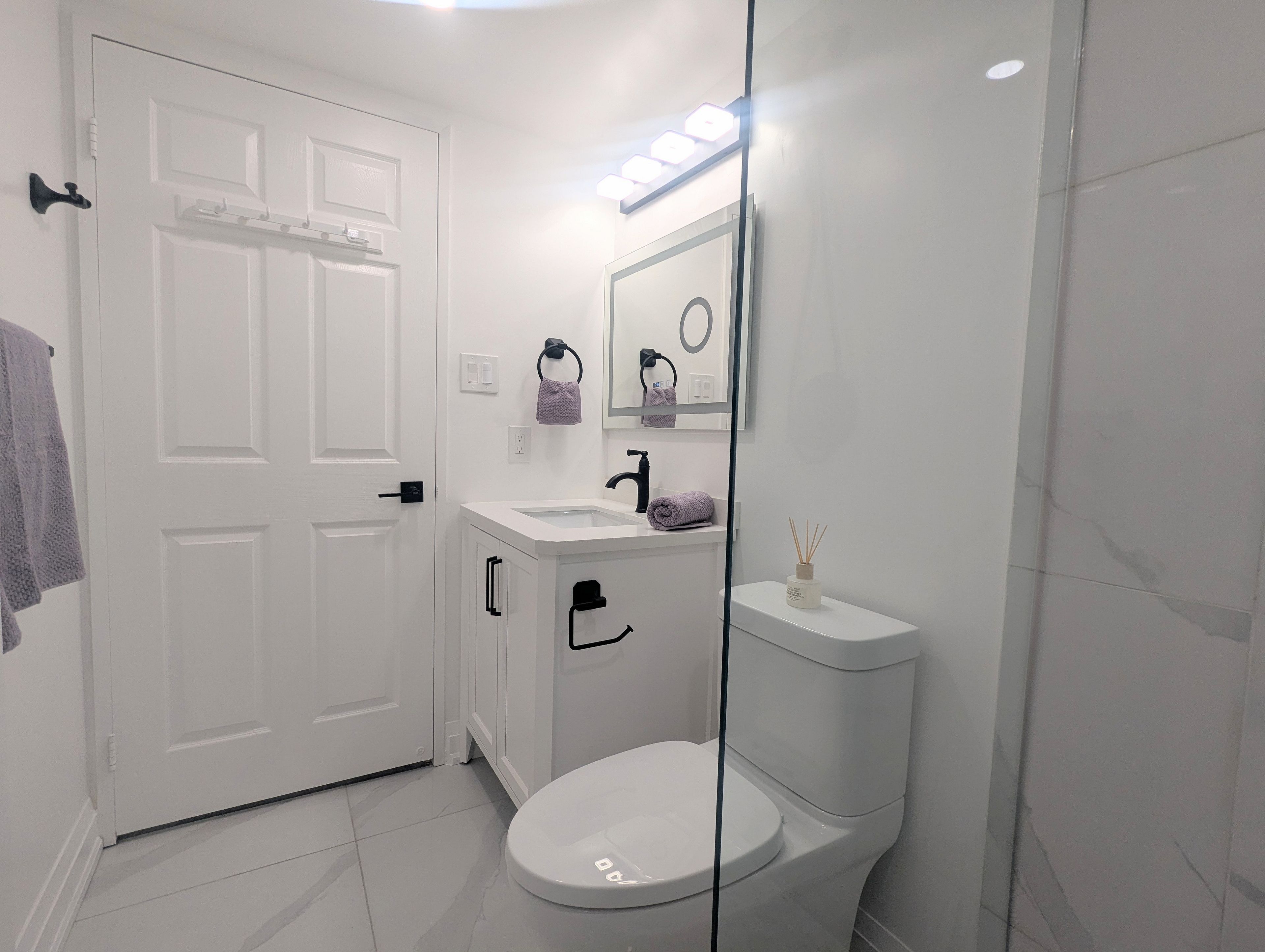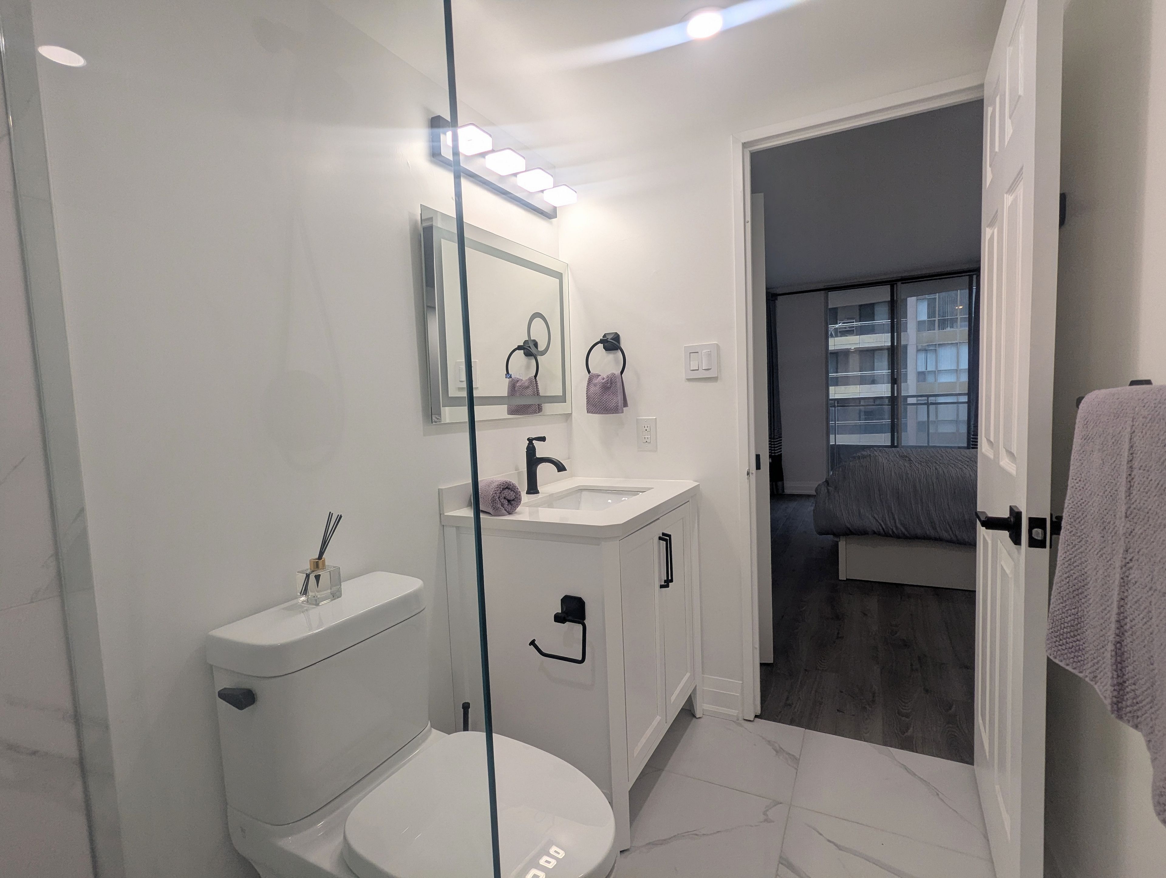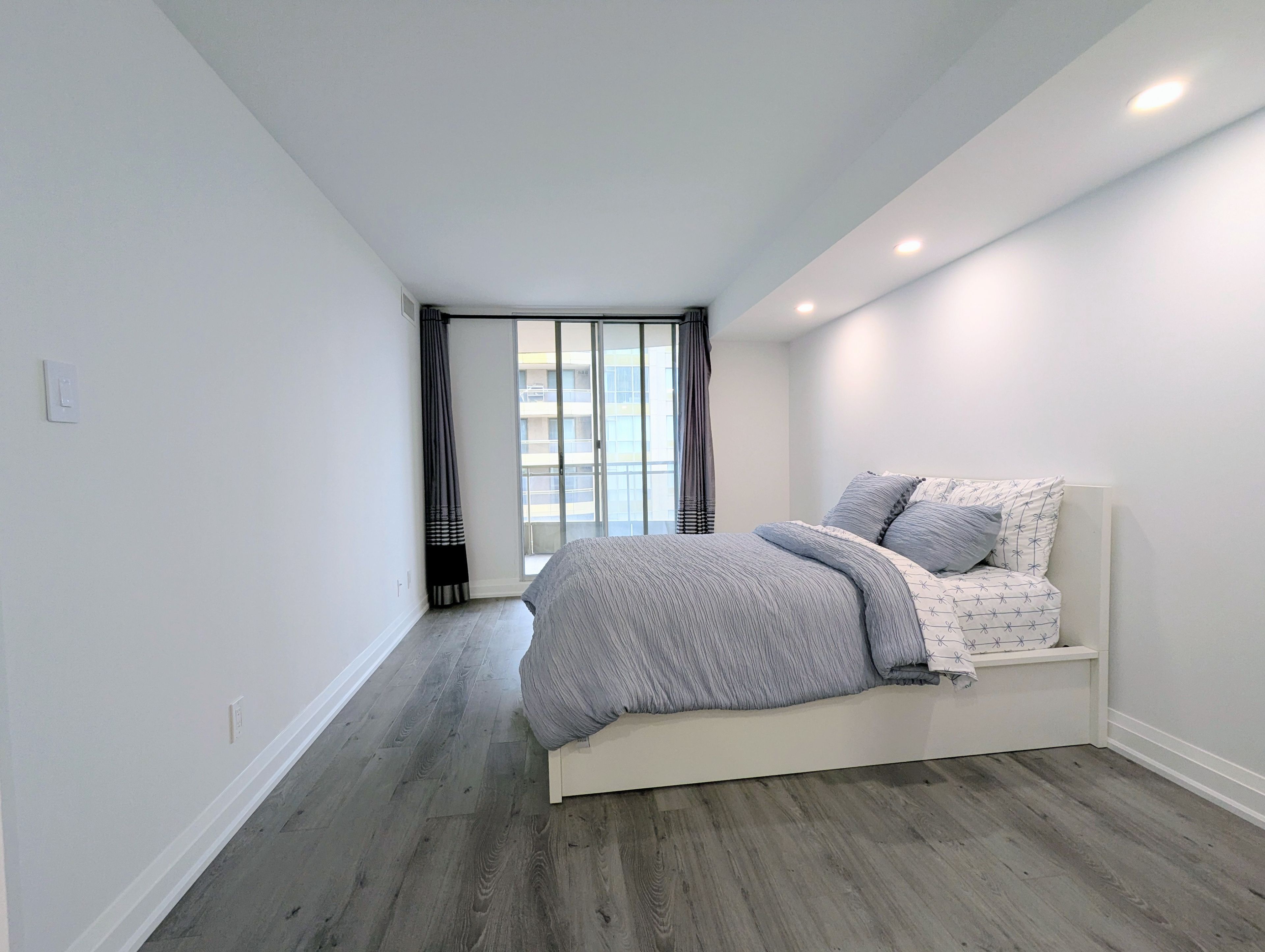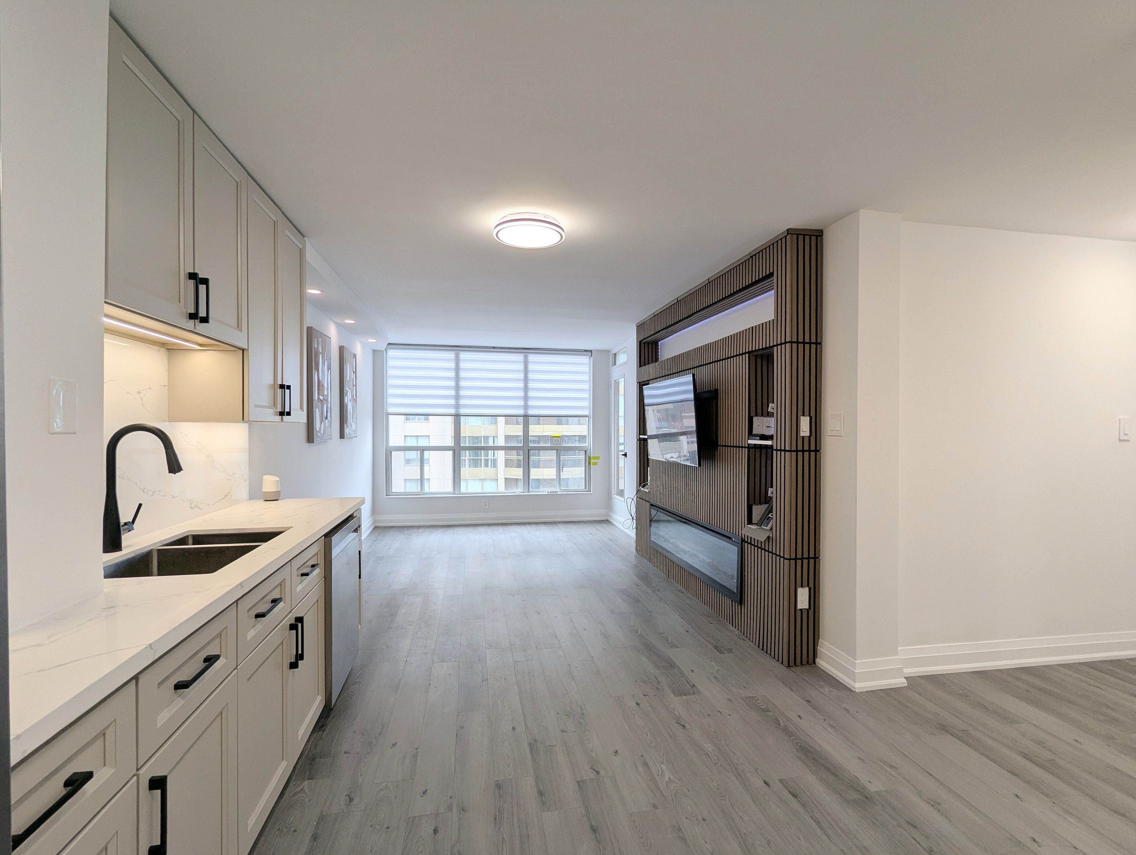 Welcome to imperial 1 in the heart of north york - a fully renovated, designer 2-bedroom, 2-full-washroom offering effortless, modern living. Renovated top-to-bottom (2025-2026) with a brand-new kitchen that boasts rare 42" (107 cm) upper custom cabinets, lazy susan, spice rack, and easy-close doors and cabinets for exceptional storage. Motion-sensing under-cabinet lighting (with day and night settings) and custom-made backsplash and stone countertops. New contemporary washrooms with 2' x 2' calacatta tiles and motion-sensing lights that are programmed to turn on at 20% from 11:30 pm - 6:30 am (can be adjusted to anyone's preference). The unit has new dimmable pot lights and new waterproof vinyl flooring, new baseboards and smooth ceilings throughout. This smart home blends style with convenience. Enjoy the gentle night light provided by your decora receptacle night light covers. The living room features a custom entertainment wall unit with a built-in electric fireplace and a mounted tv with hdmi wiring (ps5 pro compatible) and gigabit ethernet and smart dimmable mood lighting. Enjoy smart home conveniences, including the latest google thermostat, smart appliances, and motion-sensing, dimmable lighting. The open-concept living/dining/kitchen layout flows onto a 120 sq ft balcony with new waterproof and weather-resistant flooring. Balcony access from the living room and both bedrooms creates an indoor/outdoor lifestyle perfect for morning coffee or evening relaxation. The primary bedroom includes a very large walk-in closet. One parking space and one locker included. All utilities are covered in the maintenance fee. Prime location - steps to ttc, top restaurants, shopping and groceries, with excellent schools nearby, including mckee elementary and earl haig secondary school. Building amenities include sauna, party room, concierge, fitness centre and visitor parking.