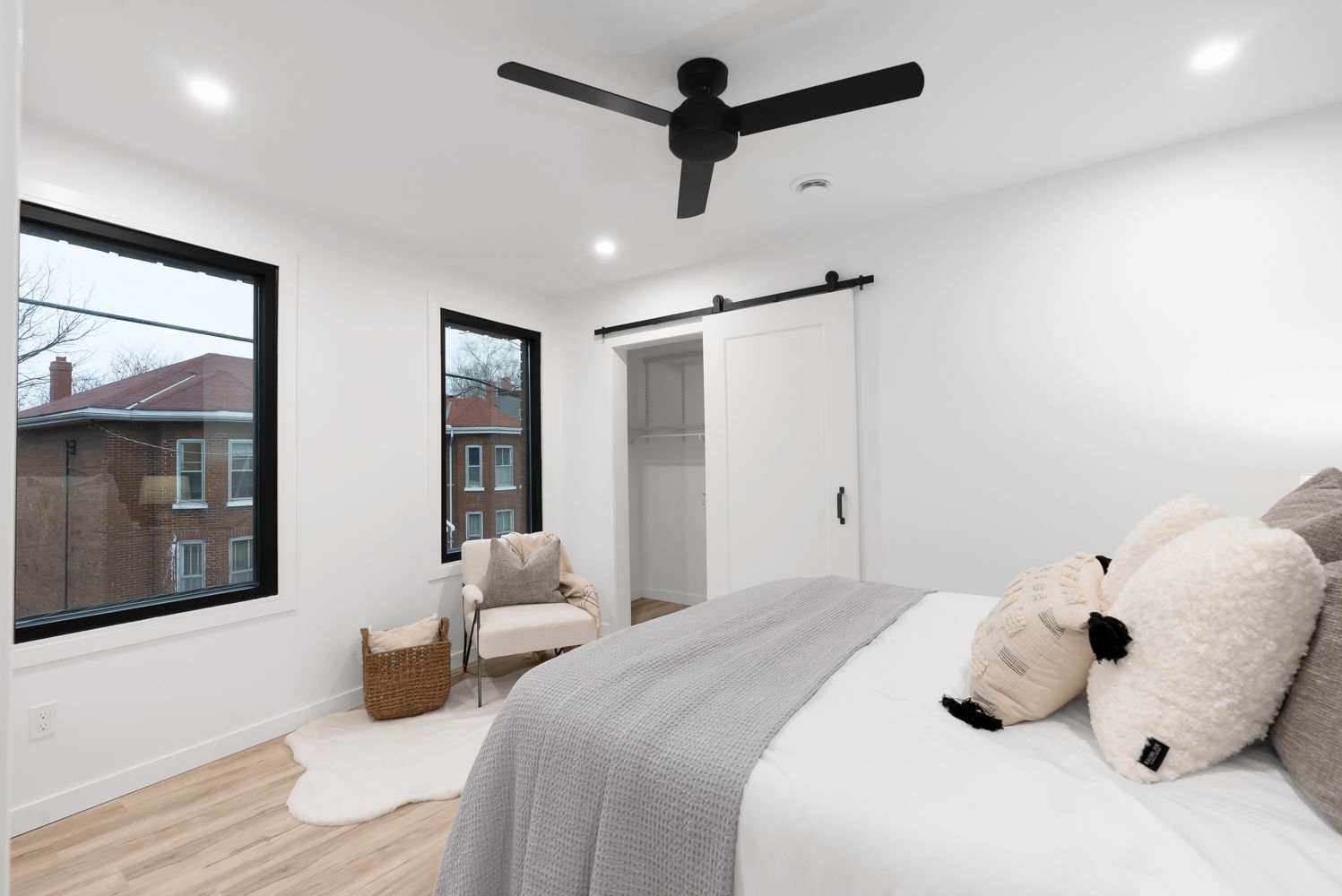Located in the heart of historic downtown cobourg, the judge's chambers offers a beautifully renovated condo apartment in a distinctive, well maintained building. Suite 1 is located on the second floor and features an open-concept layout designed for both comfort and functionality. A welcoming foyer includes reclaimed custom wood bench seating and shiplap detailing, setting the tone for the thoughtful finishes throughout. The kitchen is finished with quartz waterfall countertops, built-in stainless steel appliances, and a breakfast bar overlooking the living area. Large picture windows with solar window film provide excellent natural light, complemented by a feature wall that adds visual interest to the space. The spa-inspired bathroom includes dual sinks and a modern, calming design. The primary bedroom offers large windows, a feature wall, and a spacious closet with built-in storage. In-suite laundry adds everyday convenience. Heat, hydro, air conditioning, and water are included. The building is non-smoking. Parking is not included; however, municipal parking permits are available in the lot located behind the building. The location offers a walkable lifestyle just steps to restaurants, shopping, and cobourg beach, with easy access to via rail and highway 401. A virtual tour and interactive storybook are available for additional details.