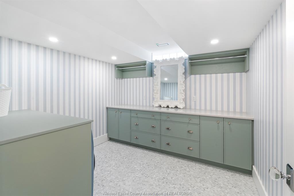 louvered doors w/ glass hardware, stunning millwork, custom built-ins, & designer wallpaper elevate