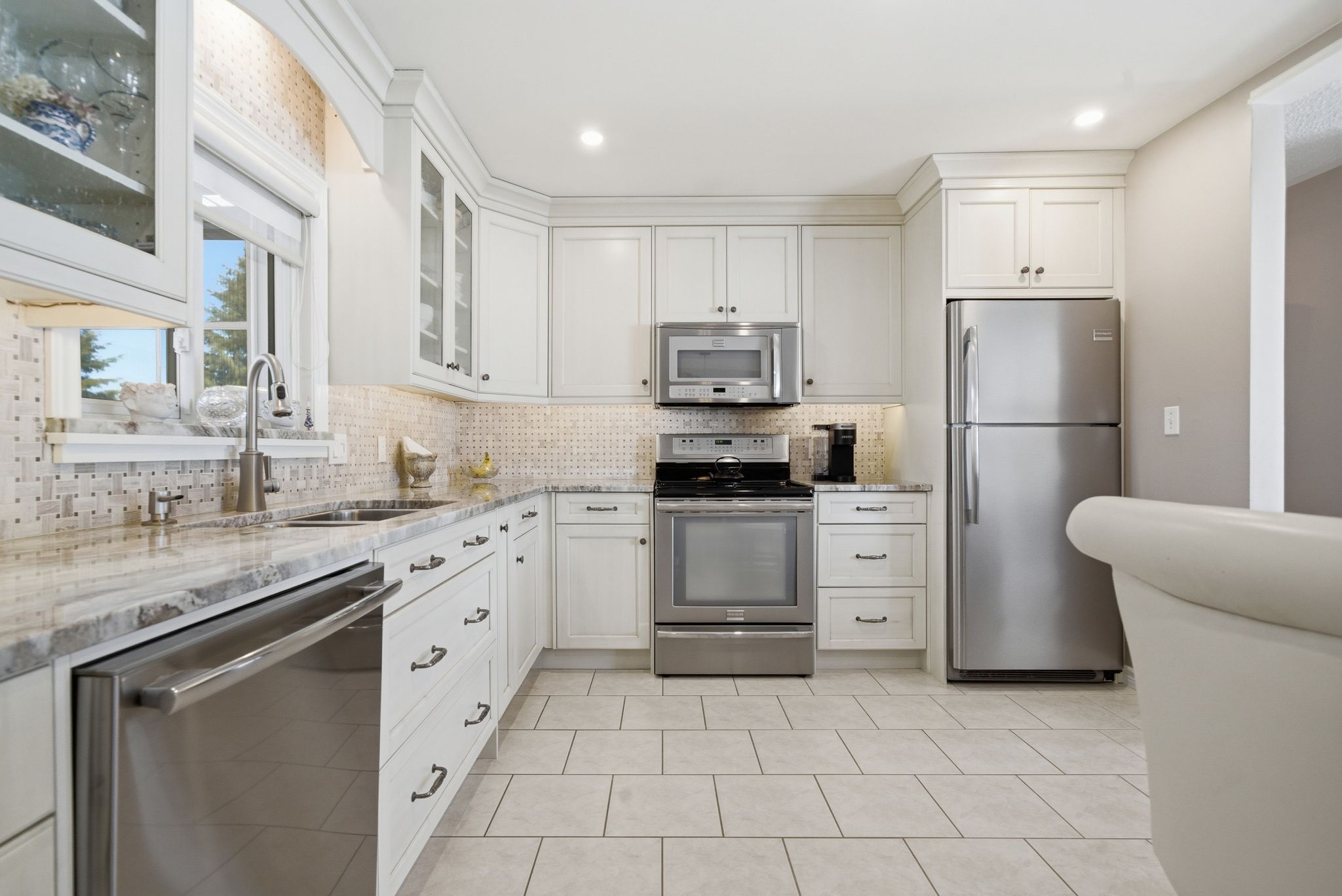 • Bright main floor features a large living room and modern L-shaped kitchen.