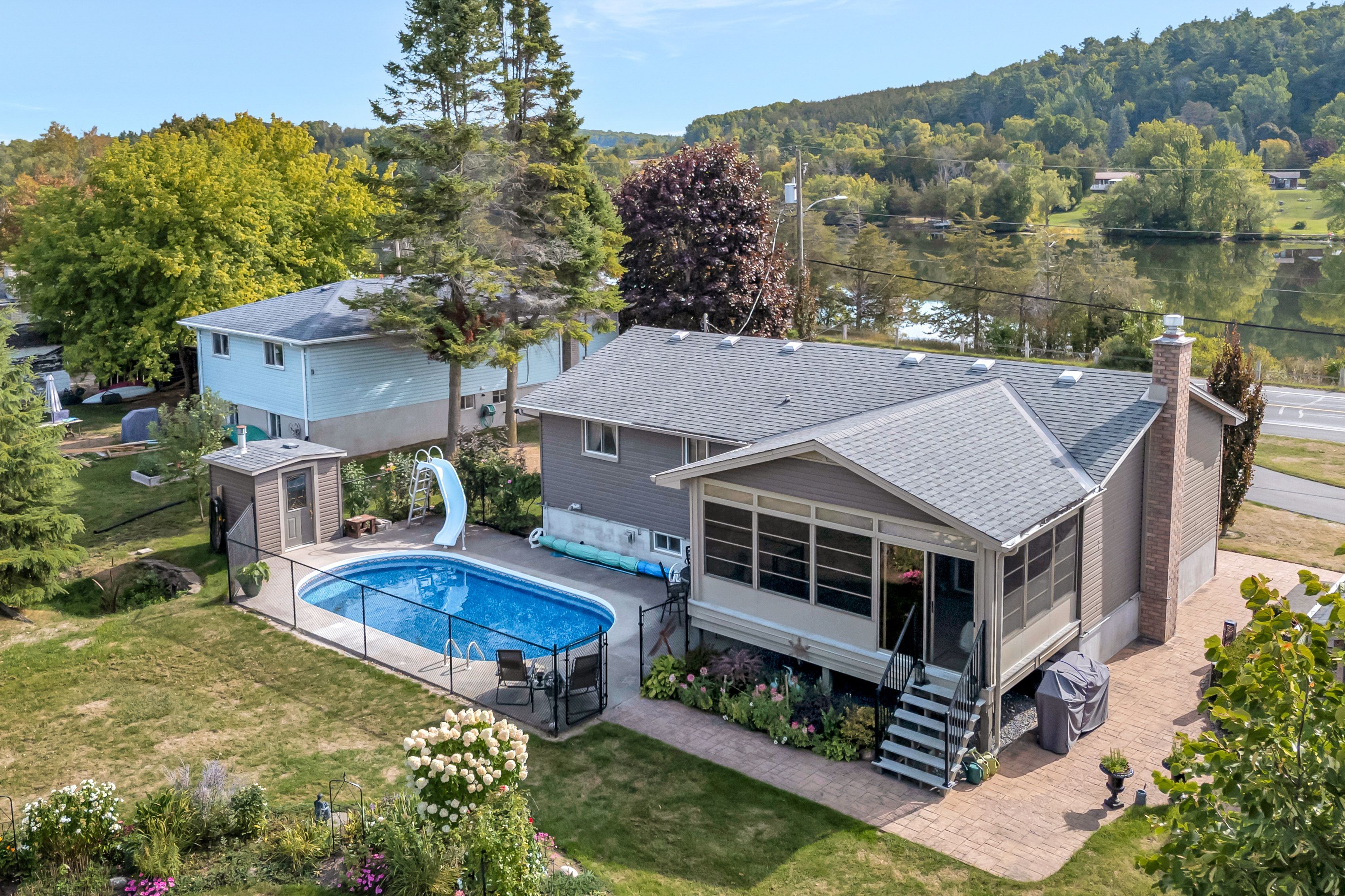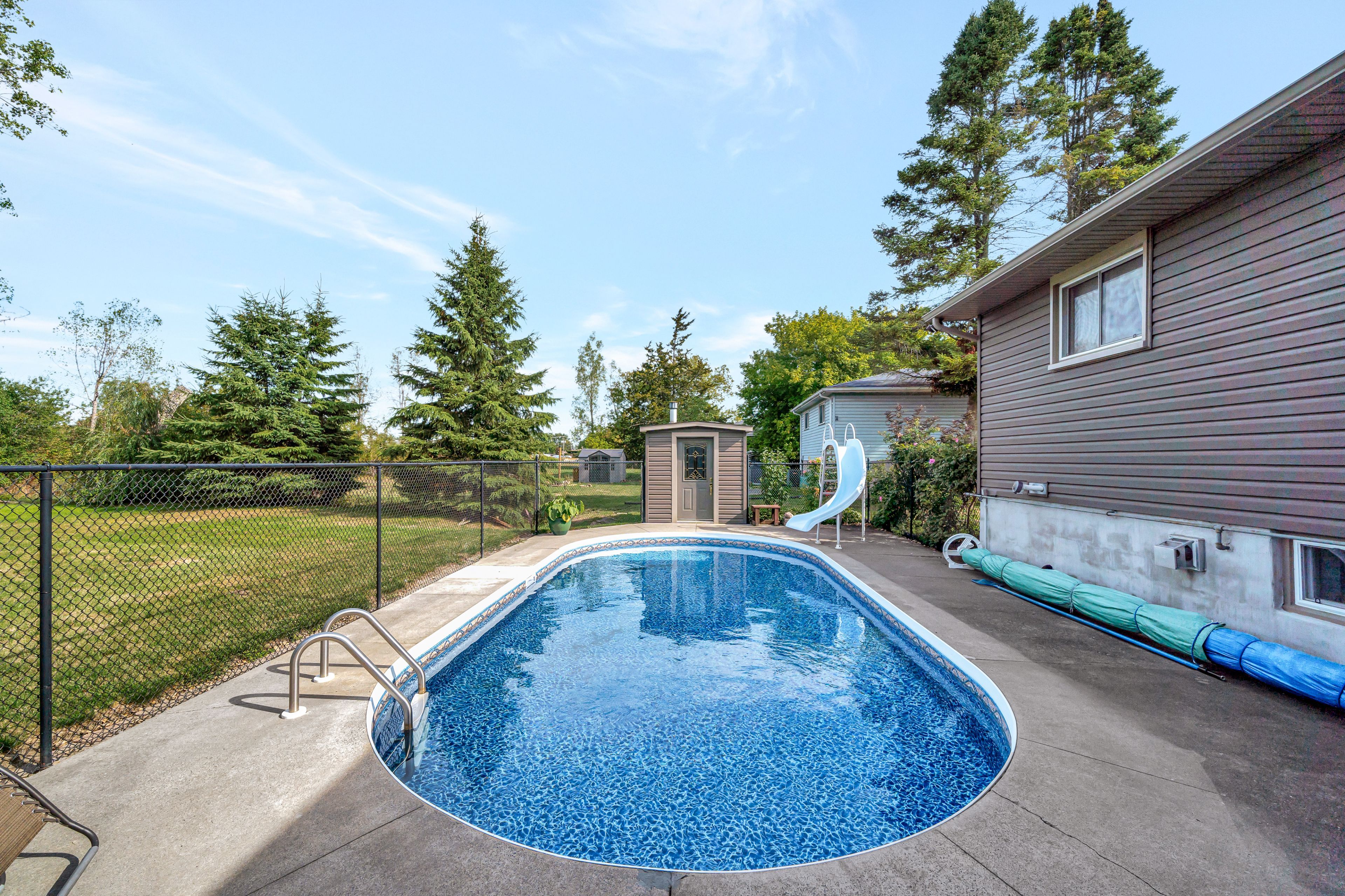 Stunning 4 bed 2 bath raised bungalow with an attached garage, inground pool on a 0. 45 acre lot with water view of the trent river. Located in the charming community of frankford, this turn-key home offers a private backyard oasis designed for entertaining. Step inside to a bright and spacious main floor featuring a large living room that flows seamlessly into the formal dining area. The contemporary l-shaped kitchen, completely renovated in 2019, provides an excellent workspace for the home chef. From the dining room, transition through garden doors to a serene sunroom, perfect for morning coffee while taking in the views. This level is rounded out by three generous bedrooms, including a primary suite with convenient "cheater" access to the updated 4-piece family bathroom with heated floors. The fully finished lower level expands your living space, anchored by an expansive recreation room featuring a cozy gas fireplace that makes it the ultimate spot for family movie nights. You will also find a large fourth bedroom ideal for guests or a home office, a modern 3-piece bathroom, and a dedicated laundry room with ample storage space. Outside, the exterior of this property is truly a showstopper. The oversized footprint provides plenty of green space for children and pets, while the dedicated pool house creates a resort-like atmosphere for summer gatherings. With updated windows and doors throughout for improved efficiency, this home perfectly captures the essence of comfortable, modern living in a prime location. Extra bonus - a 14 kw generac with a 200 amp service entrance transfer switch was installed at the end of june 2023 and has a 5 year warranty.