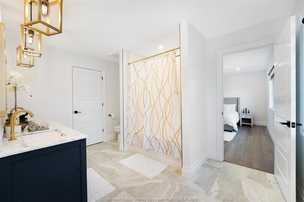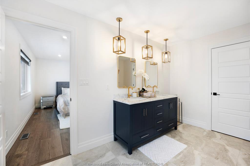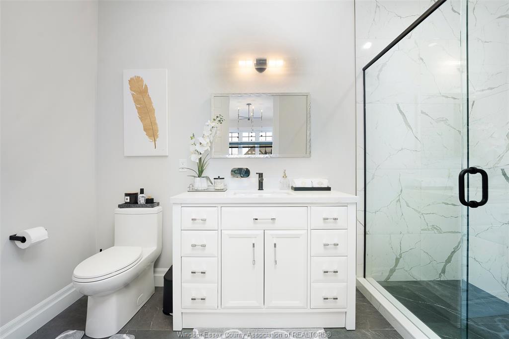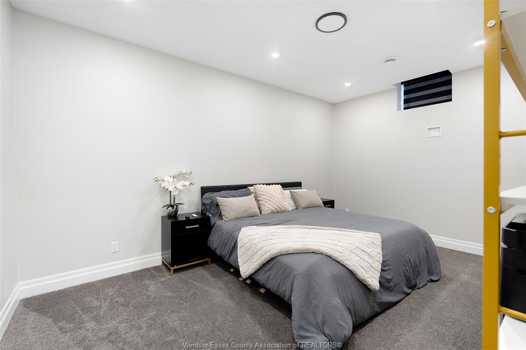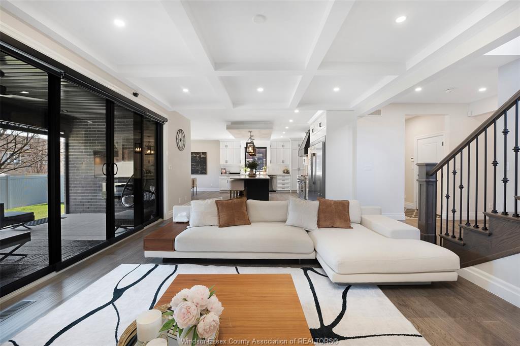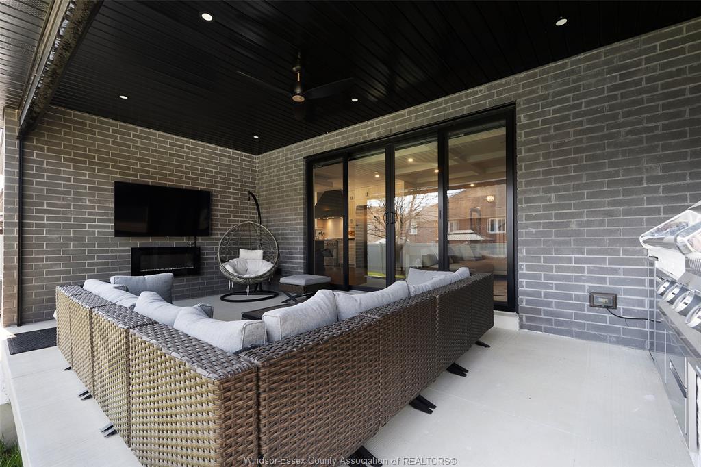 Welcome to this stunning two-storey brick and stone residence, boasting 4 +1 bedrooms and 6 bathrooms (w/ 3 ensuite), ideally located in the prestigious russell woods community built by caster custom homes (2022). Offering approximately 3,400 sq ft above grade, plus a fully finished lower level with a separate grade-level entrance through the attached double garage, this home is perfectly designed for luxury living and multi-generational flexibility. The main floor showcases an elegant open-concept layout, highlighted by a sophisticated living room featuring custom coffered ceilings and a striking tiled fireplace. The gourmet chef’s kitchen is truly the heart of the home, complete with a large centre island with eat-in seating, wine fridge, premium appliances including 48" range with 6 burners + griddle and double ovens, separate dining area, and a walk-in pantry. A highly desirable main floor bedroom includes a private 3-piece ensuite with a custom glass shower— ideal for guests or extended family. Easily converted to a home office for professionals preferring to work from home. Upstairs, the luxurious primary suite offers a refined retreat, featuring custom lighting, a tray ceiling, and an expansive walk-in closet with built-in cabinetry. The spa-inspired 5-piece ensuite includes a soaker tub, glass shower, and private water closet. Two additional generously sized bedrooms are connected by a beautifully designed jack and jill 5-piece ensuite. 2nd floor laundry centre for your convenience. The fully finished lower level provides exceptional additional living space with a separate entrance, spacious living area, bedroom, wet bar, a 3-piece bathroom, and an additional 2-piece bath—perfect for an in-law suite or income potential. Step outside to enjoy the covered rear porch with a outdoor kitchen, seating area, and fireplace. Motorized screens for privacy - ideal for effortless outdoor entertaining.