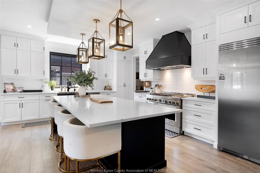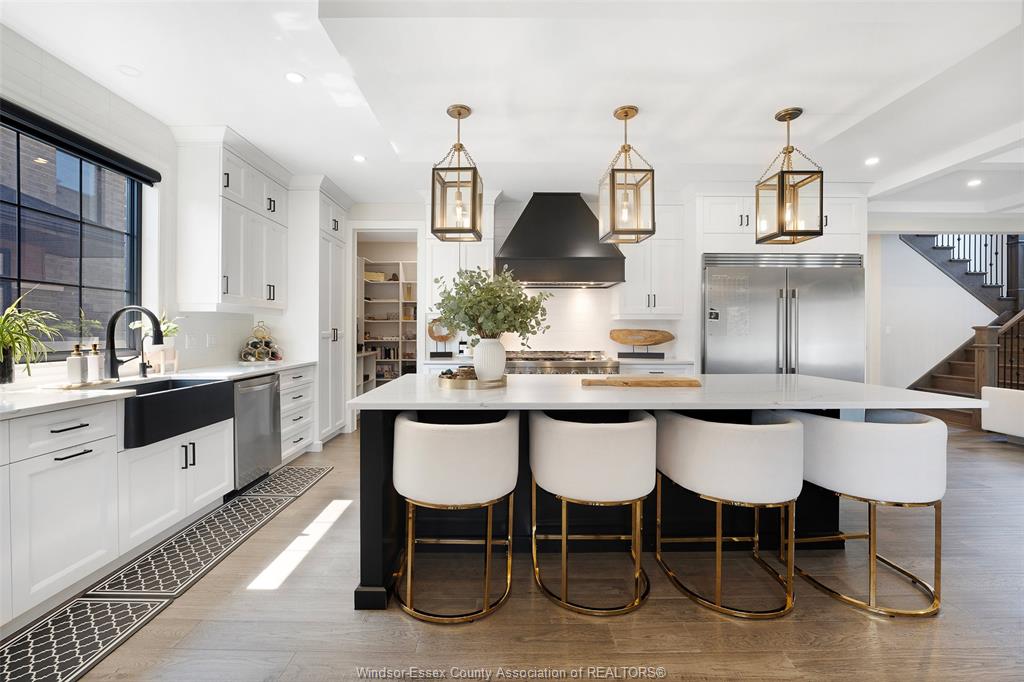 • Gourmet chef’s kitchen with premium appliances and a walk-in pantry.