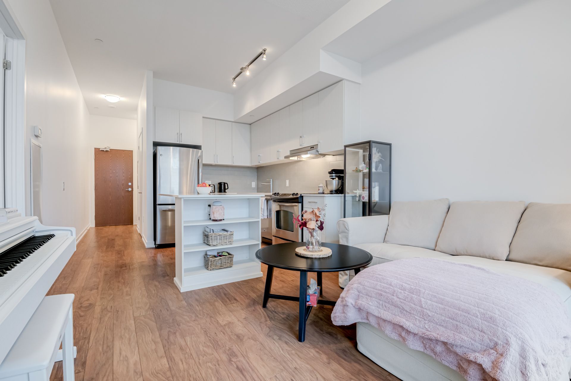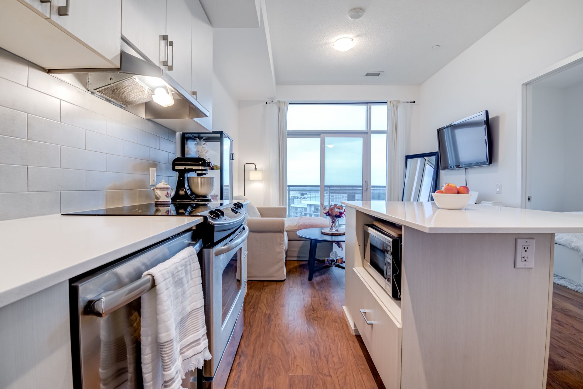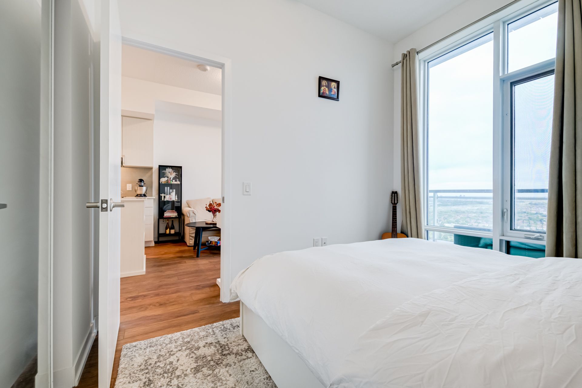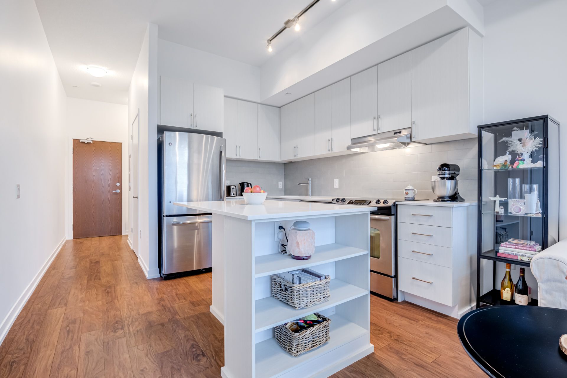 Rare daniels erin mills penthouse unit! 1 bed, 1 bath with high ceilings and large balcony with unobstructed south-west views of the lake. Featuring an concept layout, premium laminate flooring throughout, large floor to ceiling windows. The bright kitchen boasts quality stainless steel appliances, breakfast island with quartz countertops and subway tile backsplash. Wall-to-wall closetin the bright bedroom.