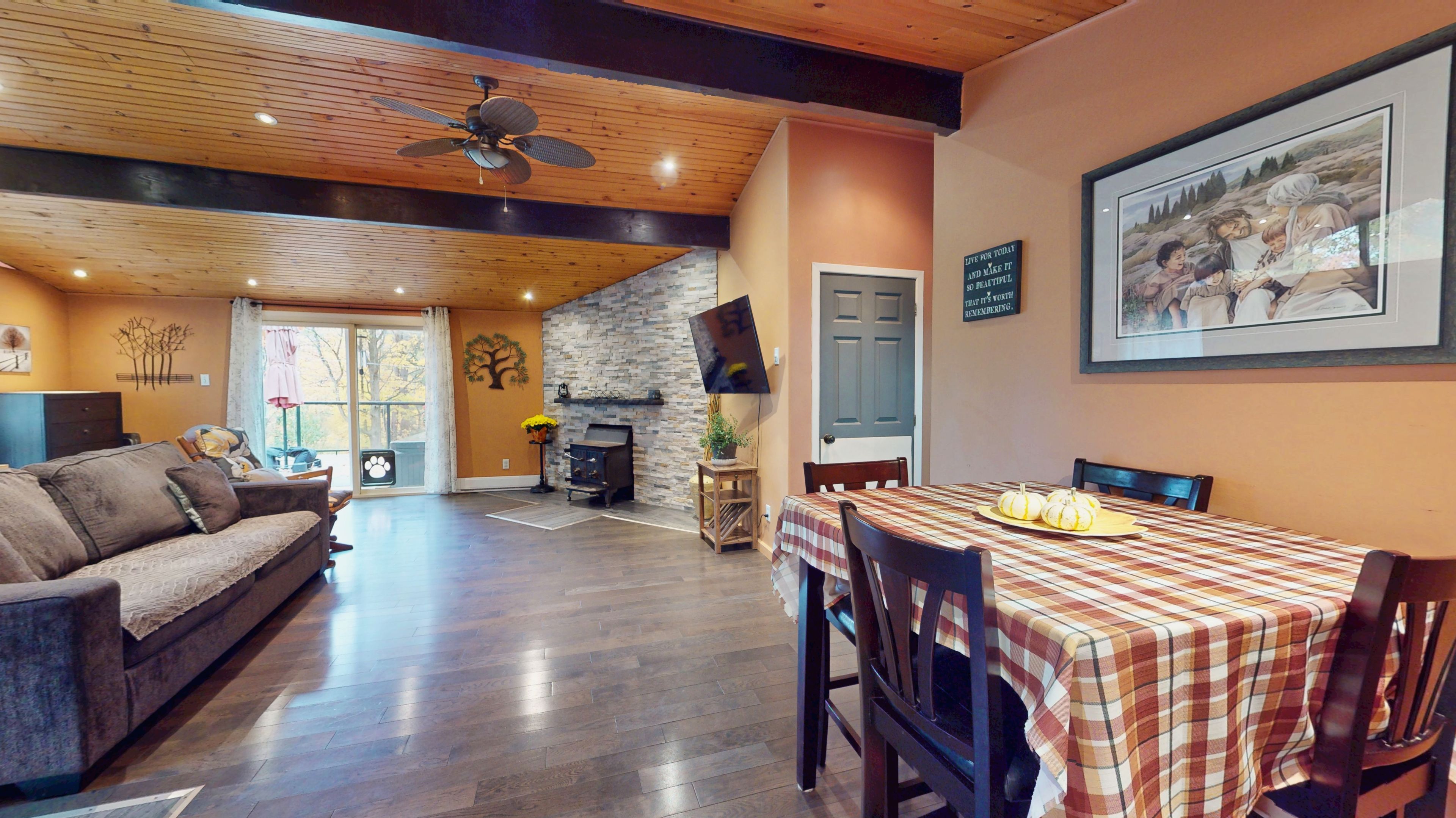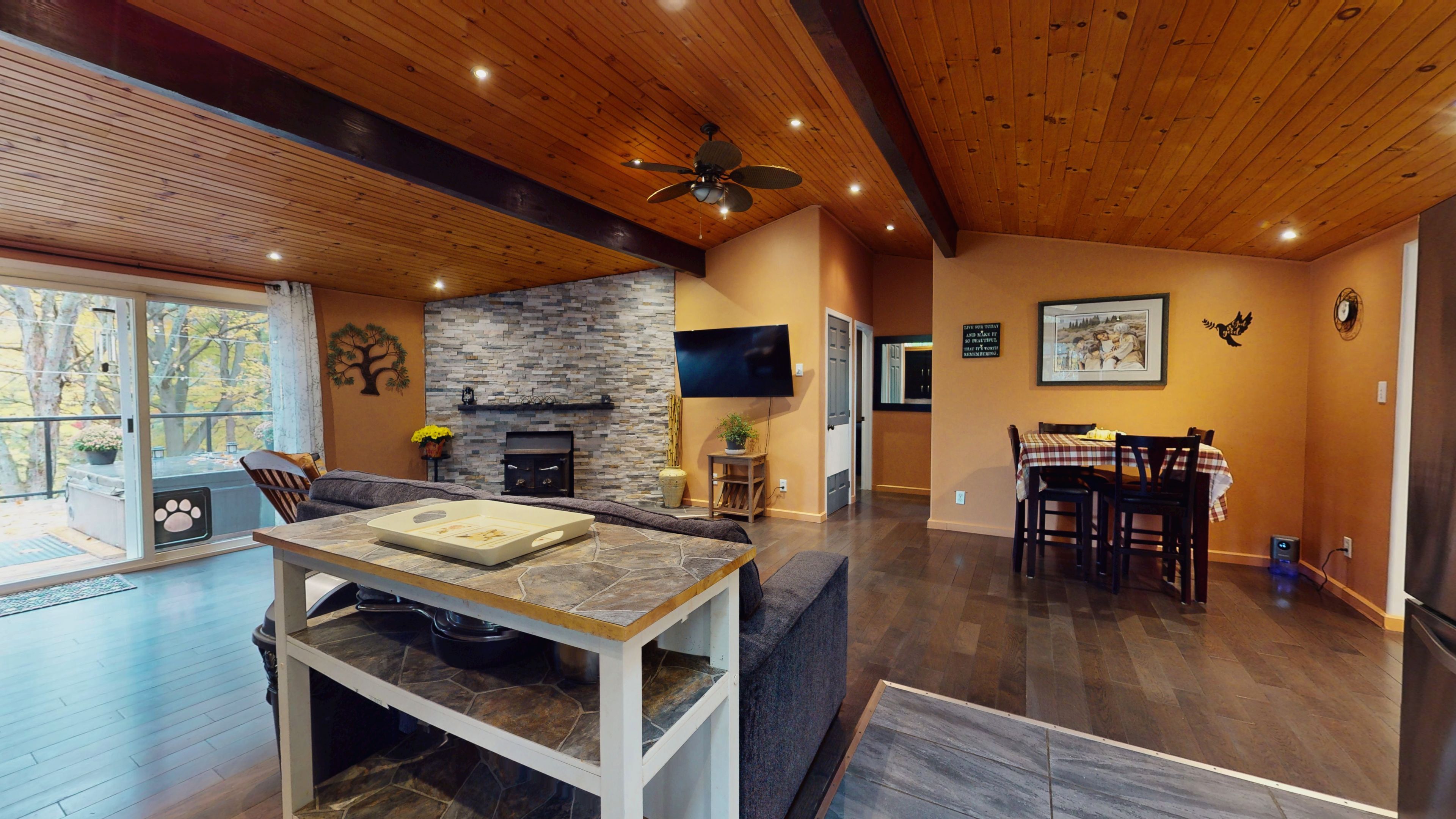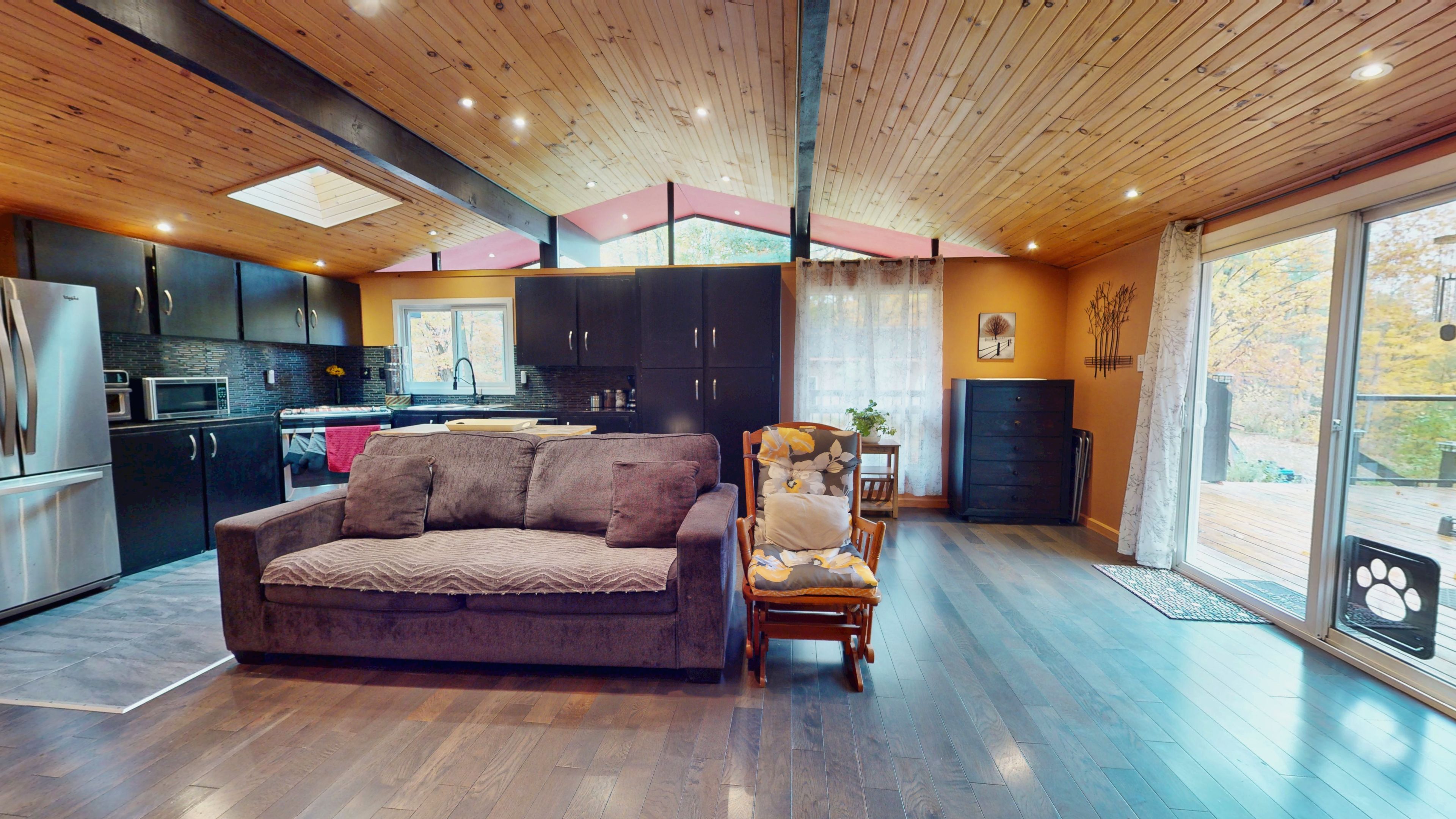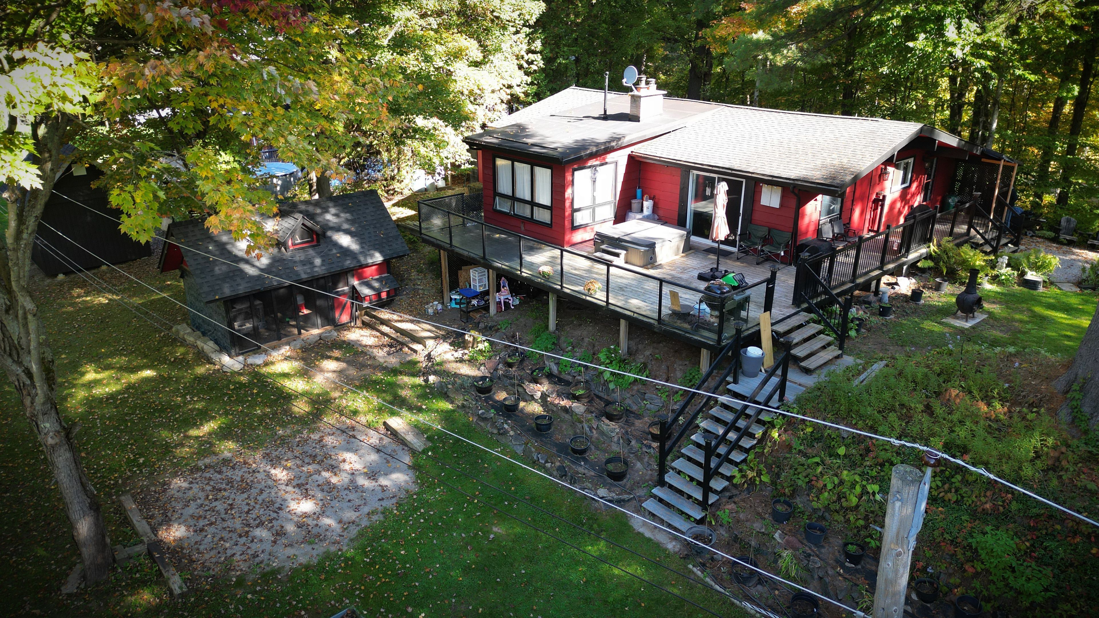 Reasons you will love this home1. Prime waterfront lifestyle: capture the essence of summer with a captivating view of the trent-severn waterway and lock 42 perfect for watching the boats go by. The lot backs onto protected parks canada waterfront. For a low annual fee ($53. 50) enjoy use of this property including a private dock the owner has at the shoreline. Walking distance to lock 42 restaurant and village of washago. 2. Viceroy bungalow: perfection enjoy the bright, airy feel of a viceroy bungalow featuring a dramatic cathedral ceiling, oak hardwood flooring and an open-concept main floor. The main level is designed for convenience with a large entrance and main floor laundry. The walkout leads to an expansive wrap-around deck, seamlessly blending indoor and outdoor living. 3. Versatile living spacethis home offers smart, flexible living with 1+2 bedrooms and 3 full bathrooms. The fully finished walkout basement expands your living options, providing two bedrooms, a full bathroom, and a spacious recreational room ideal for guests, family, or entertainment. 4. Unmatched privacy & parking: the backyard is a private, landscaped oasis. It's easily accessed vehicle if needed via a private neighbour road for. Plus, you'll never worry about storage or parking again with a 36 ft long x 20 ft. Wide and 16 ft. Tall detached garage , a second 12 ft. X 20 ft. Garage, a 10 ft. X 20 ft. Chicken coop and a 9 x 10 ft. Shed plus a 10 ft. X 20 ft. Outdoor dog pen
