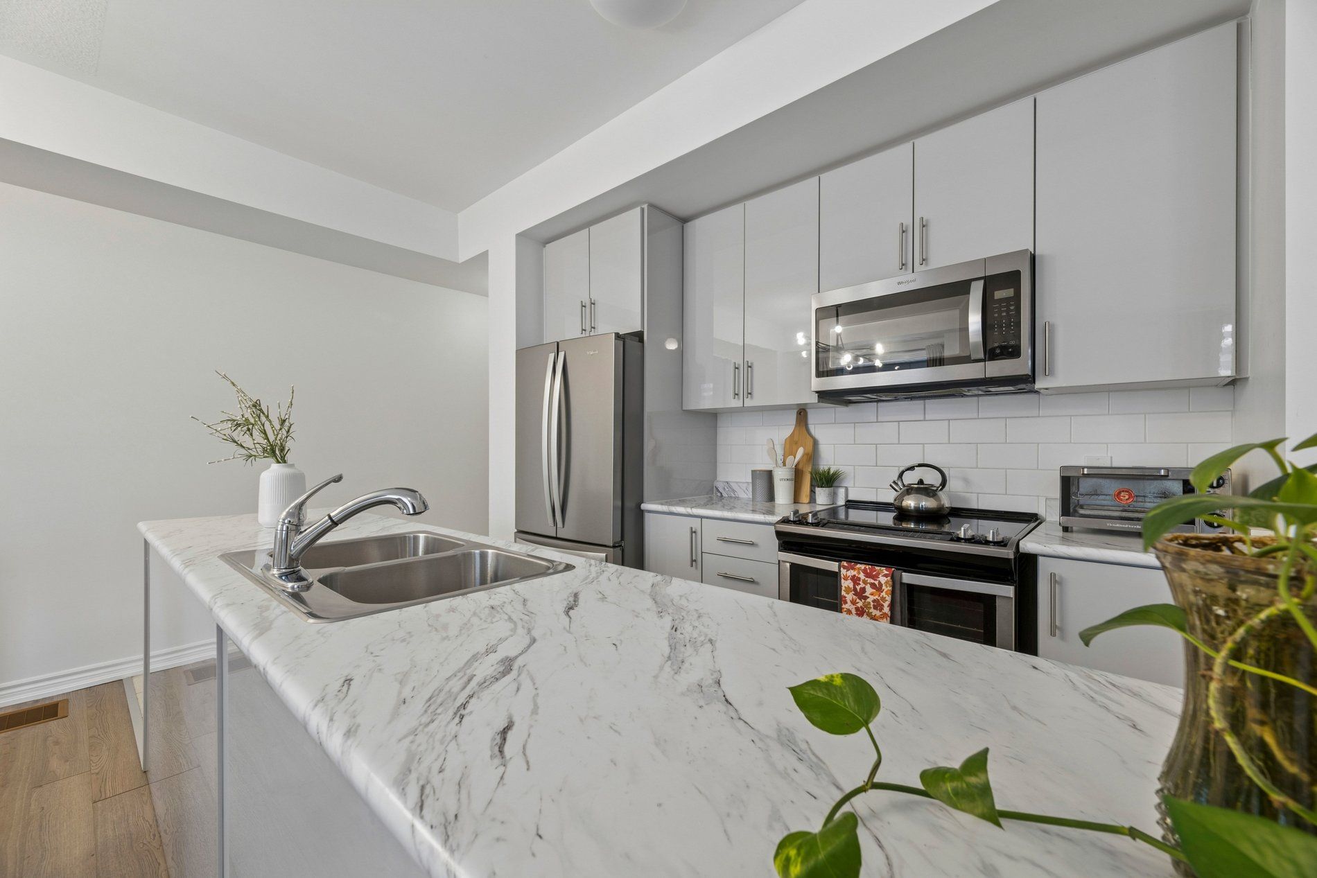 • Upgraded kitchen with stainless steel appliances and a walk-out balcony.