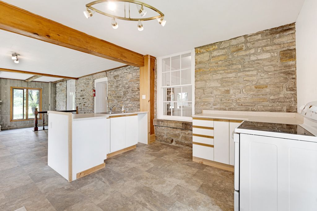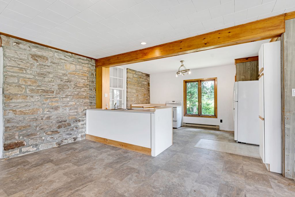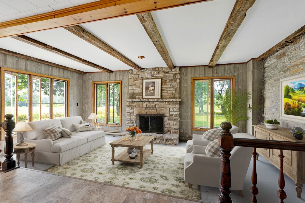 Tucked along a quiet bend of the tay river just ten minutes from perth, this 73-acre estate is the kind of property that almost never comes up. An 1870s stone home, an 1820s log guest house, over 1,200 feet of natural swimmable shoreline, and total privacy at the end of a long private drive with no neighbours in sight. The stone home stands with quiet dignity, its original pine floors and historic millwork carrying the story of generations. Behind that character sits the practical stuff that matters: a brand-new septic system installed this year, propane furnace, updated wiring and plumbing, newer windows on the upper level, and added insulation. Generously sized rooms, a large wood-burning fireplace, and a clean, dry basement give the main house real bones. With 5 bedrooms and 1. 5 baths, there's space for the whole family, even if you convert one of those bedrooms into a luxurious spa bathroom. The kitchen and dining room and the unfinished primary bedroom are blank canvases waiting for your vision. Outside is where this home really opens up. Forest and field roll out in every direction, dotted with apple trees and wild berry bushes. Launch a canoe from your own shoreline and paddle 2. 5 km into christie lake. A boathouse sits right at the water ready for restoration. An 1825 barn with massive hand-hewn beams waits to be reborn, and the rustic log cabin with a screened porch and charmingly wonky floors makes a perfect guest house, summer retreat, or short-term rental opportunity. Just over an hour from ottawa with easy access to highway 7. Vibrant in summer, hushed under winter snow. A private world where time slows and history breathes in every stone, beam, and ripple of the river. Book your private tour today.