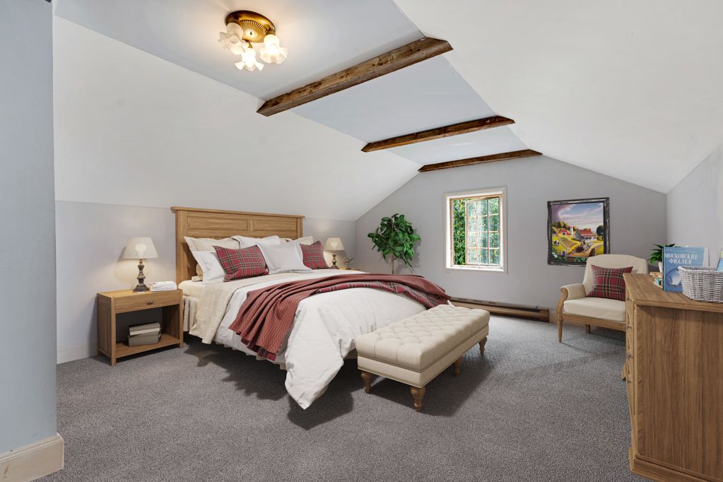 • Generously sized rooms with a cozy wood-burning fireplace.