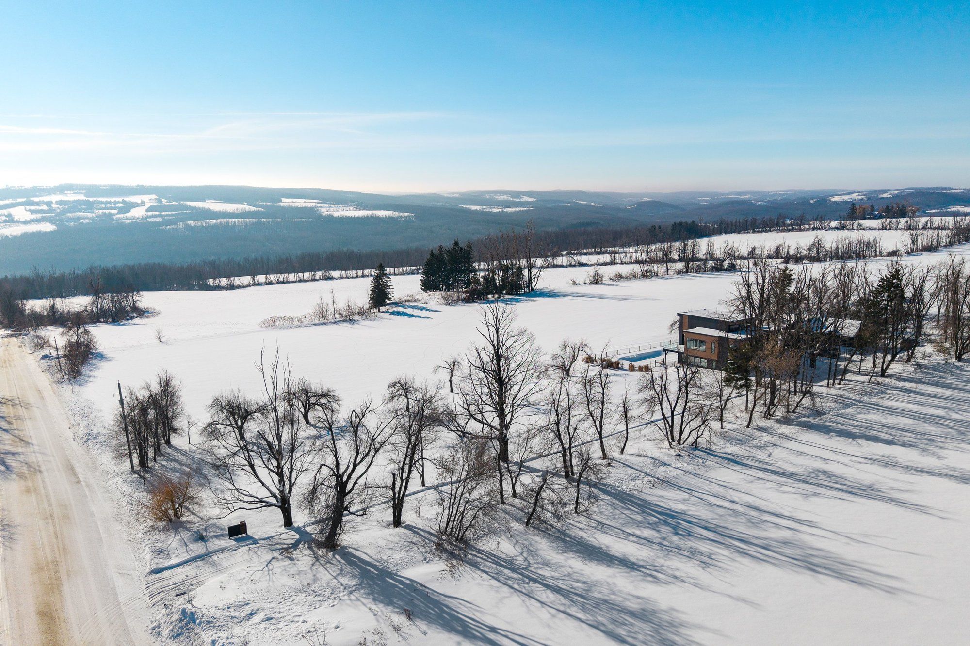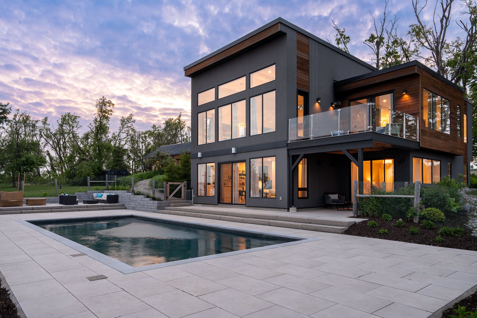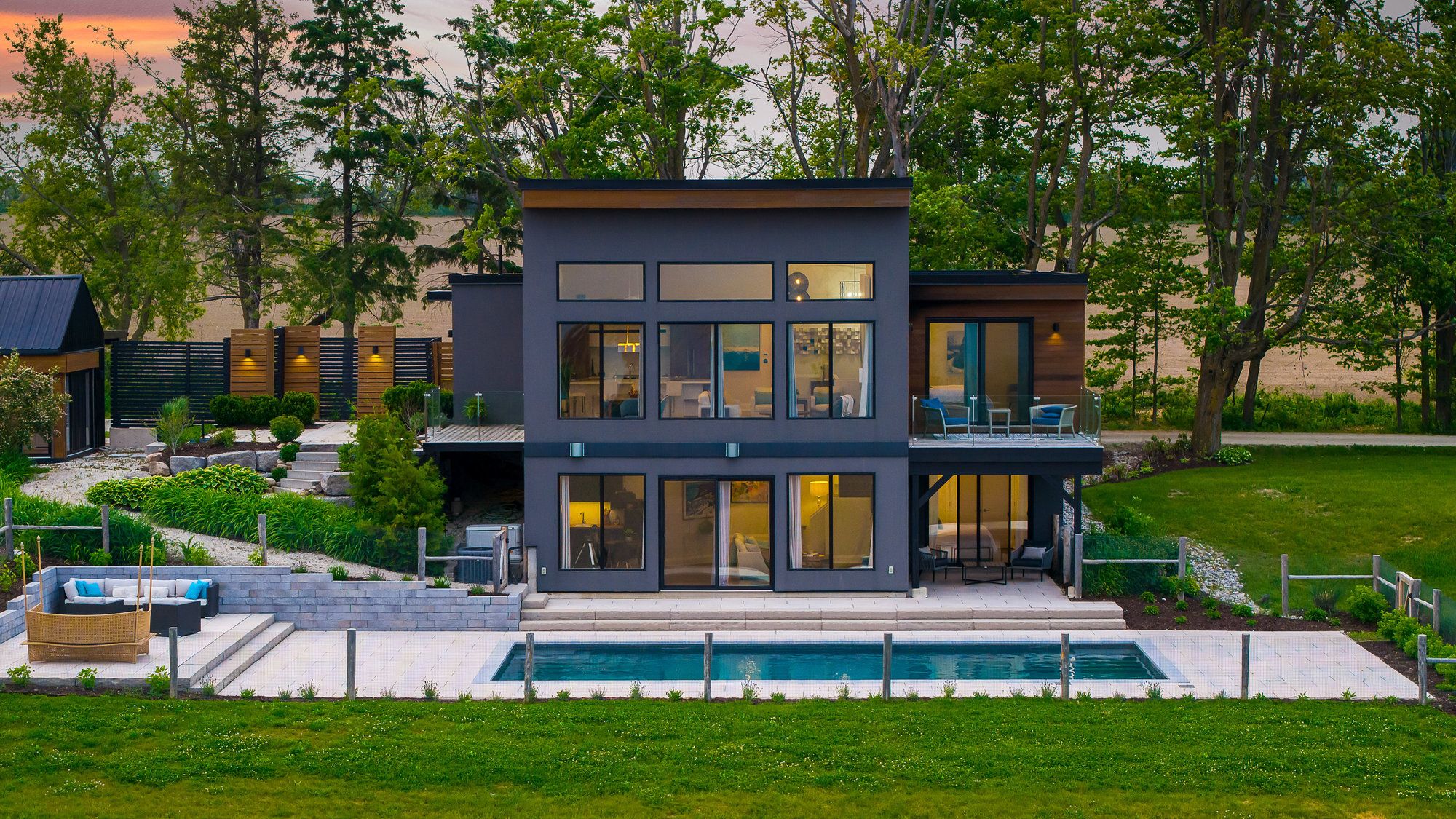 "viewfield" an exceptional three-bedroom home, where you can experience the most stunning sunrise and sunset views. Set on 1. 3 professionally landscaped acres outside the vibrant village of creemore. Tucked at the end of a maple-lined driveway, the home exudes the peaceful elegance of a european retreat. Inside, the bright and airy layout is designed to impress. Oversized windows frame panoramic views of rolling hills and farmland, while the open-concept main floor blends everyday comfort with sophisticated style. The custom walnut kitchen features granite counters, wall oven and cooktop, and a large island with floating shelves perfect for cooking or gathering. In the great room, soaring 16-ft ceilings and a sleek napoleon fireplace create a dramatic focal point, while the dining areas minimalist chandelier keeps the views front and center. Radiant in floor heating throughout the house is perfect for the cooler fall and winter days. The main-floor primary suite is a tranquil retreat, with a private dressing room, spa-like ensuite, and floor-to-ceiling windows offering abundant natural light. Downstairs, the walkout lower level is perfect for guests or extended stays, with a large family room, wet bar, 3 piece washroom, pantry, and additional storage. Working from home you can find your own space in the lovely office with built in shelving and desk. The 2 guest bedrooms are spacious with one of them having private access to a walk out with views as far as the eye can see. Step outside to a private backyard oasis with a new heated in-ground saltwater pool (2023), surrounded by limestone and concrete patios, mature trees, and a privacy fence. A bonus studio/yoga room with sliding glass doors overlooking the hills of creemore. With cedar, eramosa stone, and stucco finishes, the home blends seamlessly into its natural setting. Offering over 3,000 sq ft of finished space plus a large garage. Hundreds of thousands spent since owners have purchased. 5 minutes to creemore.