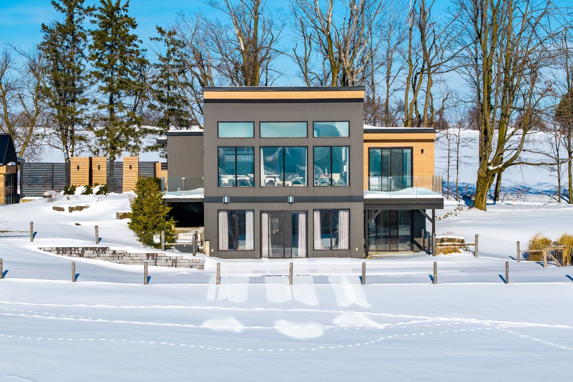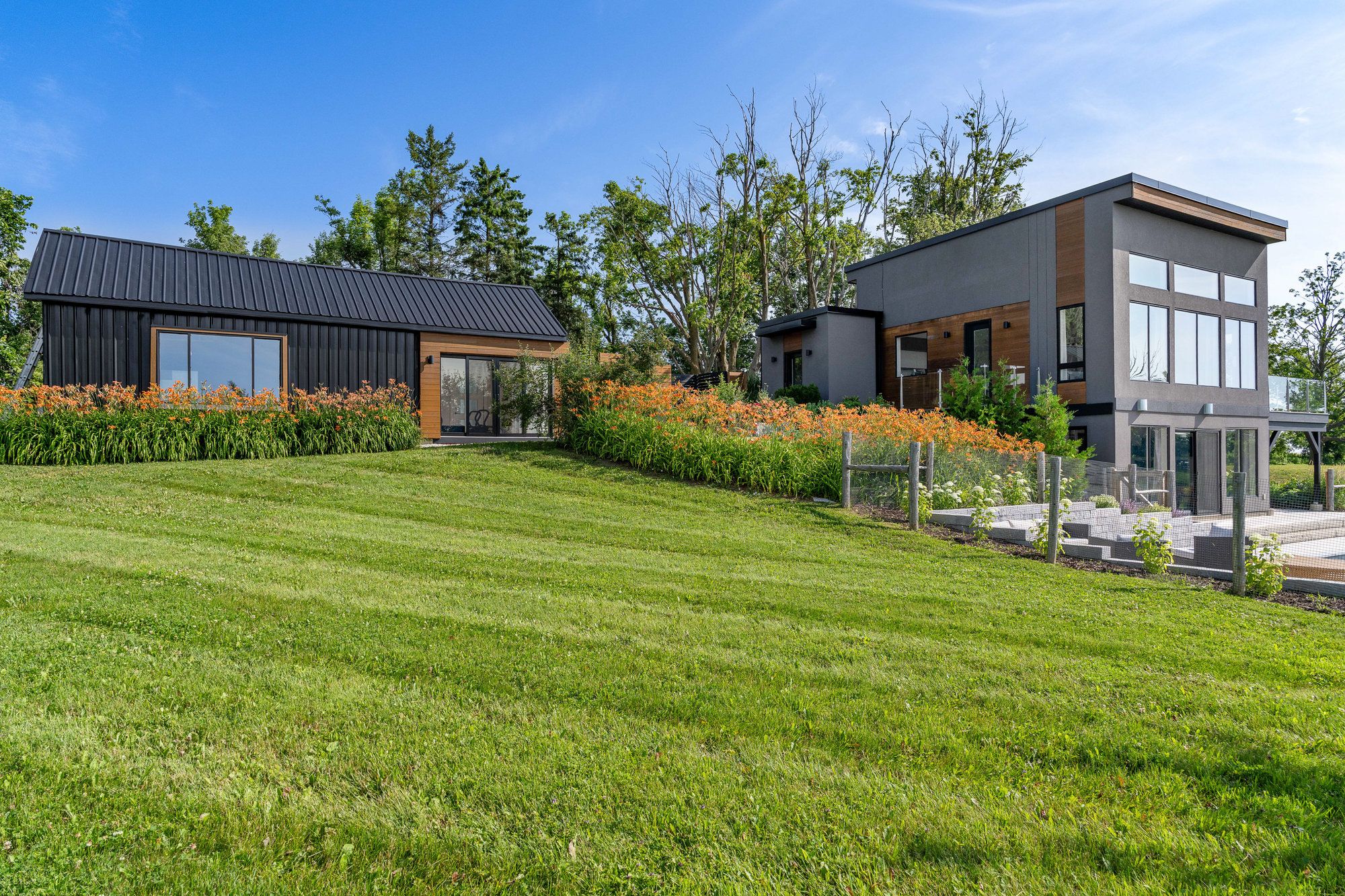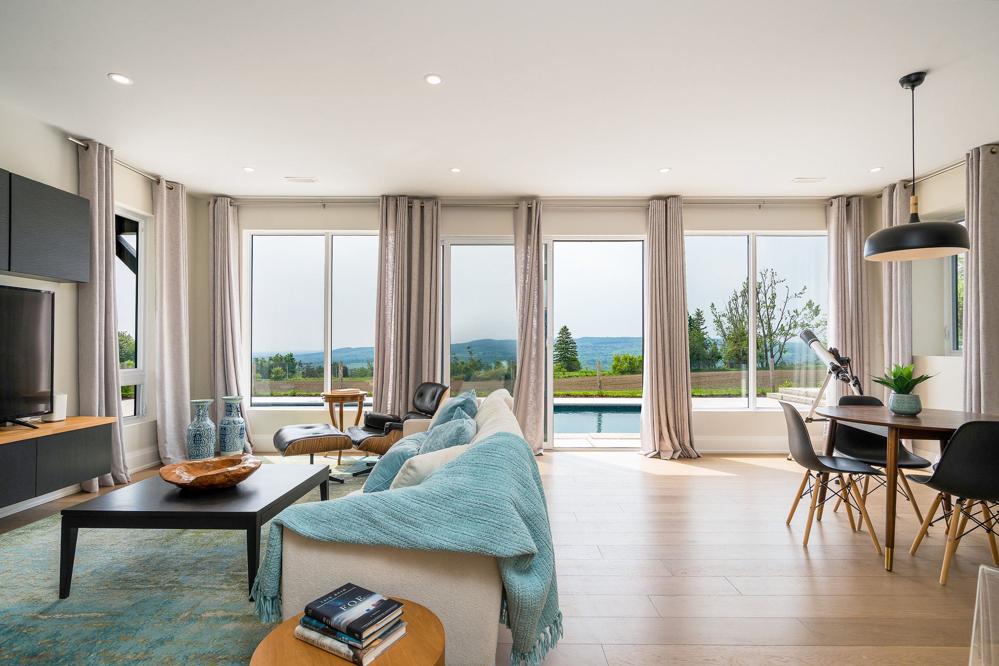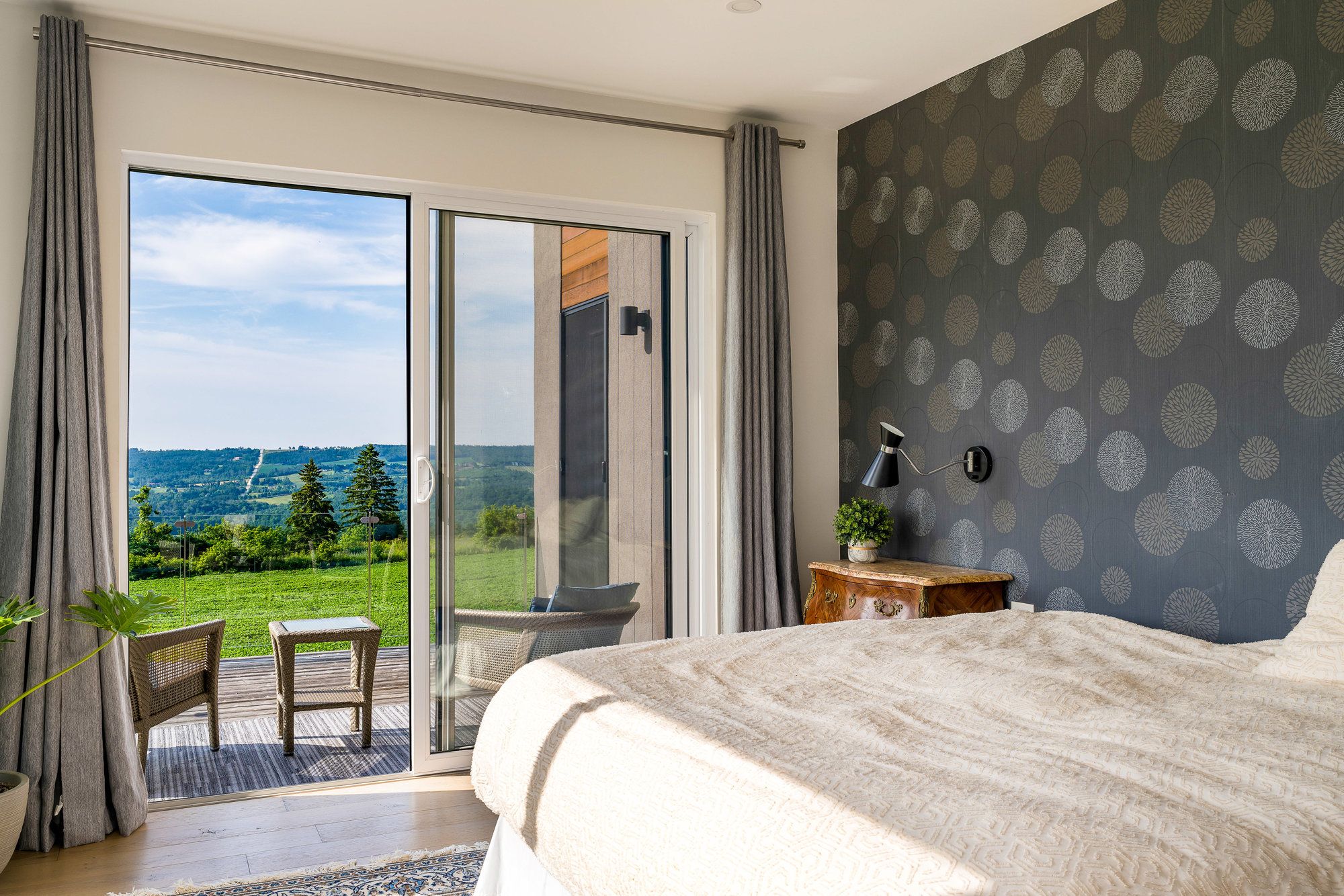 "viewfield" an exceptional three-bedroom home, where you can experience the most stunning sunrise and sunset views. Set on 1. 3 professionally landscaped acres outside the vibrant village of creemore. Tucked at the end of a maple-lined driveway, the home exudes the peaceful elegance of a european retreat. Inside, the bright and airy layout is designed to impress. Oversized windows frame panoramic views of rolling hills and farmland, while the open-concept main floor blends everyday comfort with sophisticated style. The custom walnut kitchen features granite counters, wall oven and cooktop, and a large island with floating shelves perfect for cooking or gathering. In the great room, soaring 16-ft ceilings and a sleek napoleon fireplace create a dramatic focal point, while the dining areas minimalist chandelier keeps the views front and center. Radiant in floor heating throughout the house is perfect for the cooler fall and winter days. The main-floor primary suite is a tranquil retreat, with a private dressing room, spa-like ensuite, and floor-to-ceiling windows offering abundant natural light. Downstairs, the walkout lower level is perfect for guests or extended stays, with a large family room, wet bar, 3 piece washroom, pantry, and additional storage. Working from home you can find your own space in the lovely office with built in shelving and desk. The 2 guest bedrooms are spacious with one of them having private access to a walk out with views as far as the eye can see. Step outside to a private backyard oasis with a new heated in-ground saltwater pool (2023), surrounded by limestone and concrete patios, mature trees, and a privacy fence. A bonus studio/yoga room with sliding glass doors overlooking the hills of creemore. With cedar, eramosa stone, and stucco finishes, the home blends seamlessly into its natural setting. Offering over 3,000 sq ft of finished space plus a large garage. Hundreds of thousands spent since owners have purchased. 5 minutes to creemore.