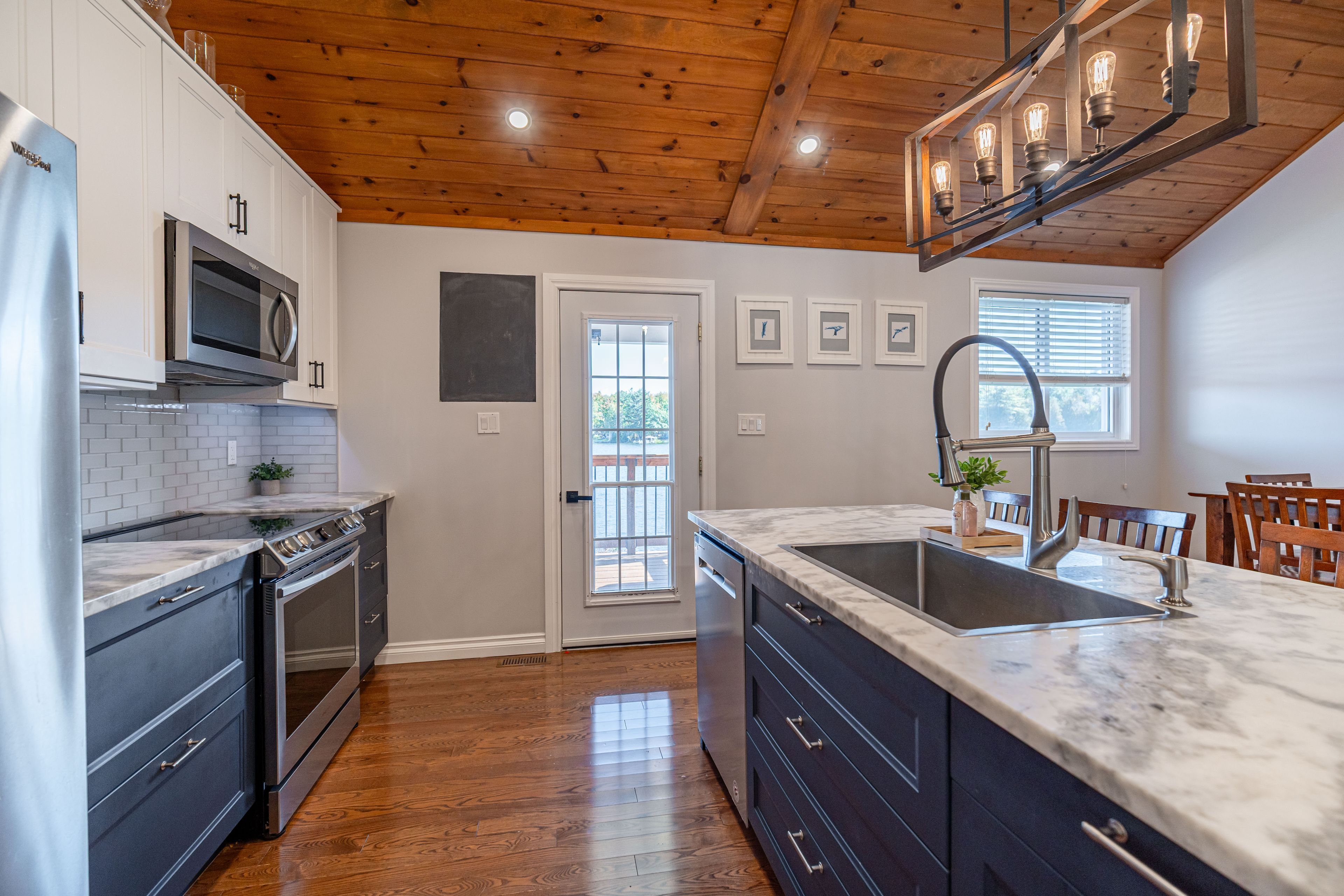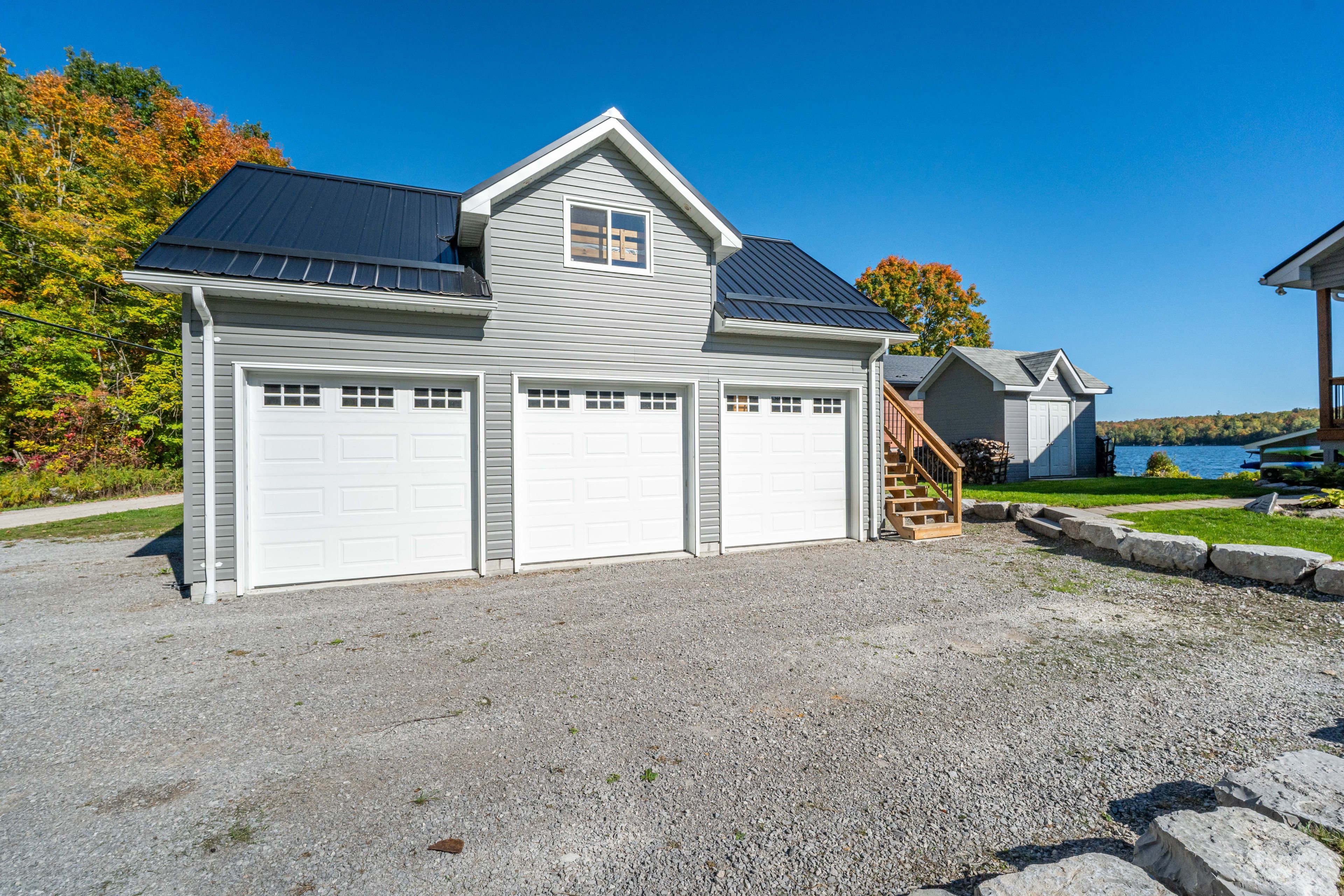 Welcome to this stunning lower buckhorn lake home with a wet slip boat house and three-bay garage. This 3-bedroom, 2-bathroom home completely renovated in 2008 and has been continuously improved since, it combines modern comfort with the serenity of lakeside living. The heart of the home is the 2021 custom kitchen, featuring cathedral ceilings, granite countertops, and updated appliances. Its spacious, open design flows seamlessly onto a large covered balcony overlooking deer bay. The main floor includes a large bedroom with four windows and a cathedral ceiling. Also on the main floor is laundry facilities (2021), and a versatile second bedroom/office. The finished basement provides additional living space with a cozy wood-burning fireplace, the third bedroom, and a walk-out to a private patio with easy water access. This home is truly turnkey, with all major systems and features already taken care of. Renovations as follows: in 2008 a complete home update. In 2021 a new custom kitchen (cabinets, appliances). In 2021 a new furnace & central air. In 2023 a new three-bay garage with insulated loft space (permit closed). In 2024 a septic system (permit closed). In 2024 a metal roof on main house. For those who love the water, this property includes a boat house, docks with a 4 foot depth that goes down to 20 feet - perfect for swimming, boating, and excellent fishing. This property has calm waters, minimal boat traffic, welcoming neighbours, with hiking trails on the other side of the road. This home offers the perfect balance of modern upgrades, spacious living, and a waterfront lifestyle just 20 minutes from downtown peterborough and 1. 5 hours from toronto.