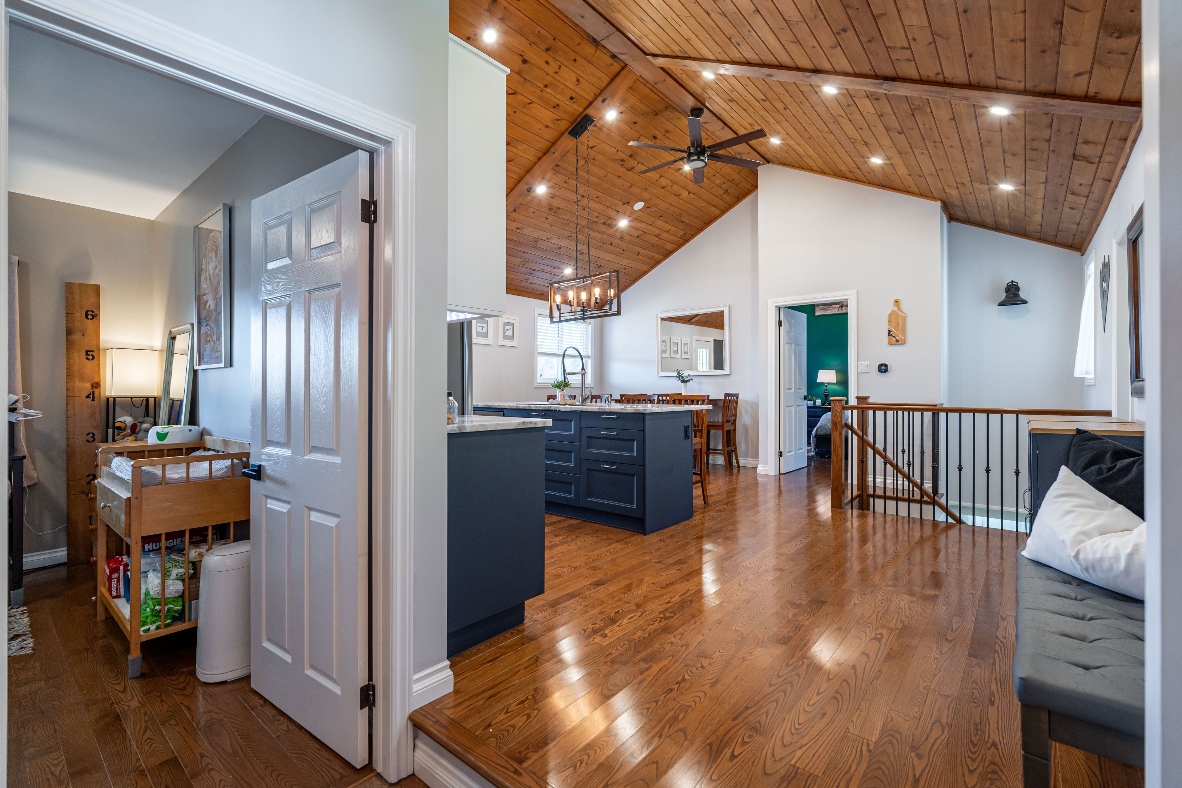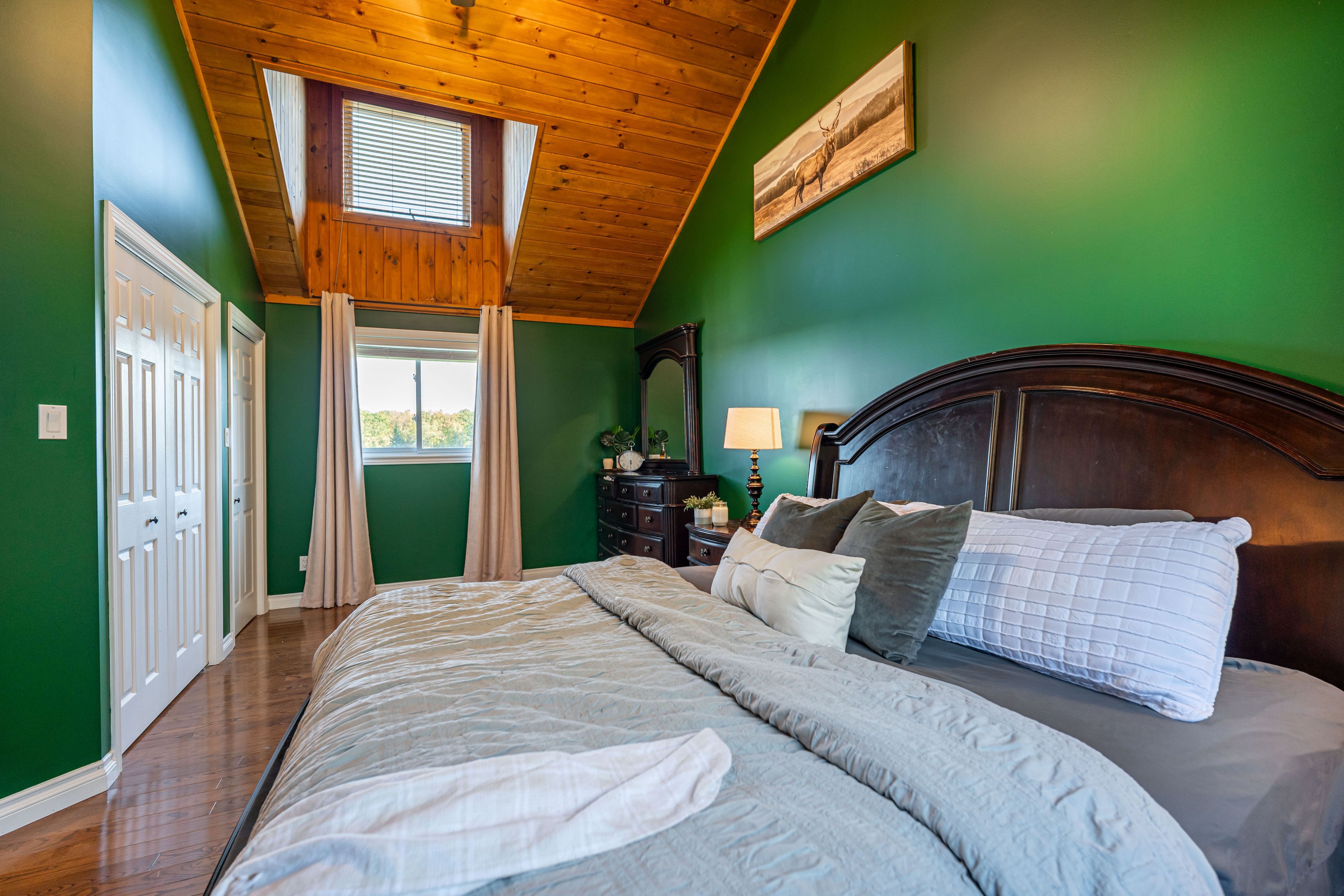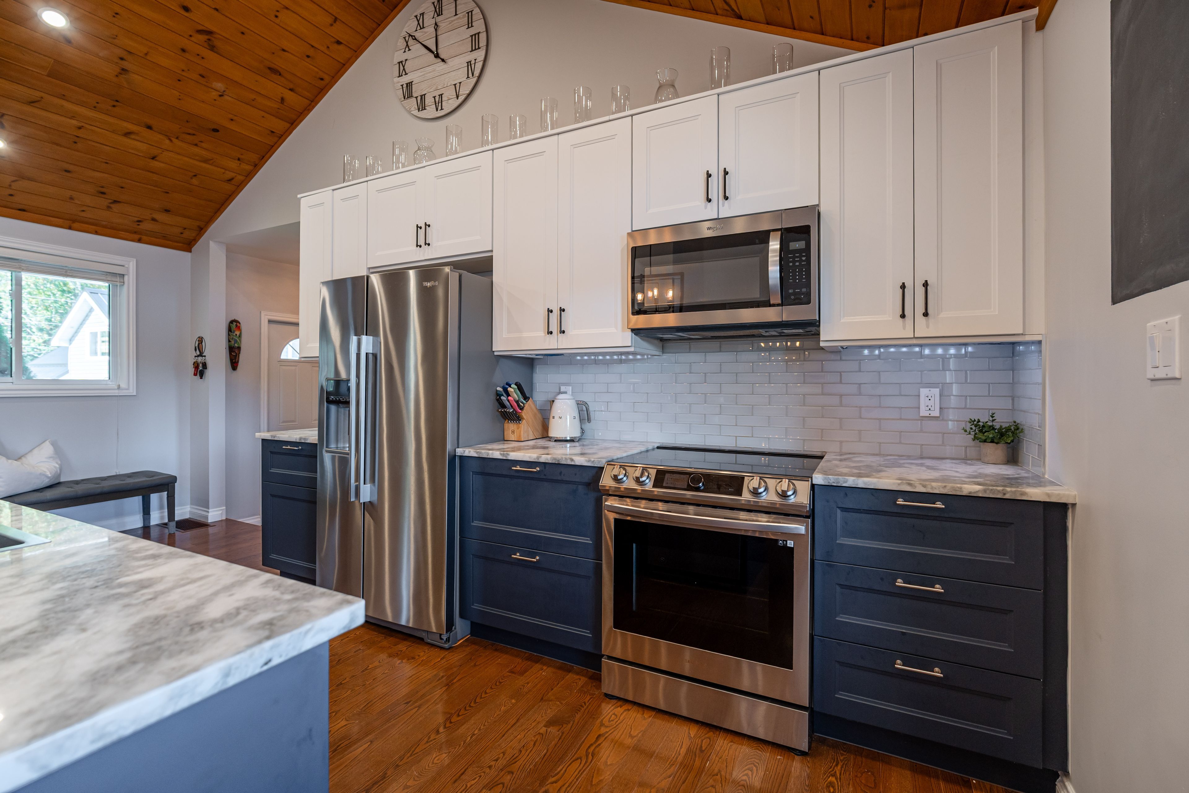 • Custom kitchen with granite countertops and cathedral ceilings, perfect for cooking.