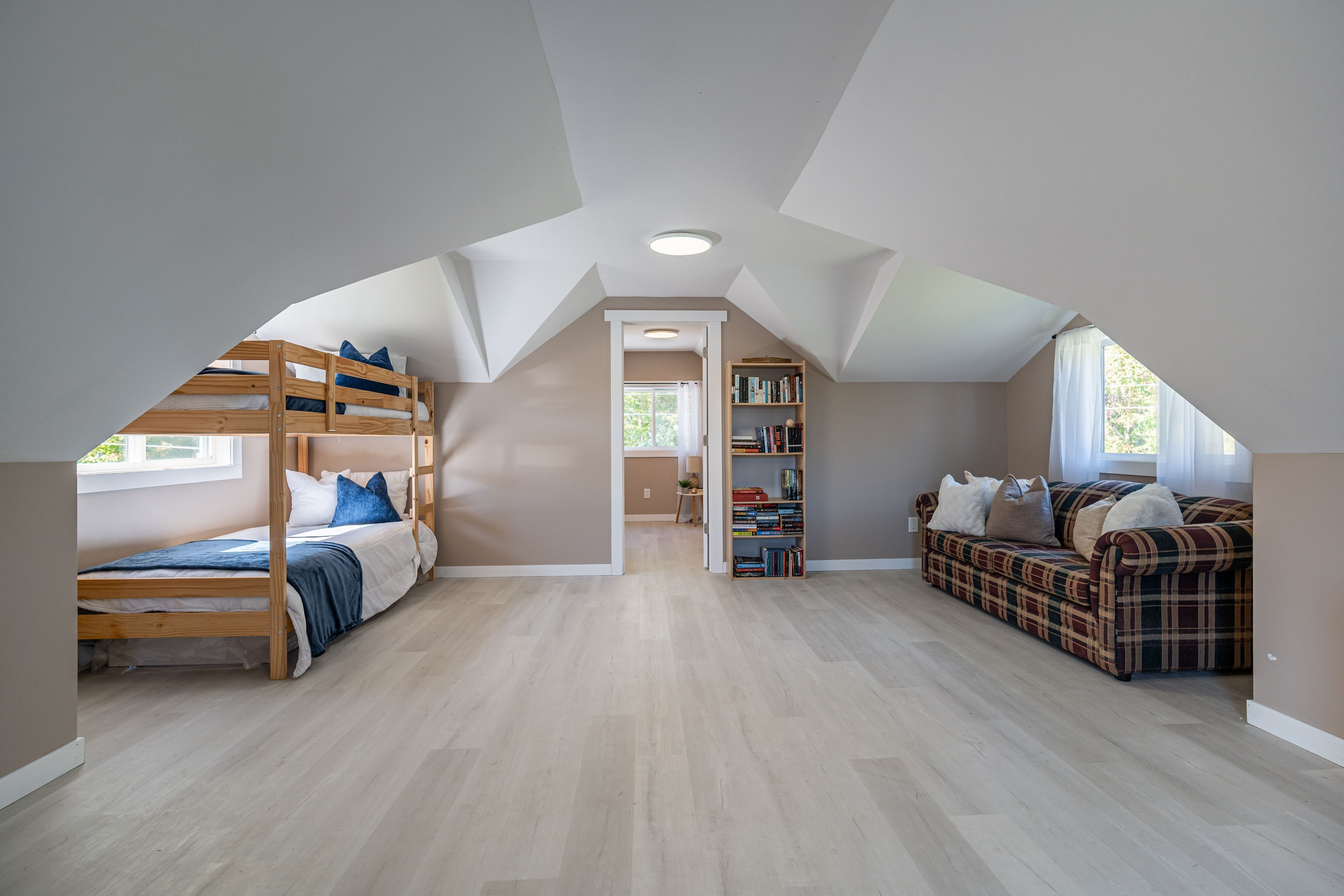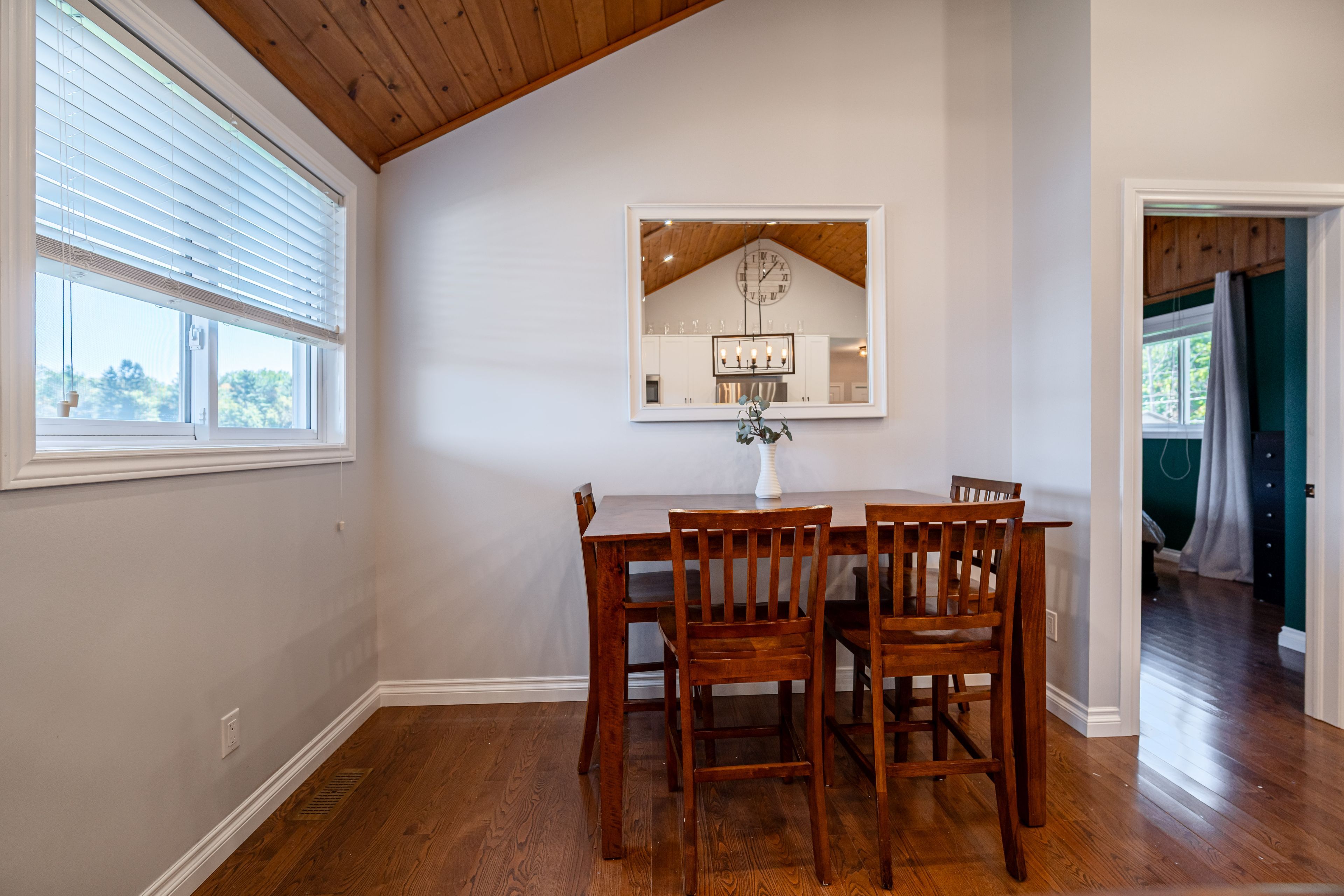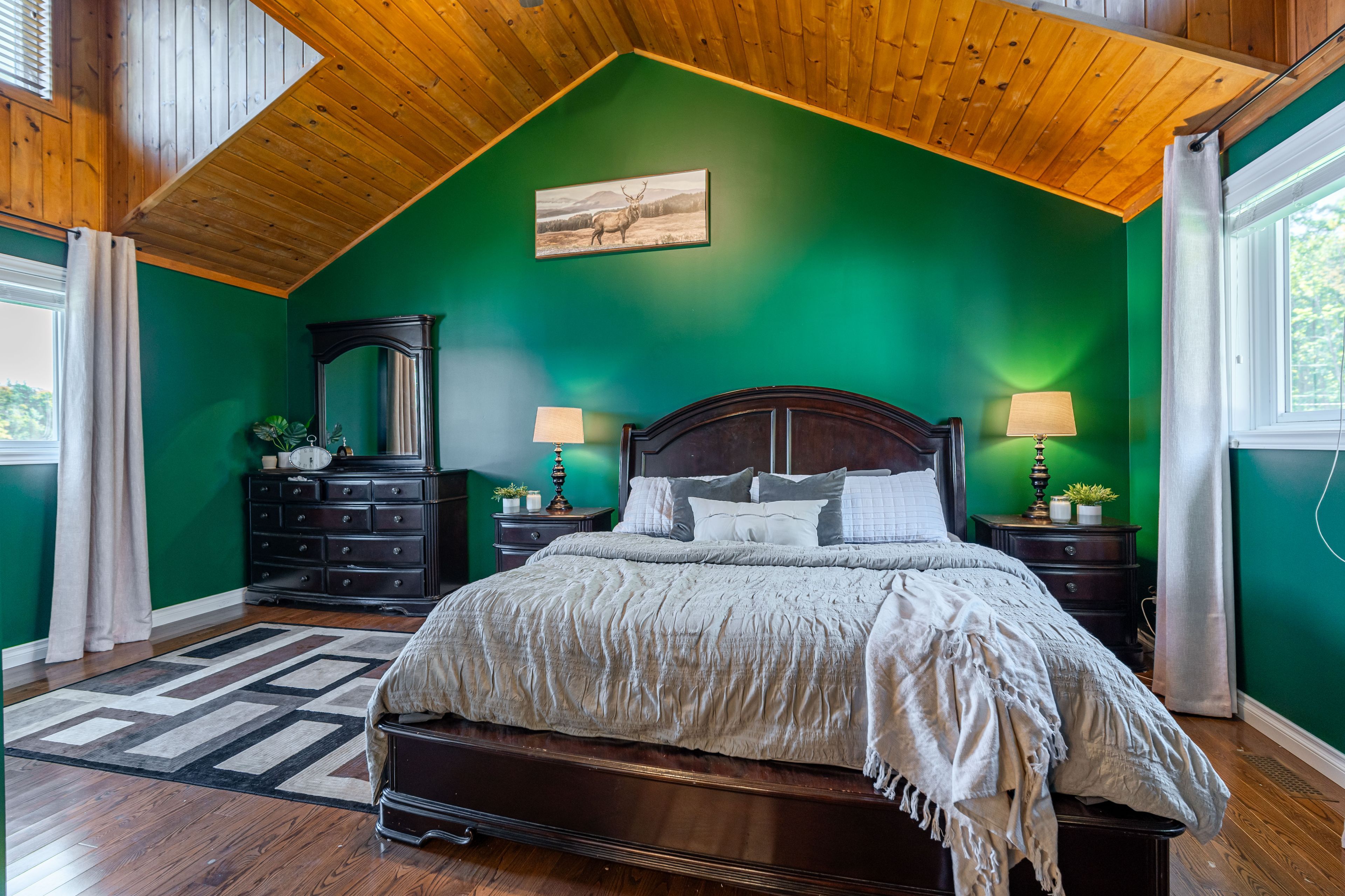 • Custom kitchen with granite countertops and cathedral ceilings, perfect for cooking.