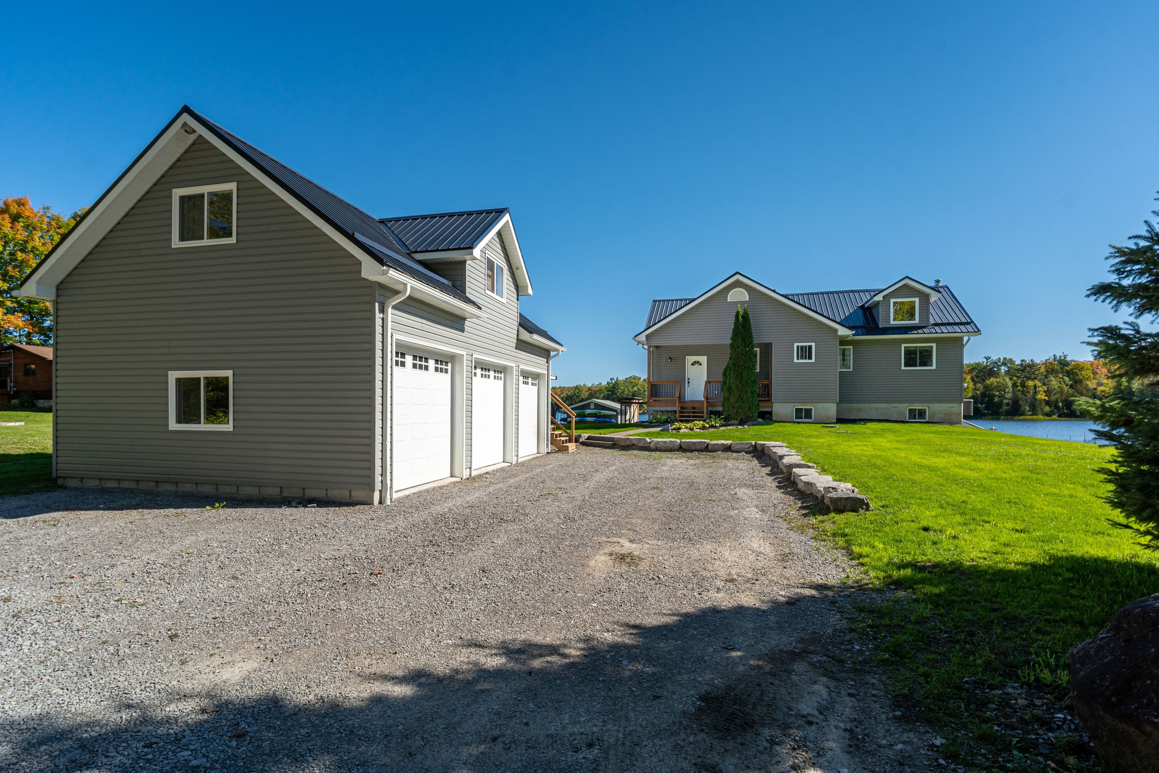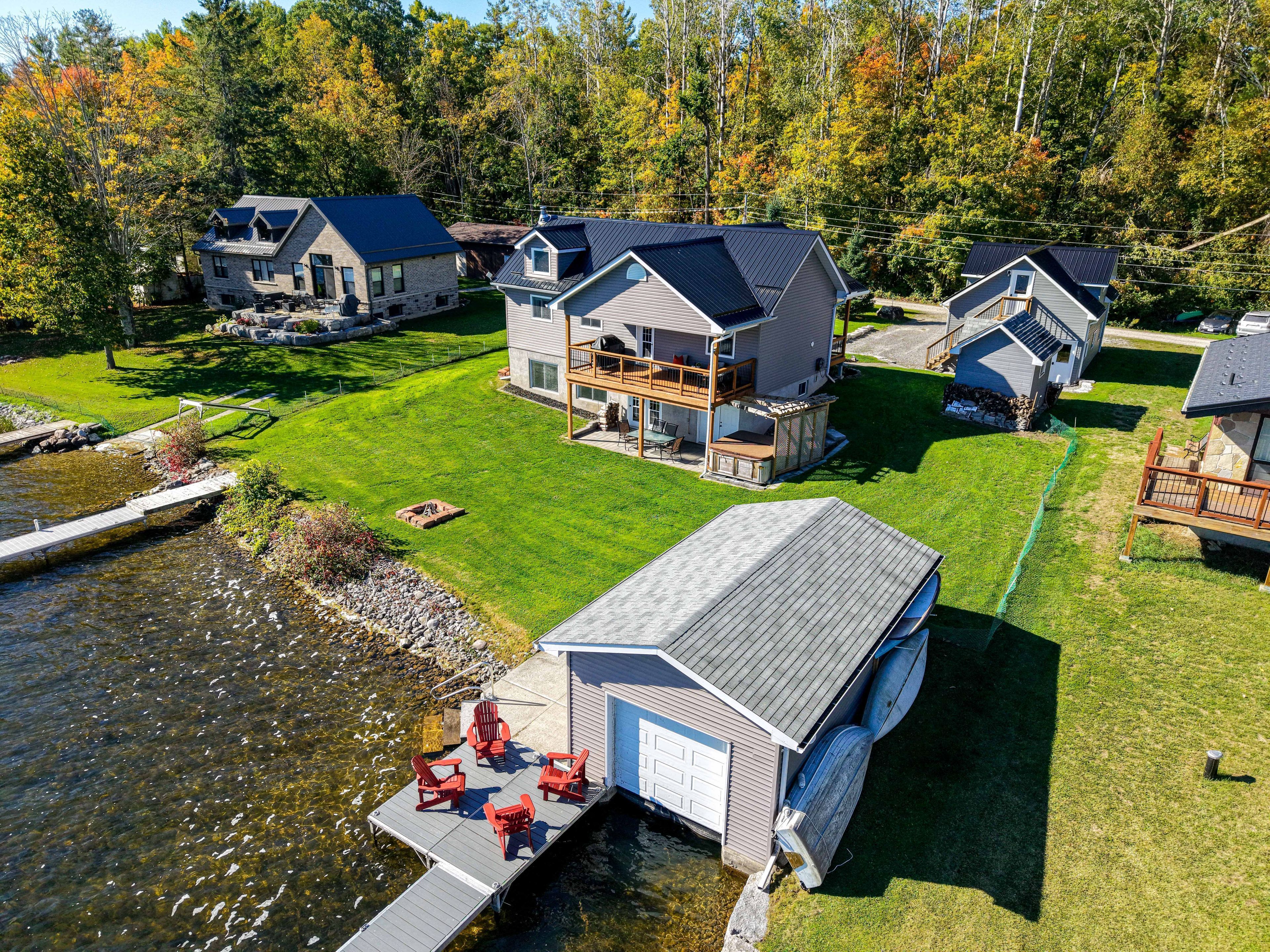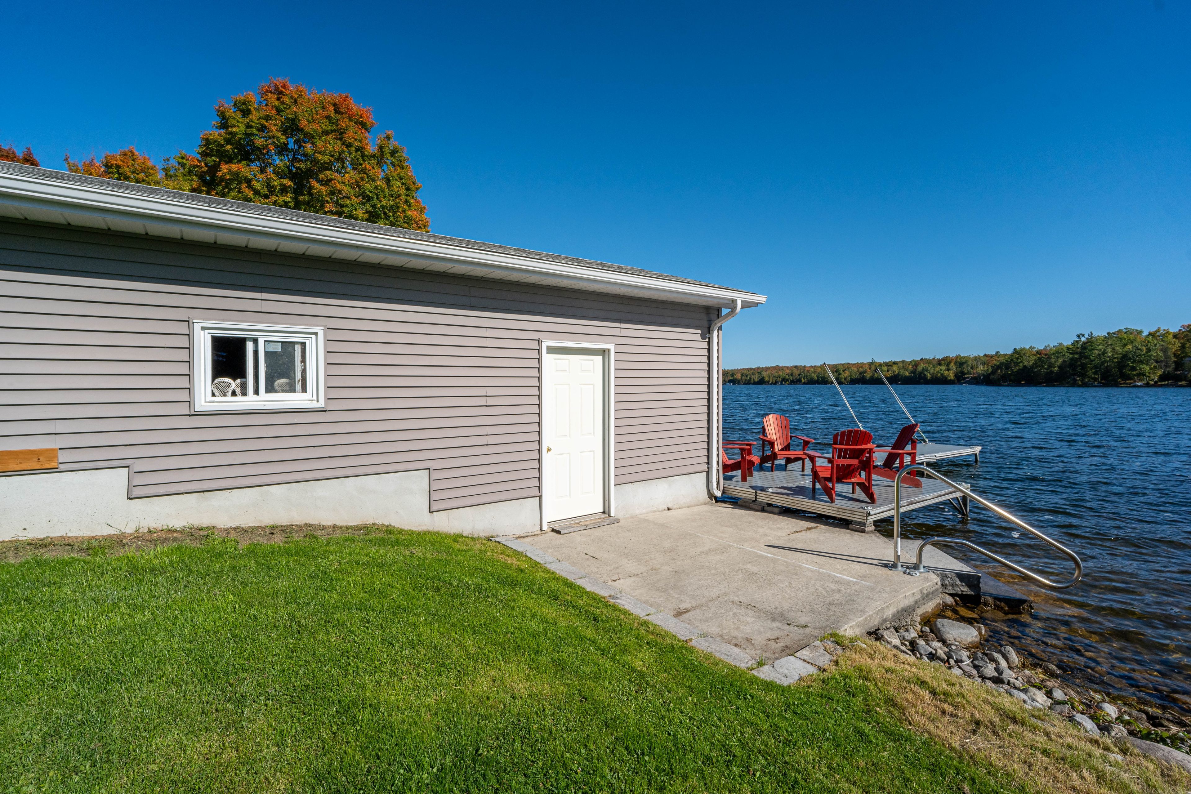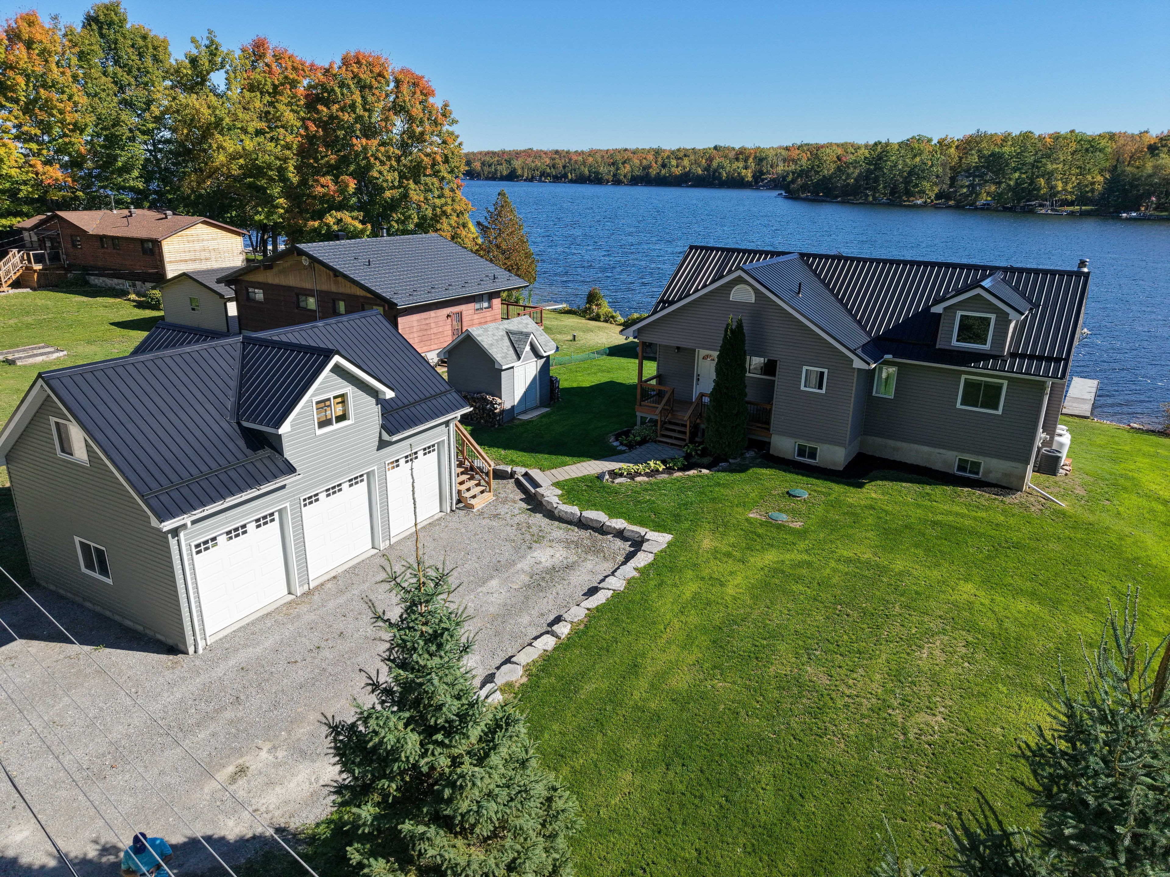 Welcome to this stunning lower buckhorn lake home with a wet slip boat house and three-bay garage. This 3-bedroom, 2-bathroom home completely renovated in 2008 and has been continuously improved since, it combines modern comfort with the serenity of lakeside living. The heart of the home is the 2021 custom kitchen, featuring cathedral ceilings, granite countertops, and updated appliances. Its spacious, open design flows seamlessly onto a large covered balcony overlooking deer bay. The main floor includes a large bedroom with four windows and a cathedral ceiling. Also on the main floor is laundry facilities (2021), and a versatile second bedroom/office. The finished basement provides additional living space with a cozy wood-burning fireplace, the third bedroom, and a walk-out to a private patio with easy water access. This home is truly turnkey, with all major systems and features already taken care of. Renovations as follows: in 2008 a complete home update. In 2021 a new custom kitchen (cabinets, appliances). In 2021 a new furnace & central air. In 2023 a new three-bay garage with insulated loft space (permit closed). In 2024 a septic system (permit closed). In 2024 a metal roof on main house. For those who love the water, this property includes a boat house, docks with a 4 foot depth that goes down to 20 feet - perfect for swimming, boating, and excellent fishing. This property has calm waters, minimal boat traffic, welcoming neighbours, with hiking trails on the other side of the road. This home offers the perfect balance of modern upgrades, spacious living, and a waterfront lifestyle just 20 minutes from downtown peterborough and 1. 5 hours from toronto.