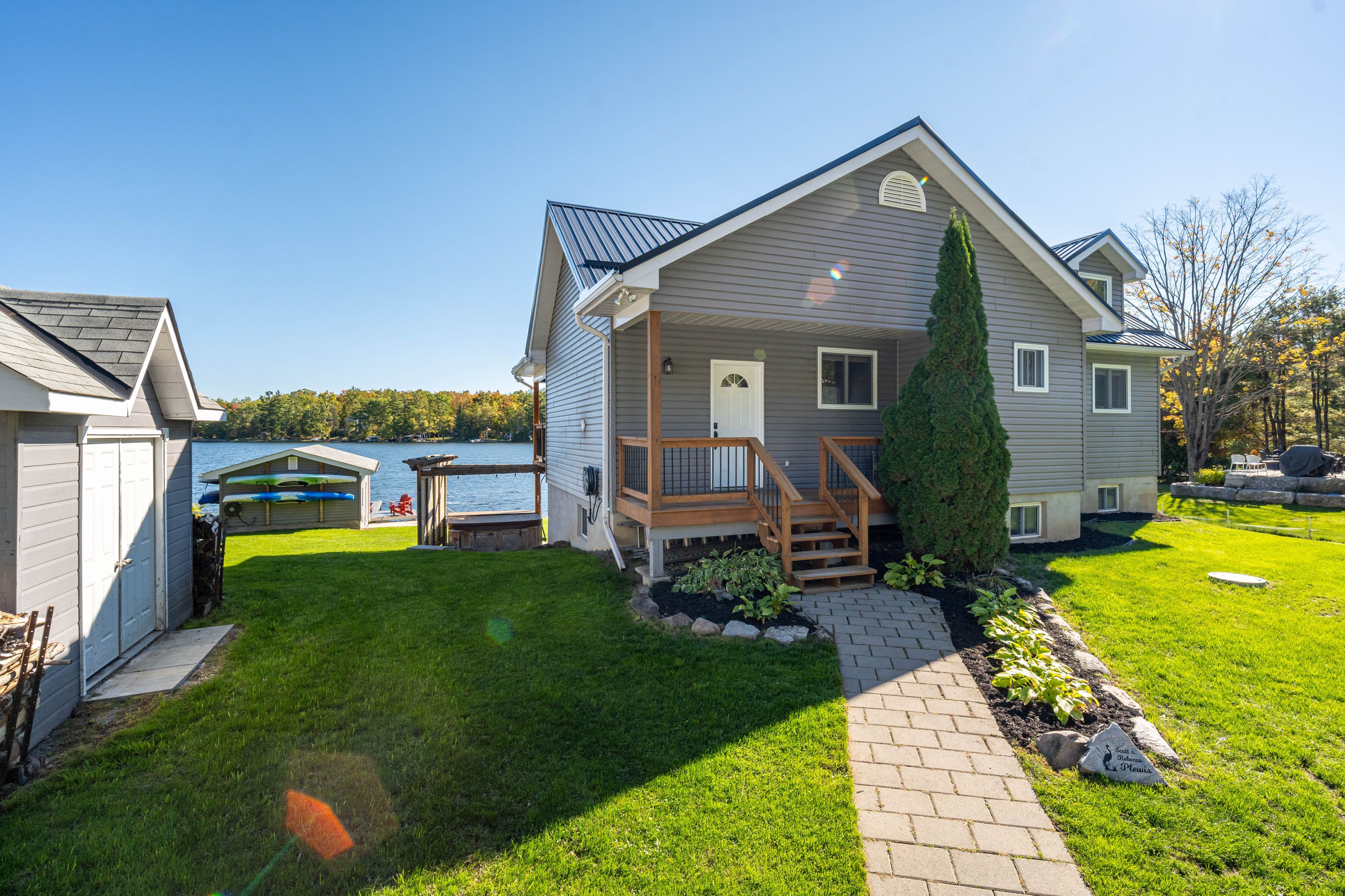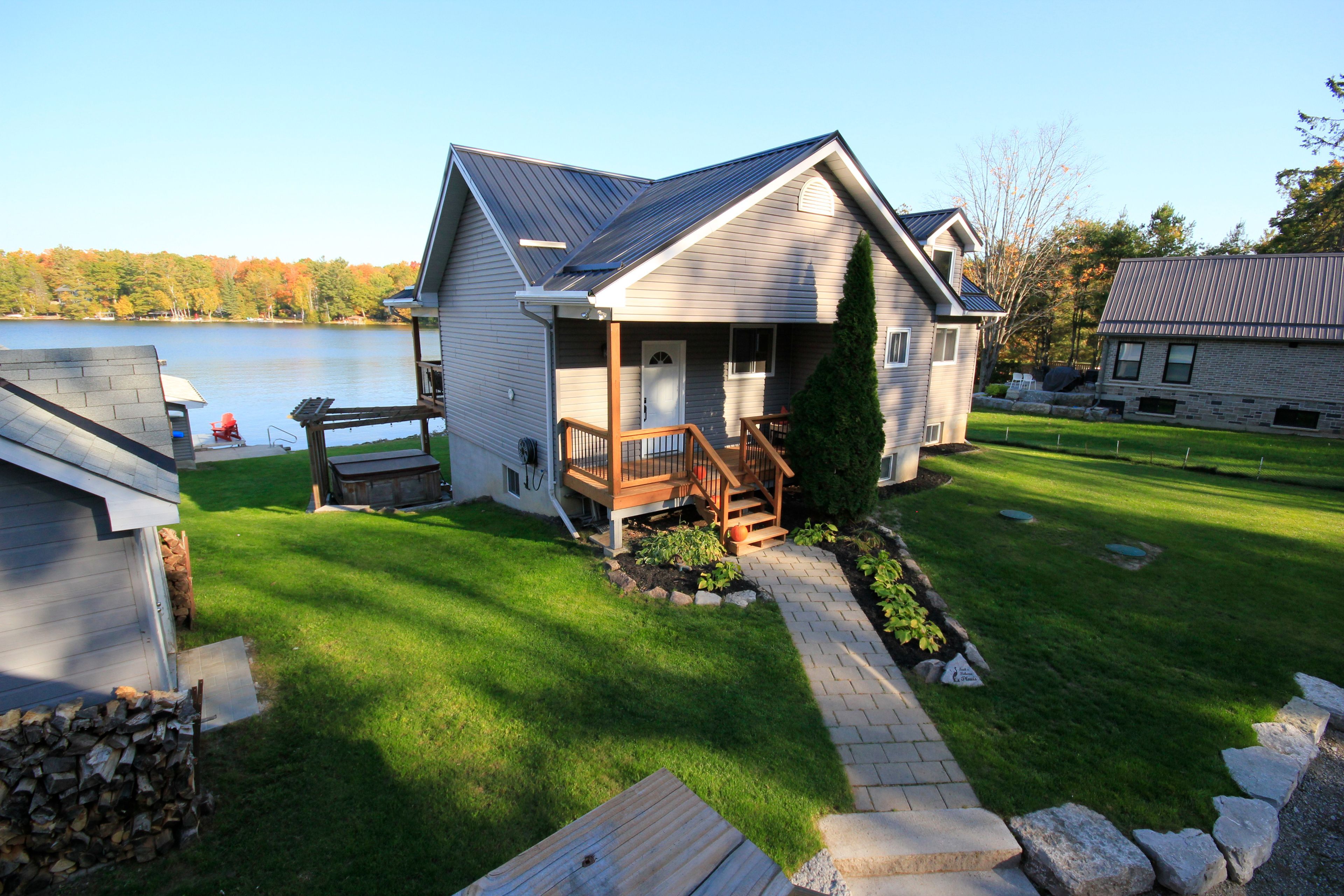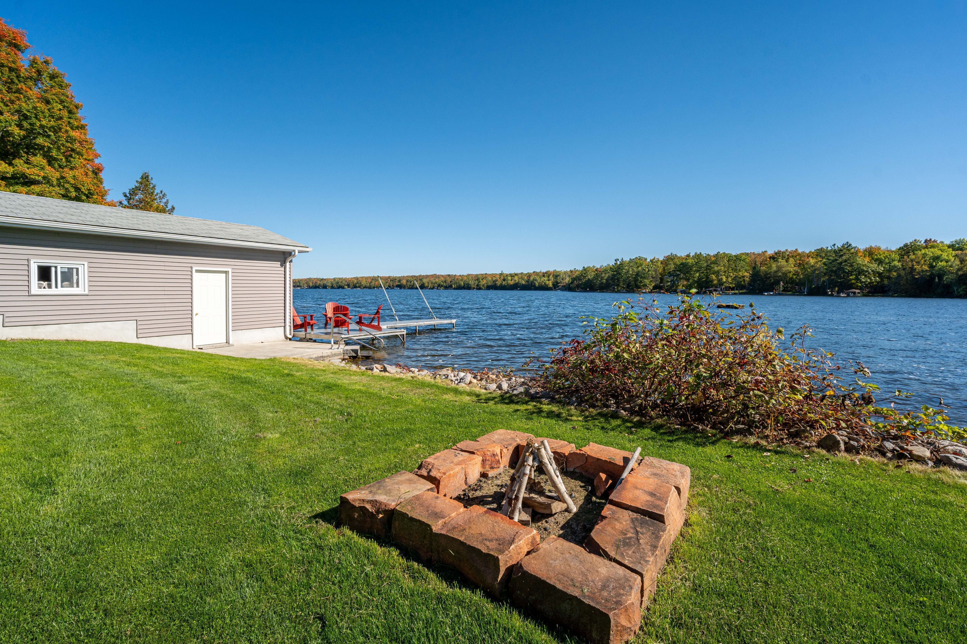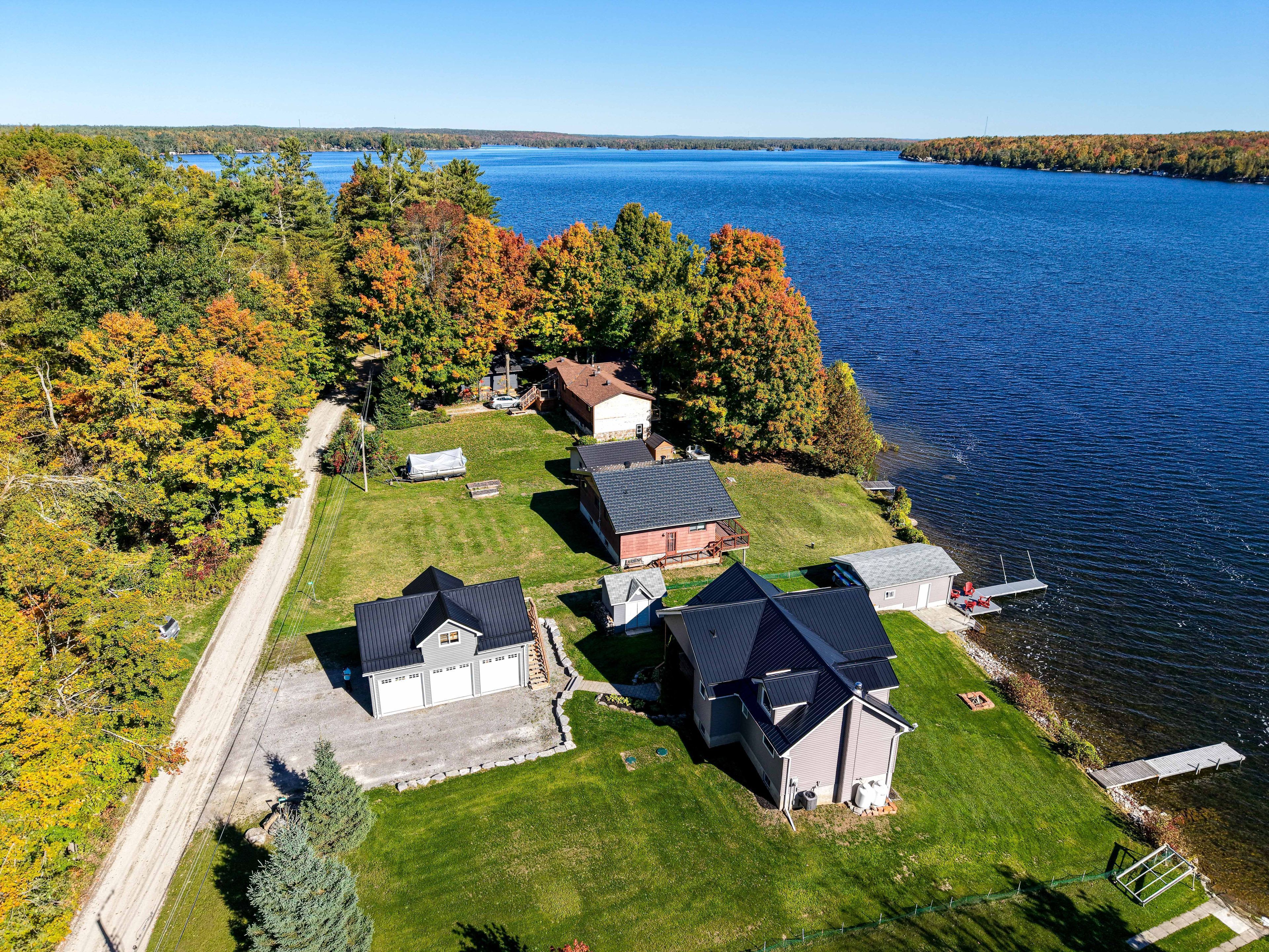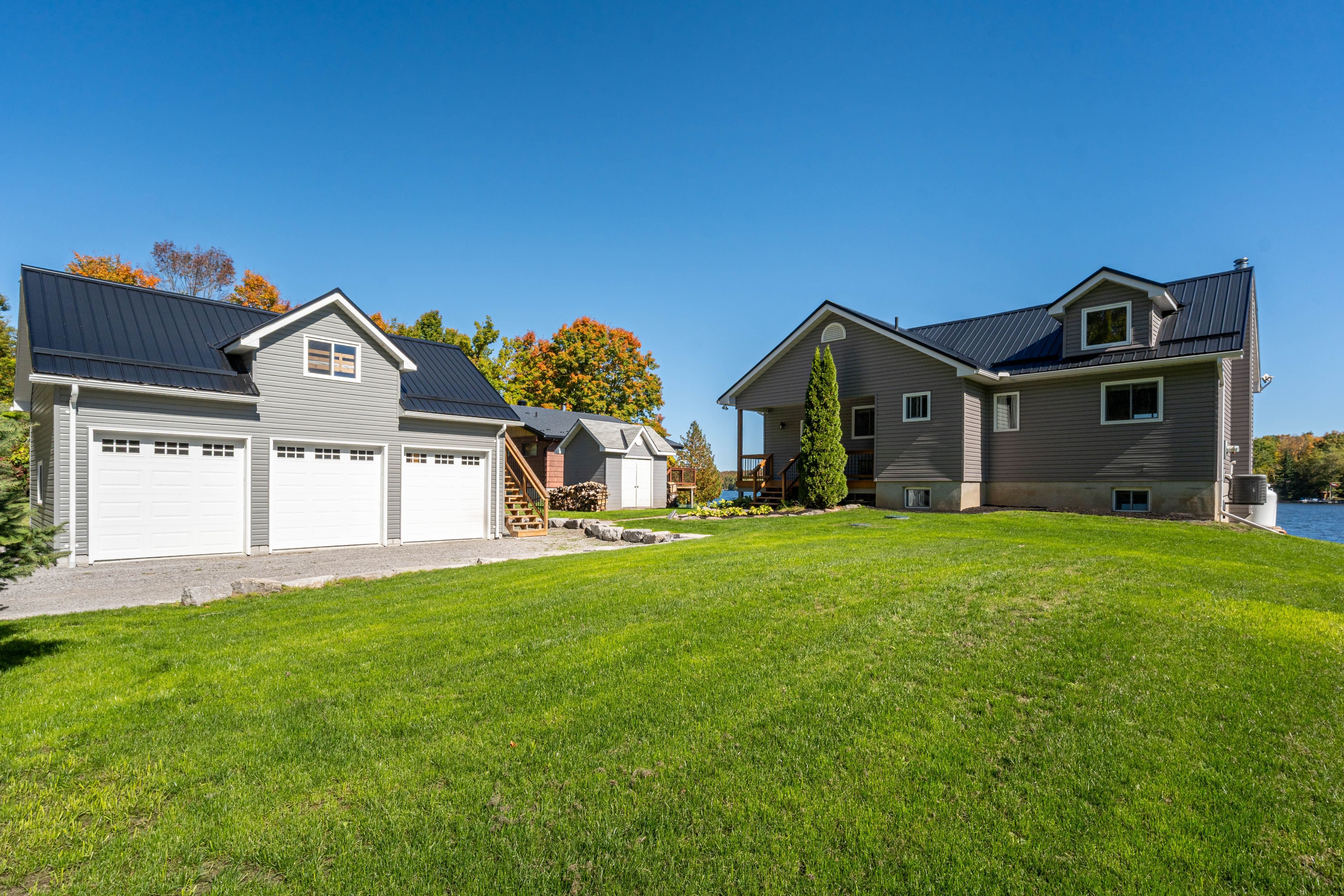 Welcome to this stunning lower buckhorn lake home with a wet slip boat house and three-bay garage. This 3-bedroom, 2-bathroom home completely renovated in 2008 and has been continuously improved since, it combines modern comfort with the serenity of lakeside living. The heart of the home is the 2021 custom kitchen, featuring cathedral ceilings, granite countertops, and updated appliances. Its spacious, open design flows seamlessly onto a large covered balcony overlooking deer bay. The main floor includes a large bedroom with four windows and a cathedral ceiling. Also on the main floor is laundry facilities (2021), and a versatile second bedroom/office. The finished basement provides additional living space with a cozy wood-burning fireplace, the third bedroom, and a walk-out to a private patio with easy water access. This home is truly turnkey, with all major systems and features already taken care of. Renovations as follows: in 2008 a complete home update. In 2021 a new custom kitchen (cabinets, appliances). In 2021 a new furnace & central air. In 2023 a new three-bay garage with insulated loft space (permit closed). In 2024 a septic system (permit closed). In 2024 a metal roof on main house. For those who love the water, this property includes a boat house, docks with a 4 foot depth that goes down to 20 feet - perfect for swimming, boating, and excellent fishing. This property has calm waters, minimal boat traffic, welcoming neighbours, with hiking trails on the other side of the road. This home offers the perfect balance of modern upgrades, spacious living, and a waterfront lifestyle just 20 minutes from downtown peterborough and 1. 5 hours from toronto.