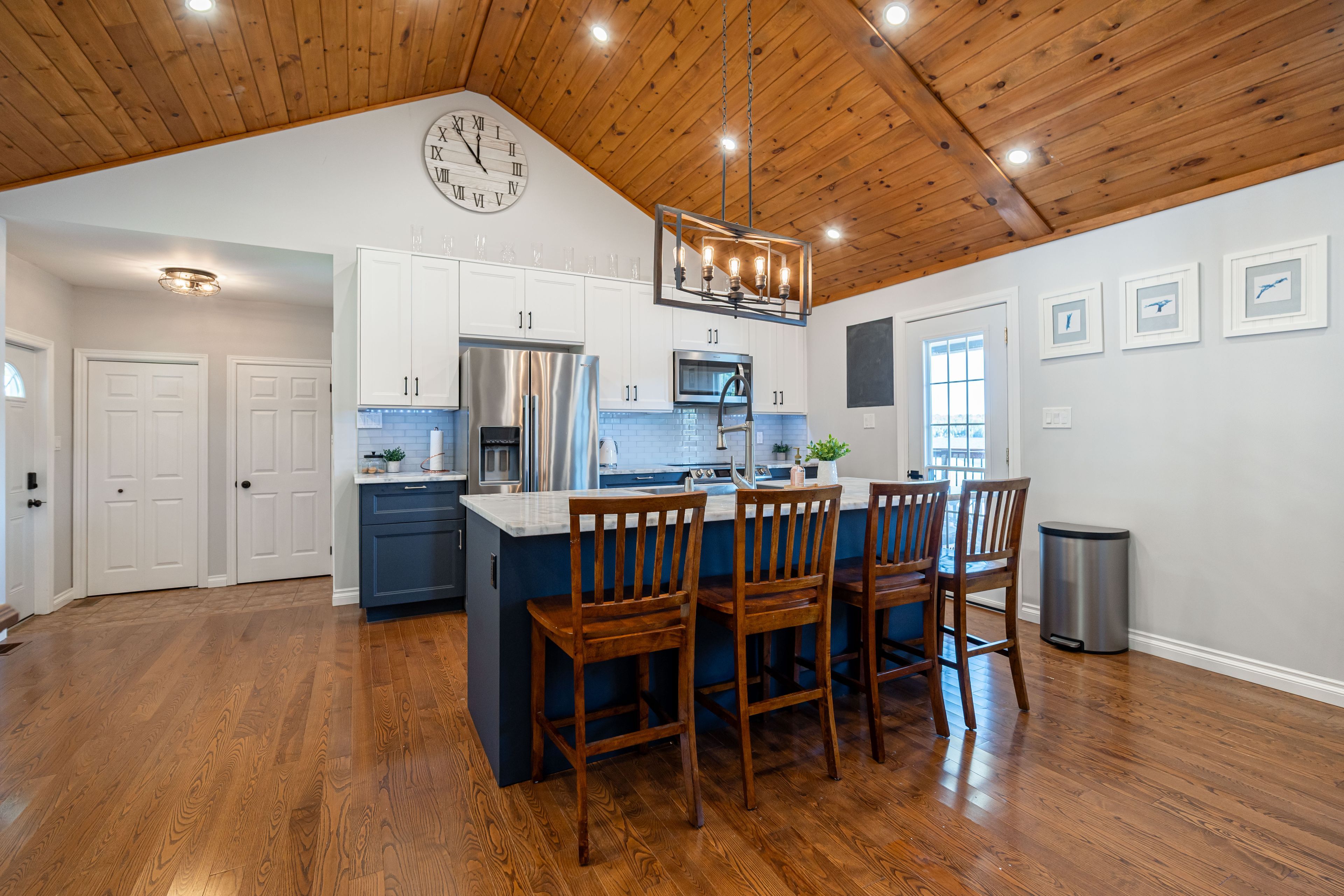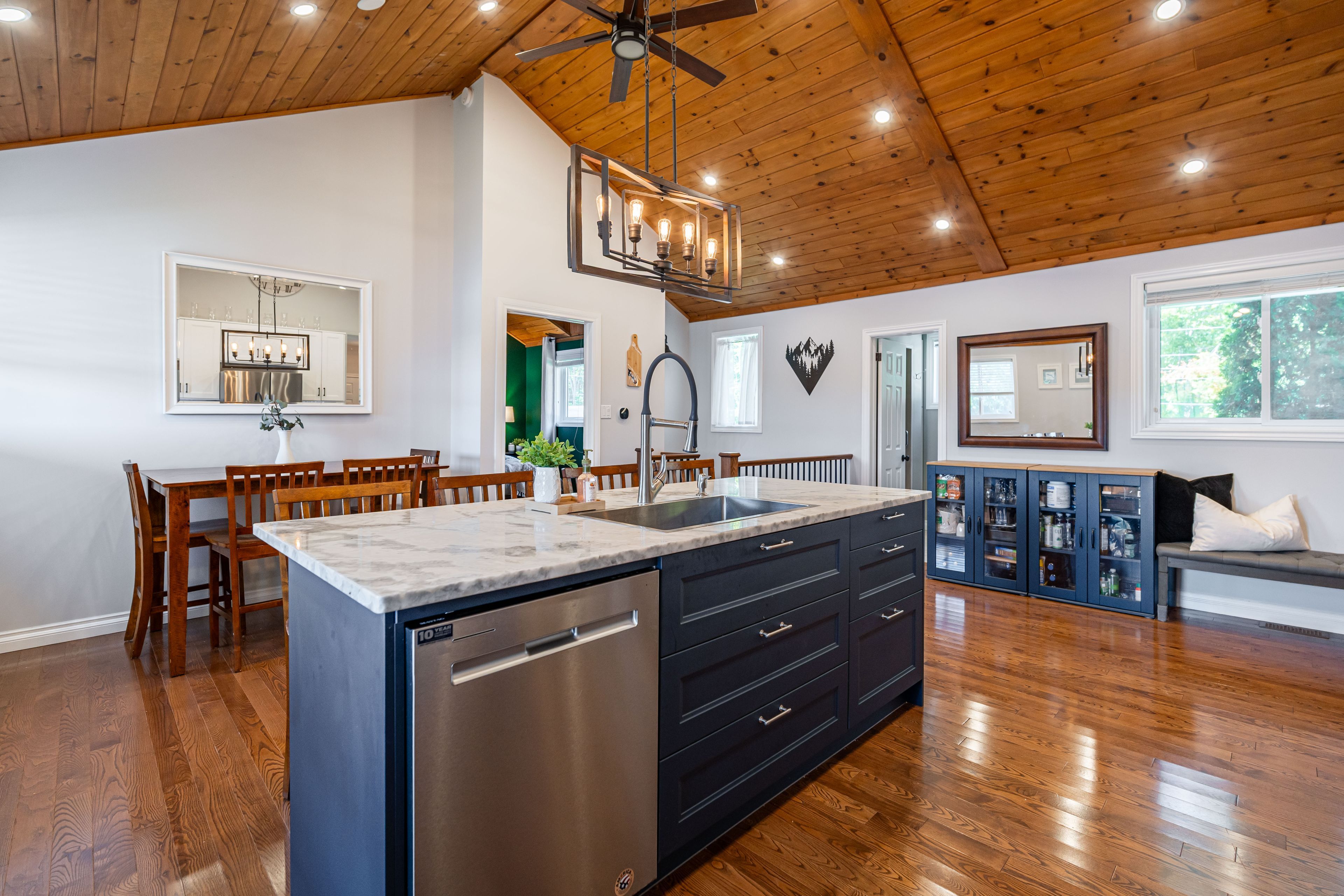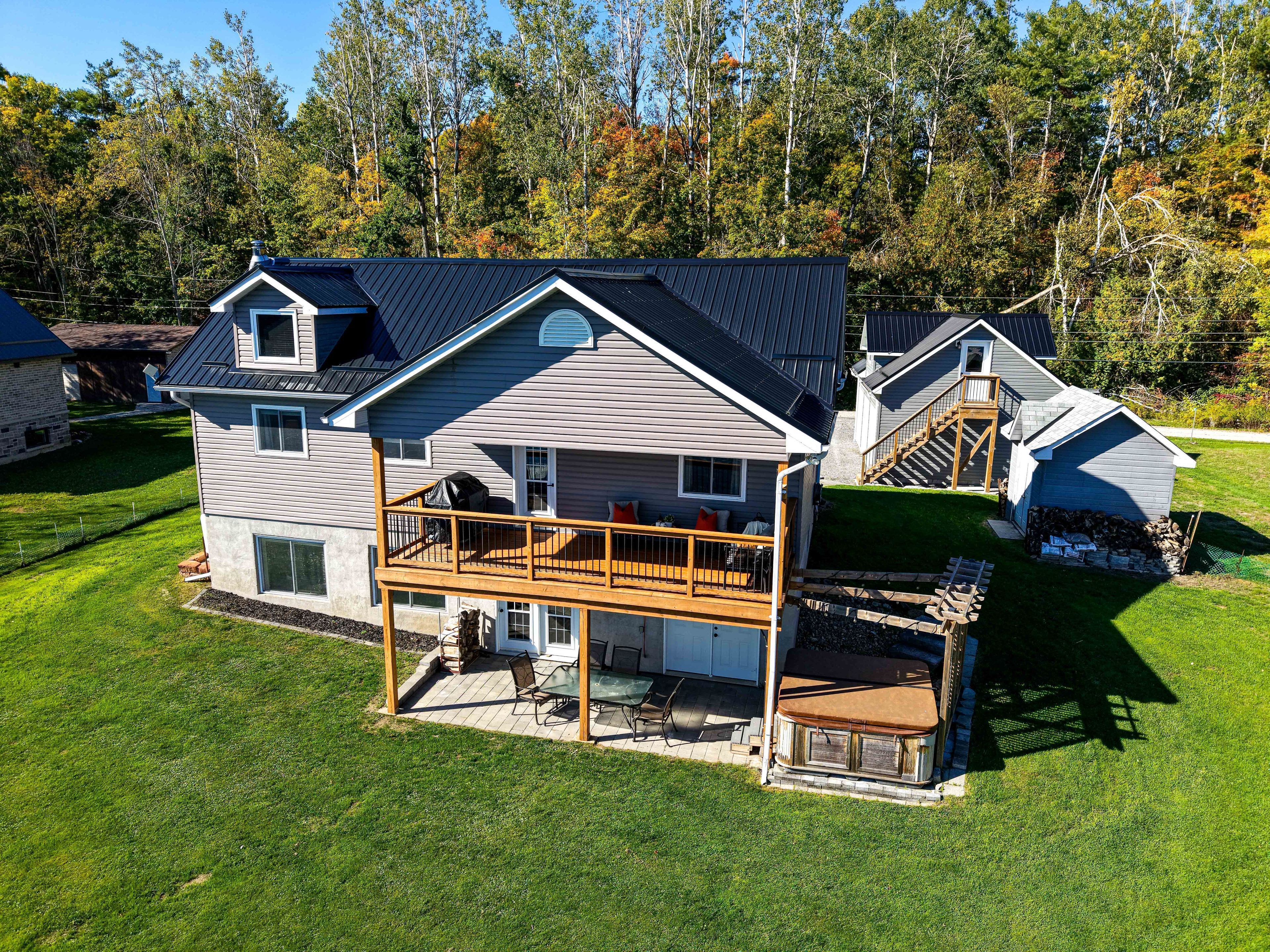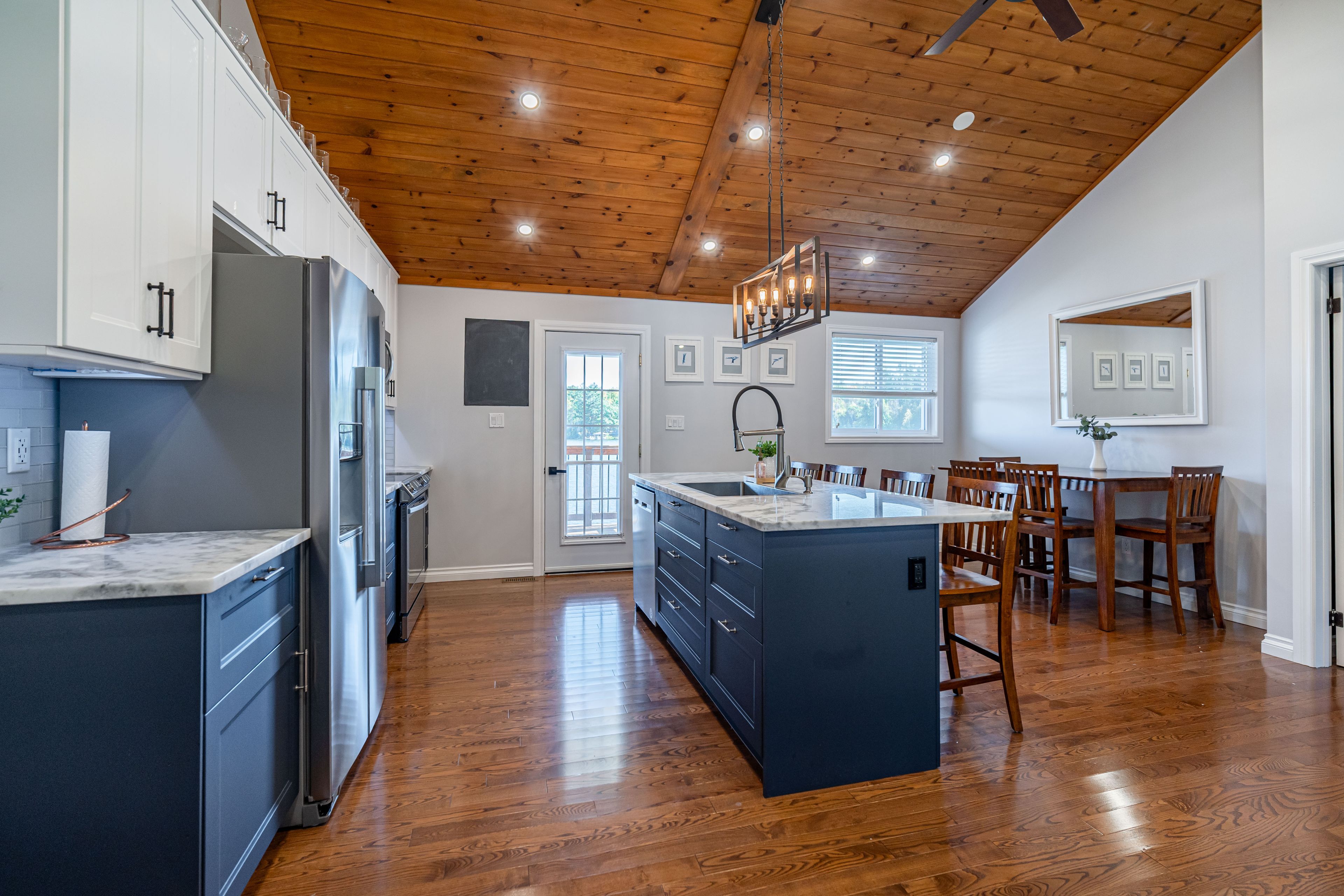 Welcome to this stunning lower buckhorn lake home with a wet slip boat house and three-bay garage. This 3-bedroom, 2-bathroom home completely renovated in 2008 and has been continuously improved since, it combines modern comfort with the serenity of lakeside living. The heart of the home is the 2021 custom kitchen, featuring cathedral ceilings, granite countertops, and updated appliances. Its spacious, open design flows seamlessly onto a large covered balcony overlooking deer bay. The main floor includes a large bedroom with four windows and a cathedral ceiling. Also on the main floor is laundry facilities (2021), and a versatile second bedroom/office. The finished basement provides additional living space with a cozy wood-burning fireplace, the third bedroom, and a walk-out to a private patio with easy water access. This home is truly turnkey, with all major systems and features already taken care of. Renovations as follows: in 2008 a complete home update. In 2021 a new custom kitchen (cabinets, appliances). In 2021 a new furnace & central air. In 2023 a new three-bay garage with insulated loft space (permit closed). In 2024 a septic system (permit closed). In 2024 a metal roof on main house. For those who love the water, this property includes a boat house, docks with a 4 foot depth that goes down to 20 feet - perfect for swimming, boating, and excellent fishing. This property has calm waters, minimal boat traffic, welcoming neighbours, with hiking trails on the other side of the road. This home offers the perfect balance of modern upgrades, spacious living, and a waterfront lifestyle just 20 minutes from downtown peterborough and 1. 5 hours from toronto.