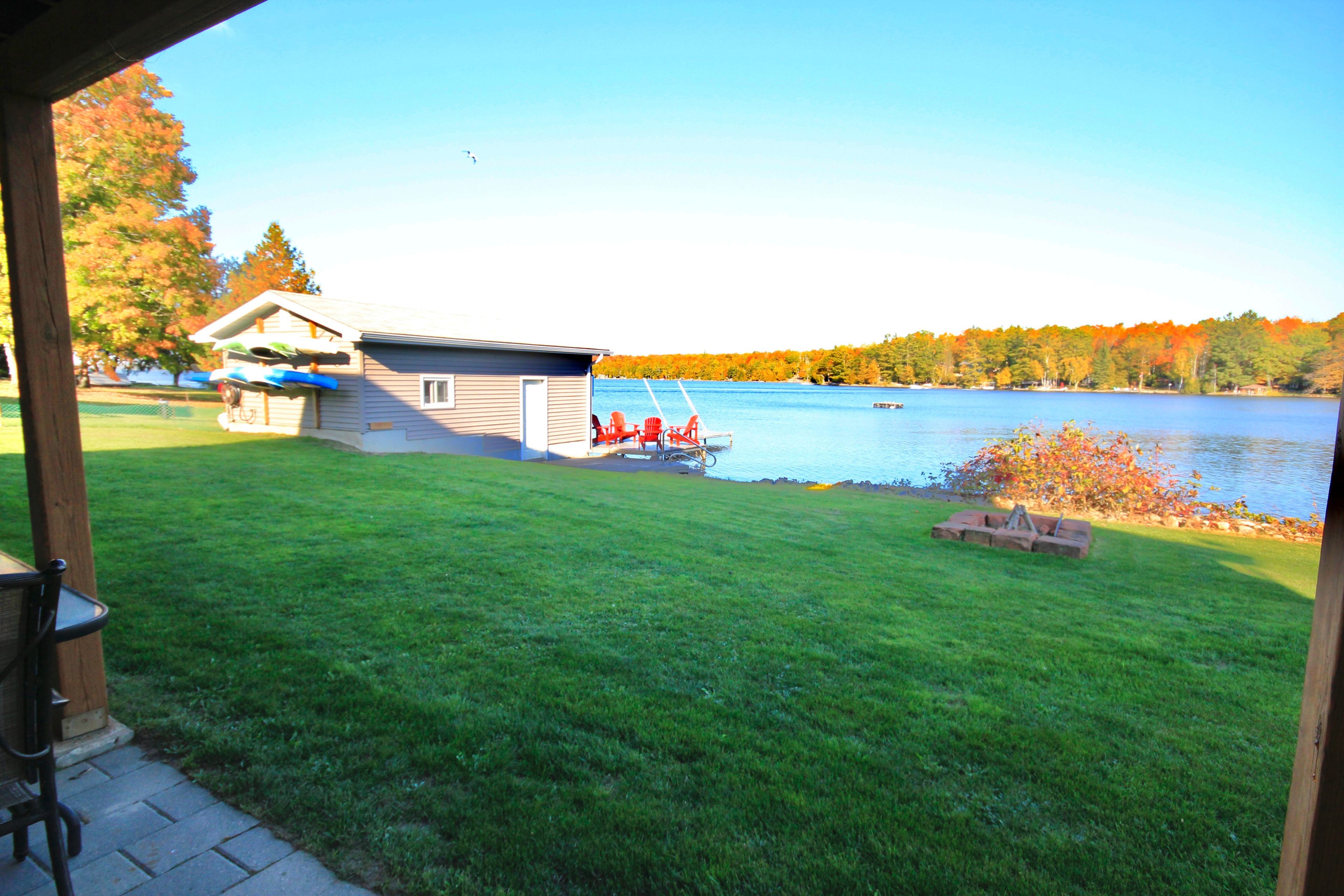 • Finished basement with cozy fireplace and private patio access to water.