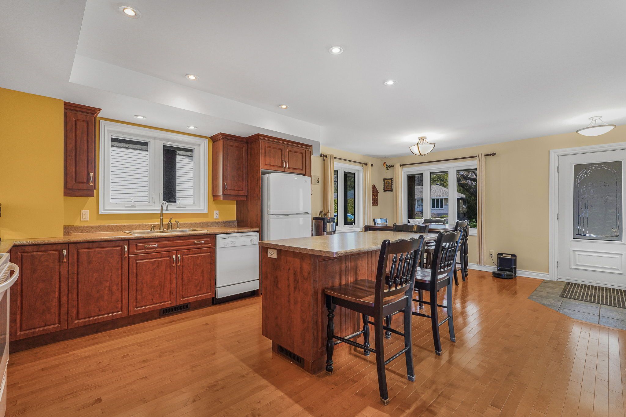 • Bright kitchen with a large island and plenty of storage space.