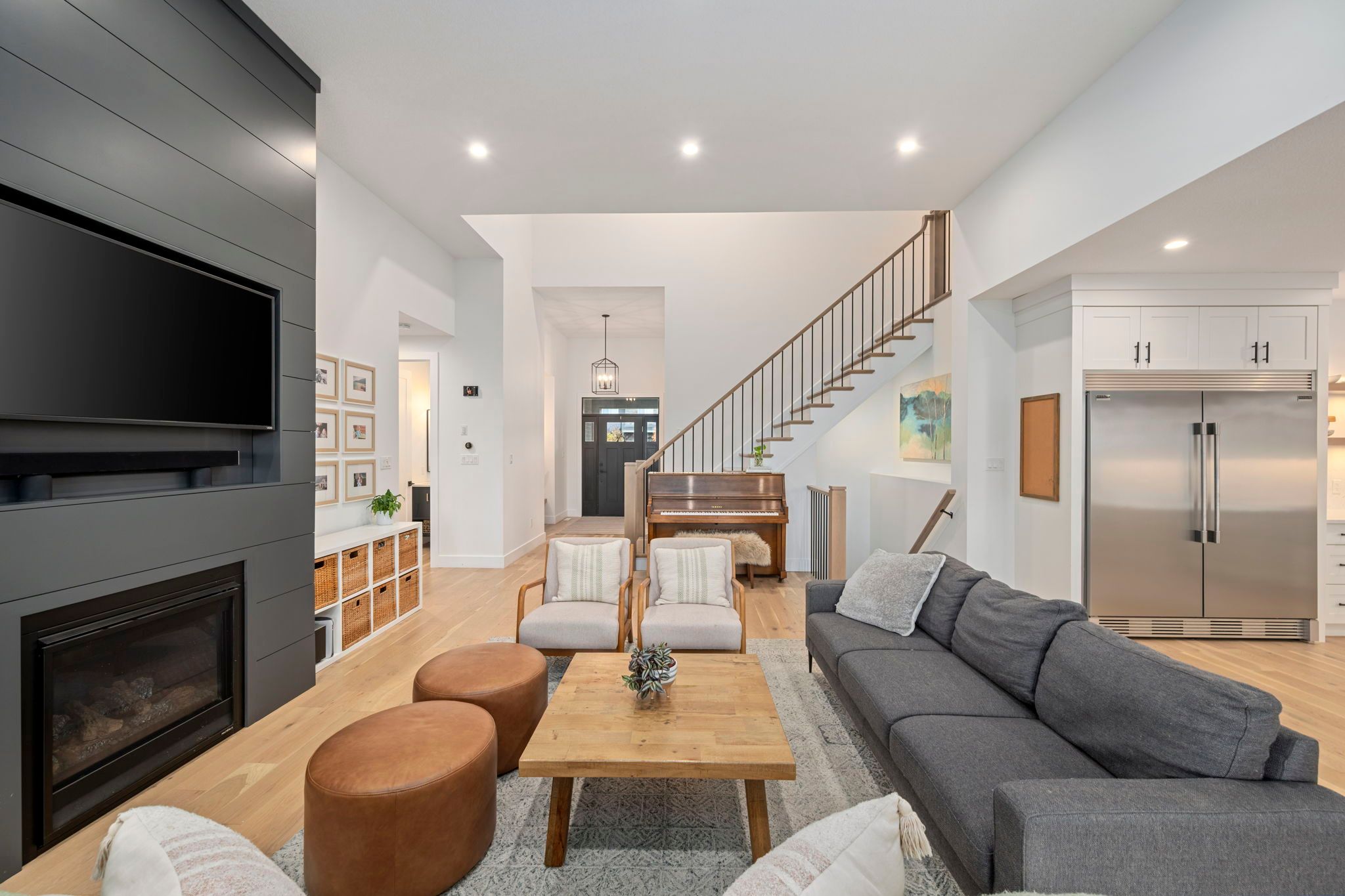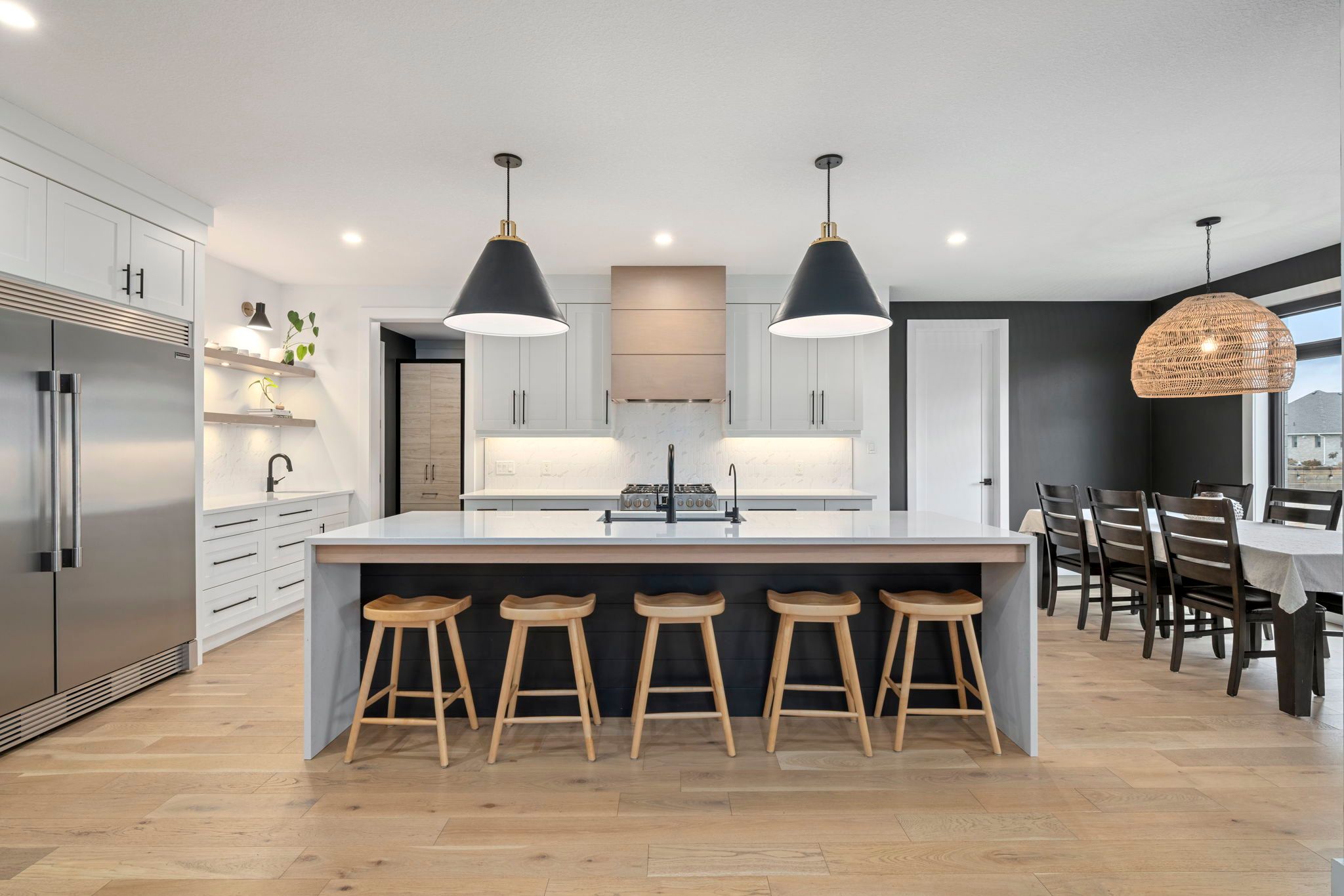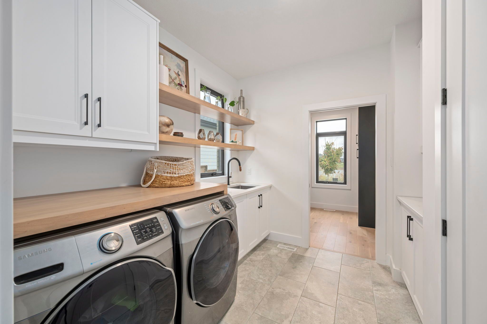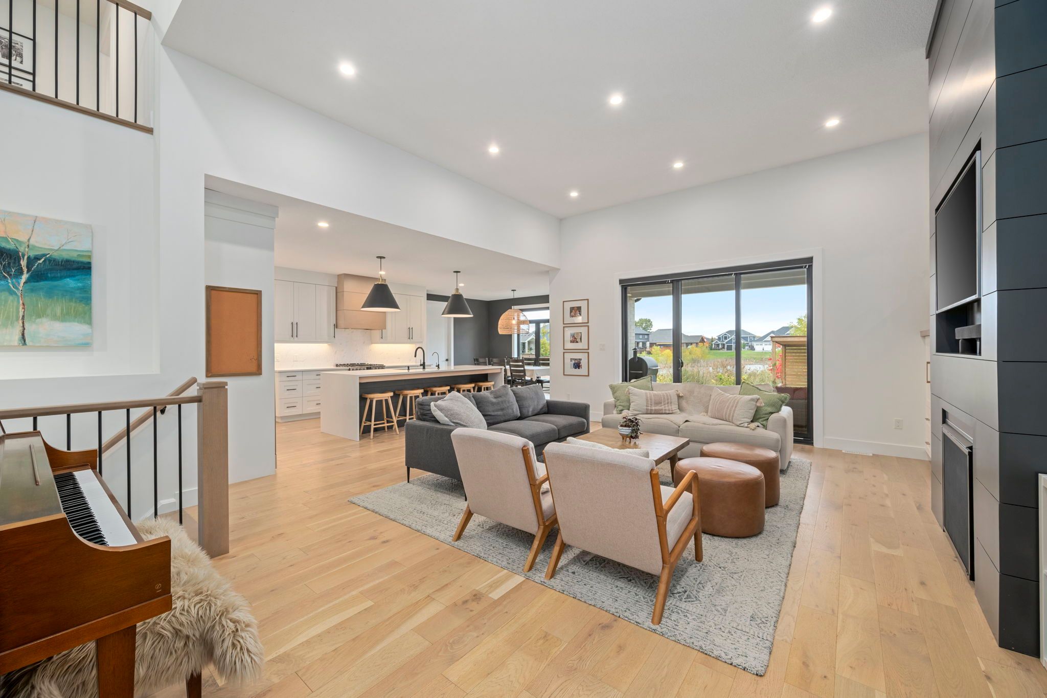 Welcome to this stunning custom-built home that blends modern luxury with thoughtful functionality. From the moment you walk in, you'll be greeted by an impressive open-concept design featuring soaring 9-, 12-, and 20-foot ceilings that create a true sense of space and sophistication. The gourmet kitchen is designed for entertaining, complete with a gas range, two dishwashers, garburator, a full butler's pantry, and reverse osmosis water filtration system. The flow from the kitchen to the dining and living areas makes hosting effortless. The main-floor primary suite is a private retreat, featuring a double shower, double sinks, and a massive walk-in closet with built-in laundry. Step right outside from your bedroom to a relaxing hot tub surrounded by pond views. Upstairs, you'll find a bathroom featuring water closet and additional well-sized rooms. Back on the main floor, the mudroom and separate second laundry room with clothes chute from the upper level offer practical convenience for everyday living. The lower level is made for both wellness and fun - featuring a large gym, a luxurious sauna with heated floors and a steam shower, a juice bar with its own dishwasher, and even a hidden room waiting to be discovered. Step outside to your cottage-like backyard with a sprawling deck overlooking the neighbourhood pond. Enjoy evenings under the stars, watch the kids on the built-in trampoline (sourced from a local trampoline park), and unwind in the peaceful natural setting. Additional highlights include a large garage, in-ground sprinklers, high-quality heat recovery ventilator, uv with charcoal water filtration, and more. Every inch of this home has been designed with comfort, luxury, and lifestyle in mind - offering a truly one-of-a-kind living experience.