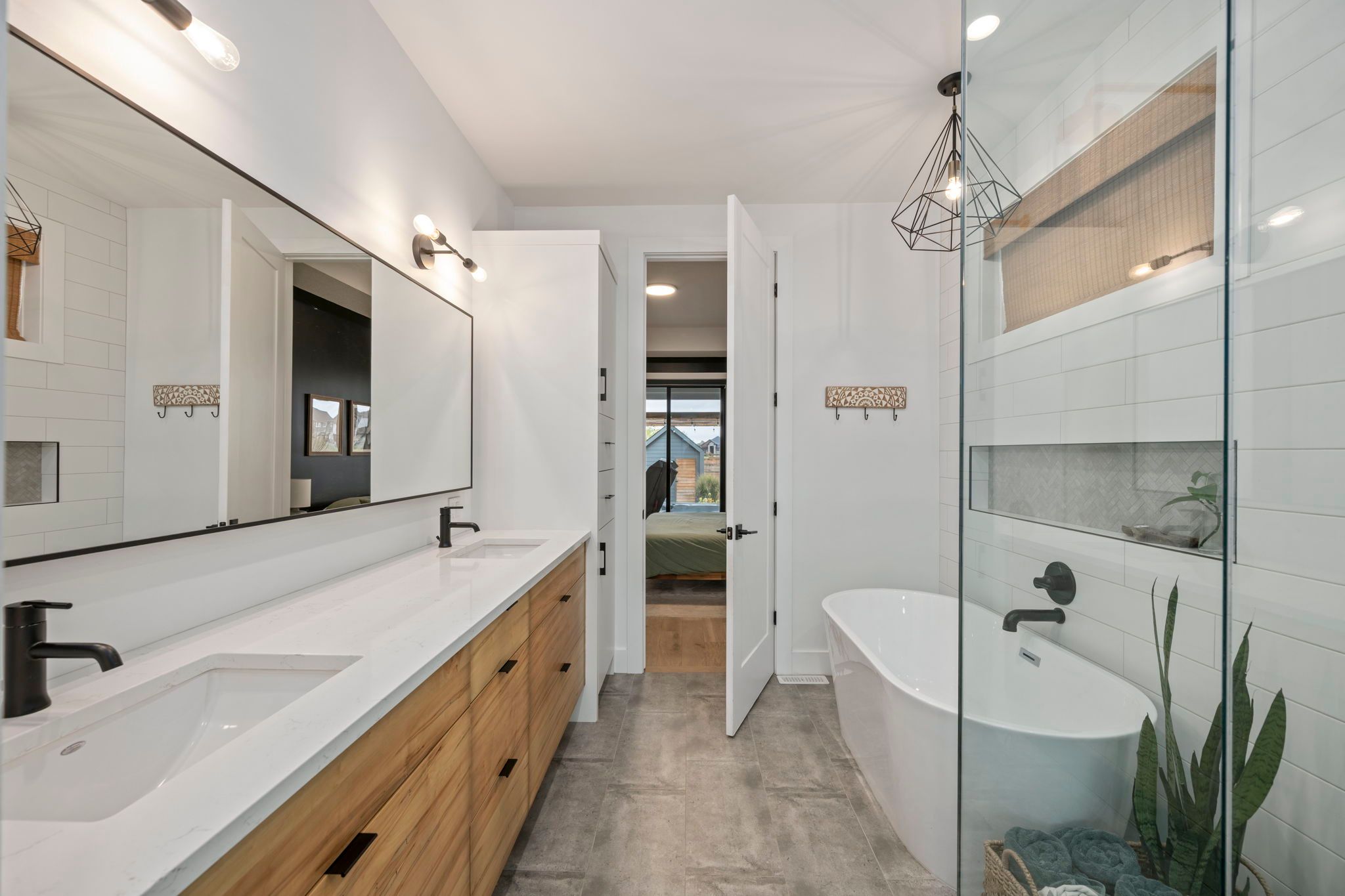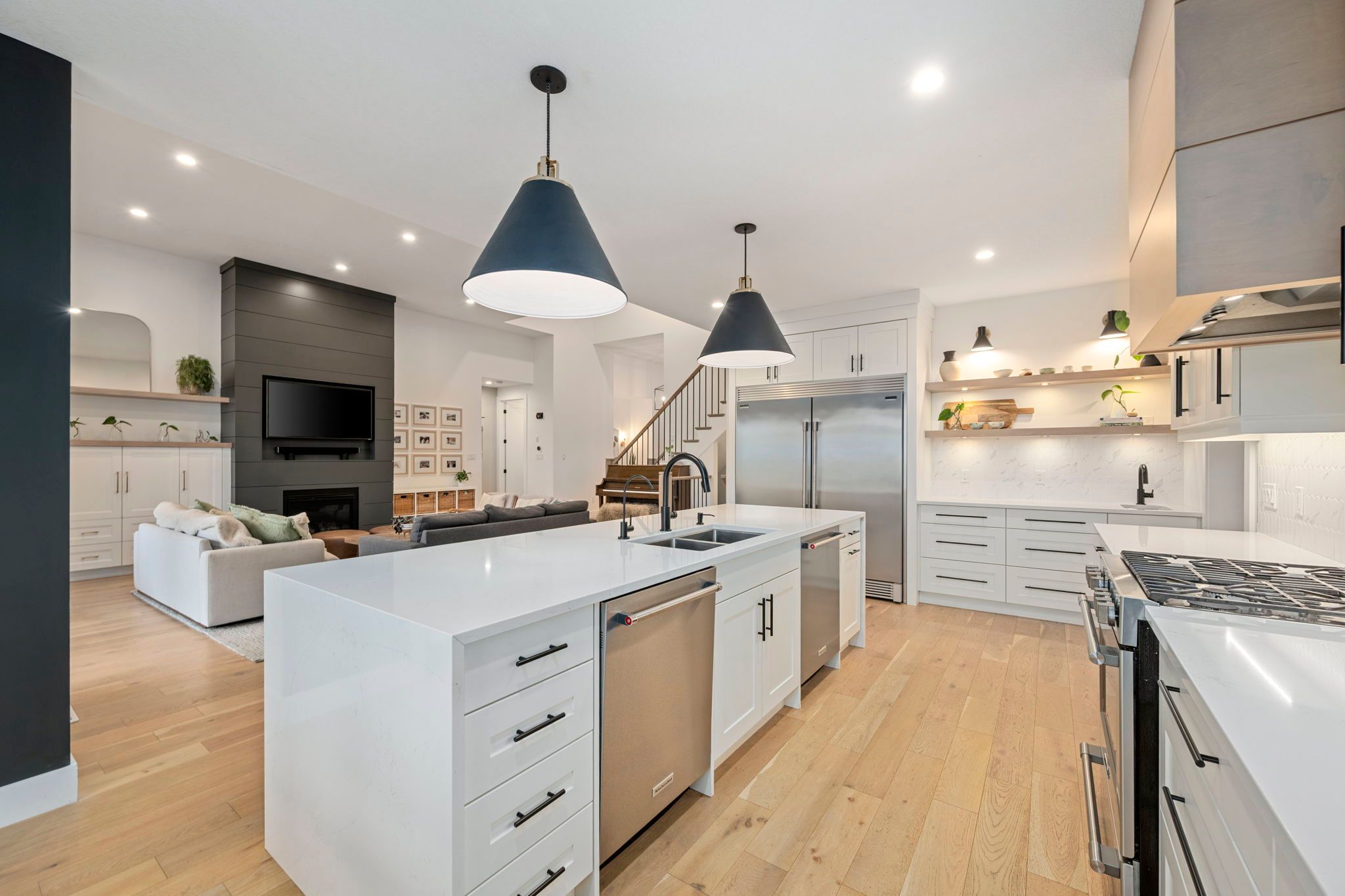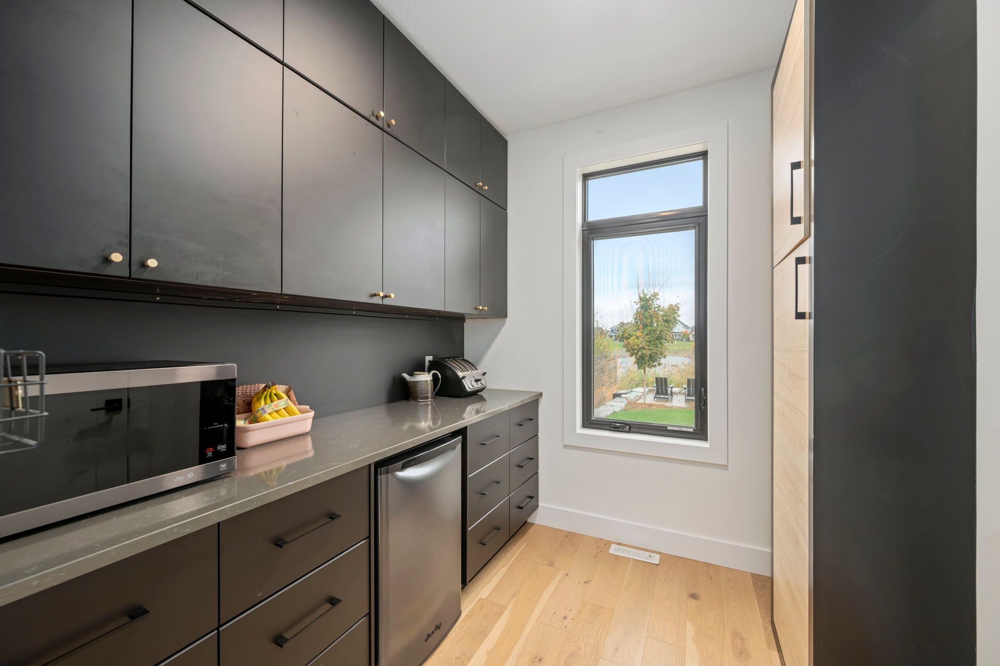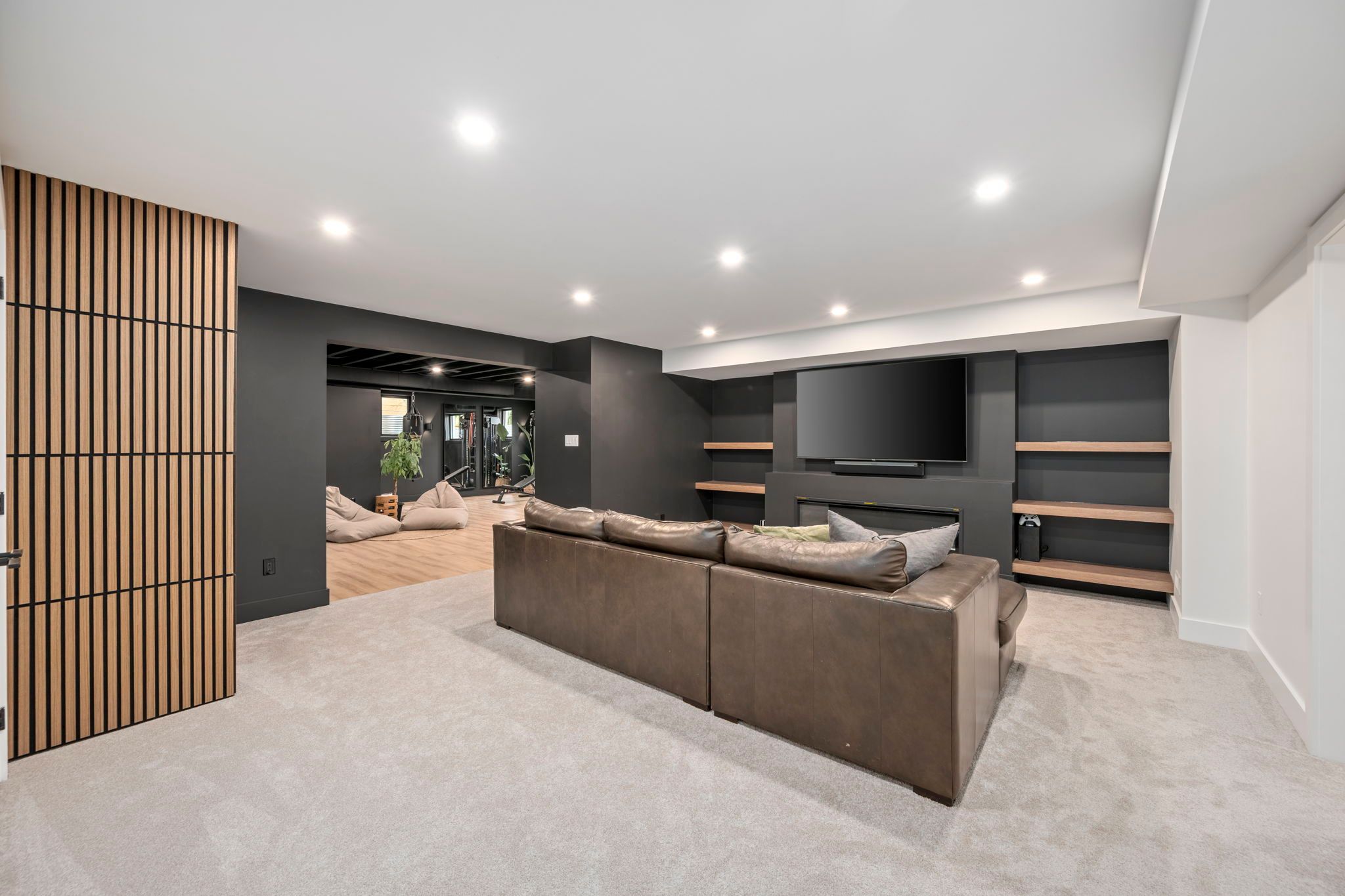 Welcome to this stunning custom-built home that blends modern luxury with thoughtful functionality. From the moment you walk in, you'll be greeted by an impressive open-concept design featuring soaring 9-, 12-, and 20-foot ceilings that create a true sense of space and sophistication. The gourmet kitchen is designed for entertaining, complete with a gas range, two dishwashers, garburator, a full butler's pantry, and reverse osmosis water filtration system. The flow from the kitchen to the dining and living areas makes hosting effortless. The main-floor primary suite is a private retreat, featuring a double shower, double sinks, and a massive walk-in closet with built-in laundry. Step right outside from your bedroom to a relaxing hot tub surrounded by pond views. Upstairs, you'll find a bathroom featuring water closet and additional well-sized rooms. Back on the main floor, the mudroom and separate second laundry room with clothes chute from the upper level offer practical convenience for everyday living. The lower level is made for both wellness and fun - featuring a large gym, a luxurious sauna with heated floors and a steam shower, a juice bar with its own dishwasher, and even a hidden room waiting to be discovered. Step outside to your cottage-like backyard with a sprawling deck overlooking the neighbourhood pond. Enjoy evenings under the stars, watch the kids on the built-in trampoline (sourced from a local trampoline park), and unwind in the peaceful natural setting. Additional highlights include a large garage, in-ground sprinklers, high-quality heat recovery ventilator, uv with charcoal water filtration, and more. Every inch of this home has been designed with comfort, luxury, and lifestyle in mind - offering a truly one-of-a-kind living experience.