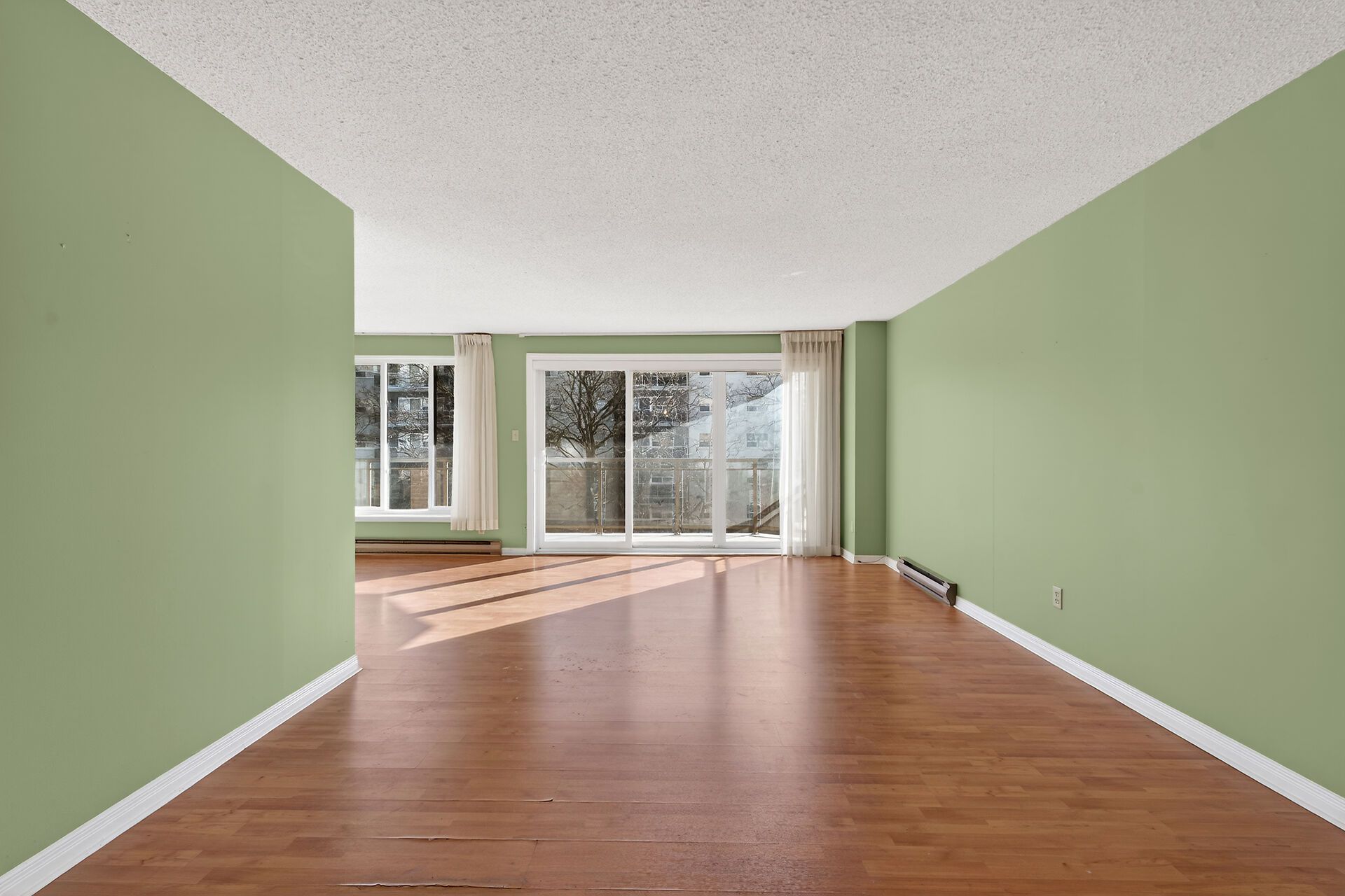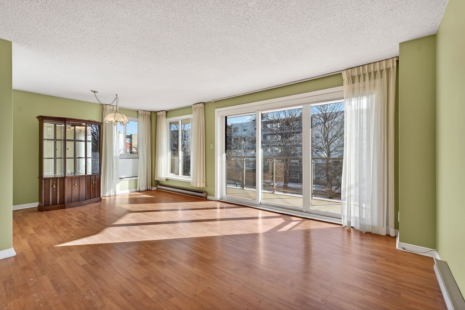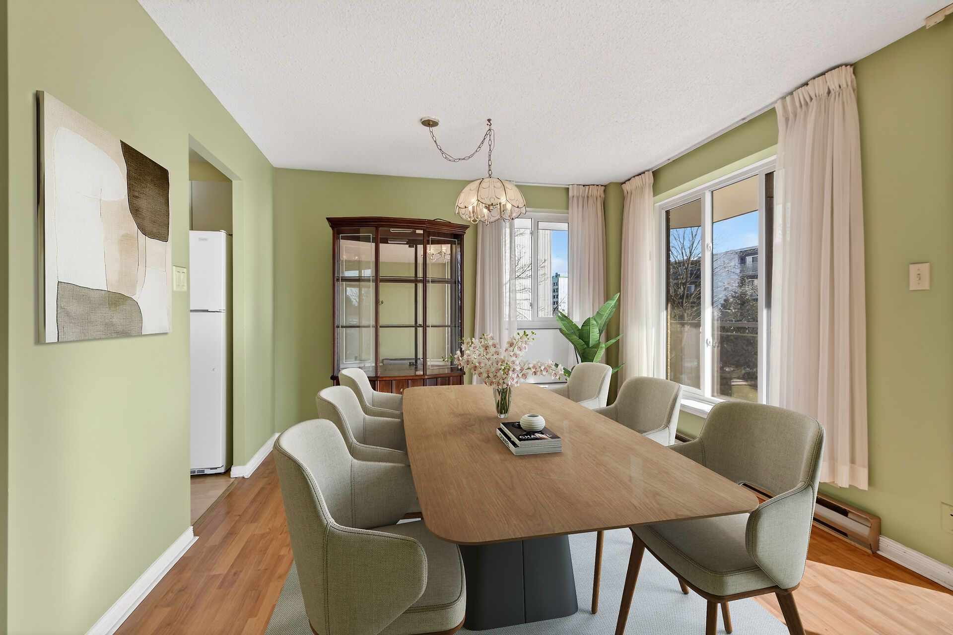 • Bright corner two-bedroom suite with open-concept living and dining space.