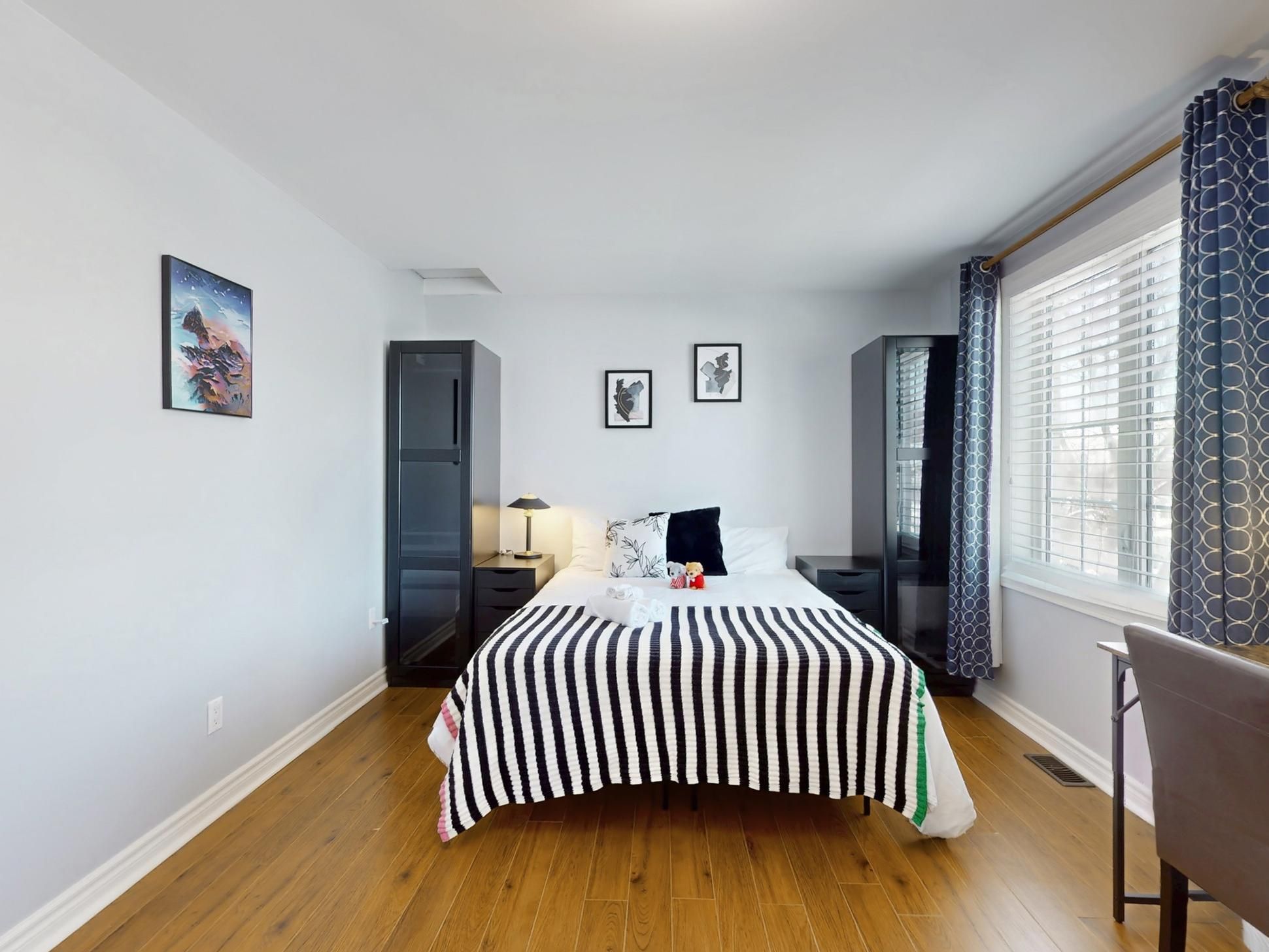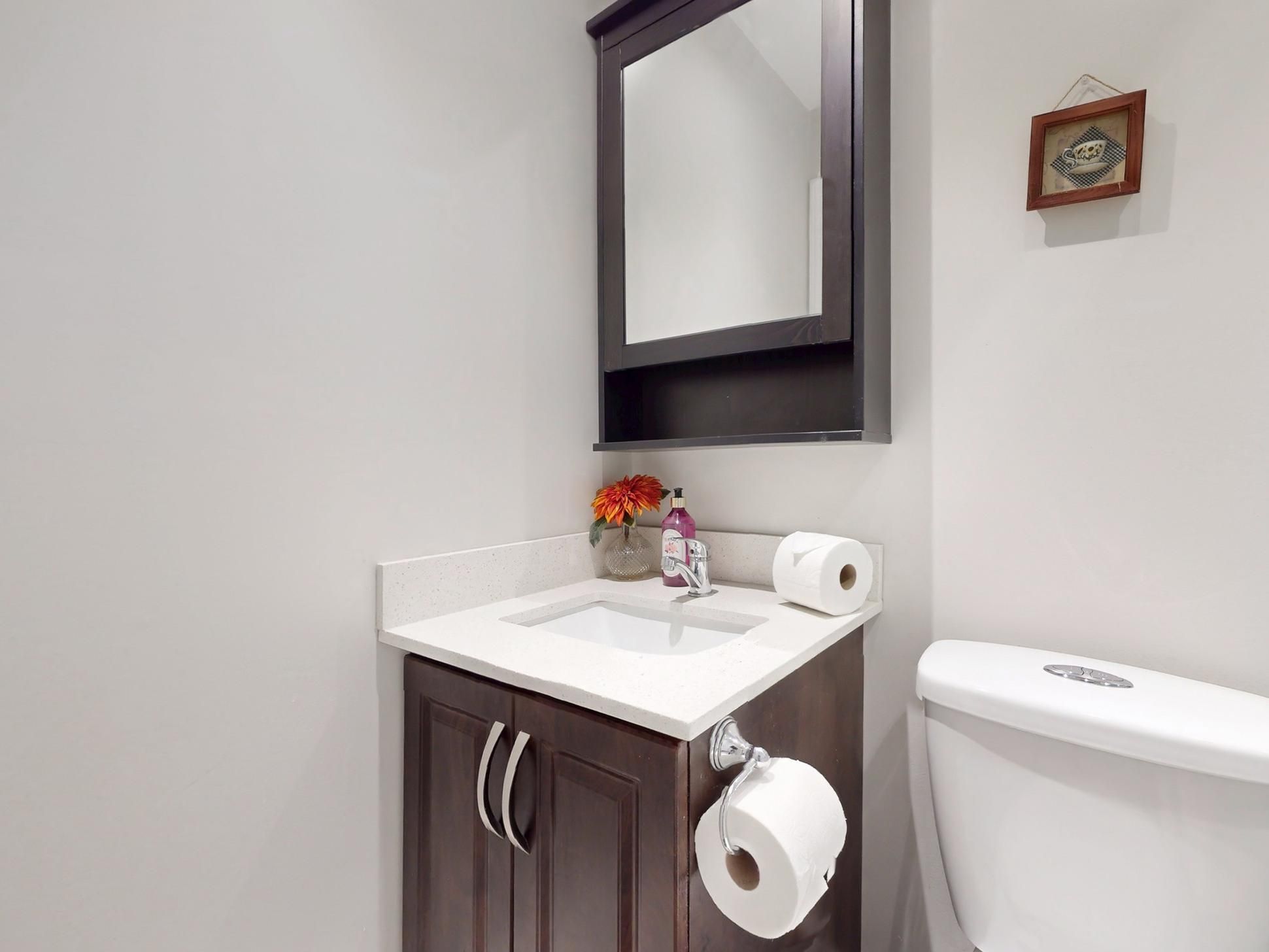 • Three bedrooms upstairs, including a spacious primary room with ensuite bath.