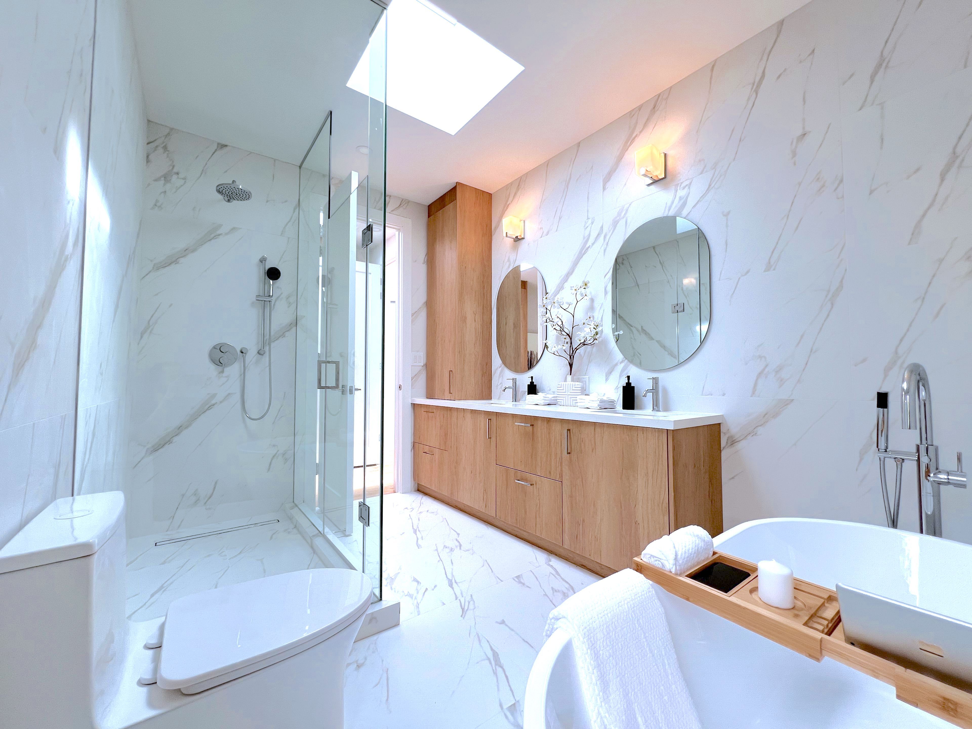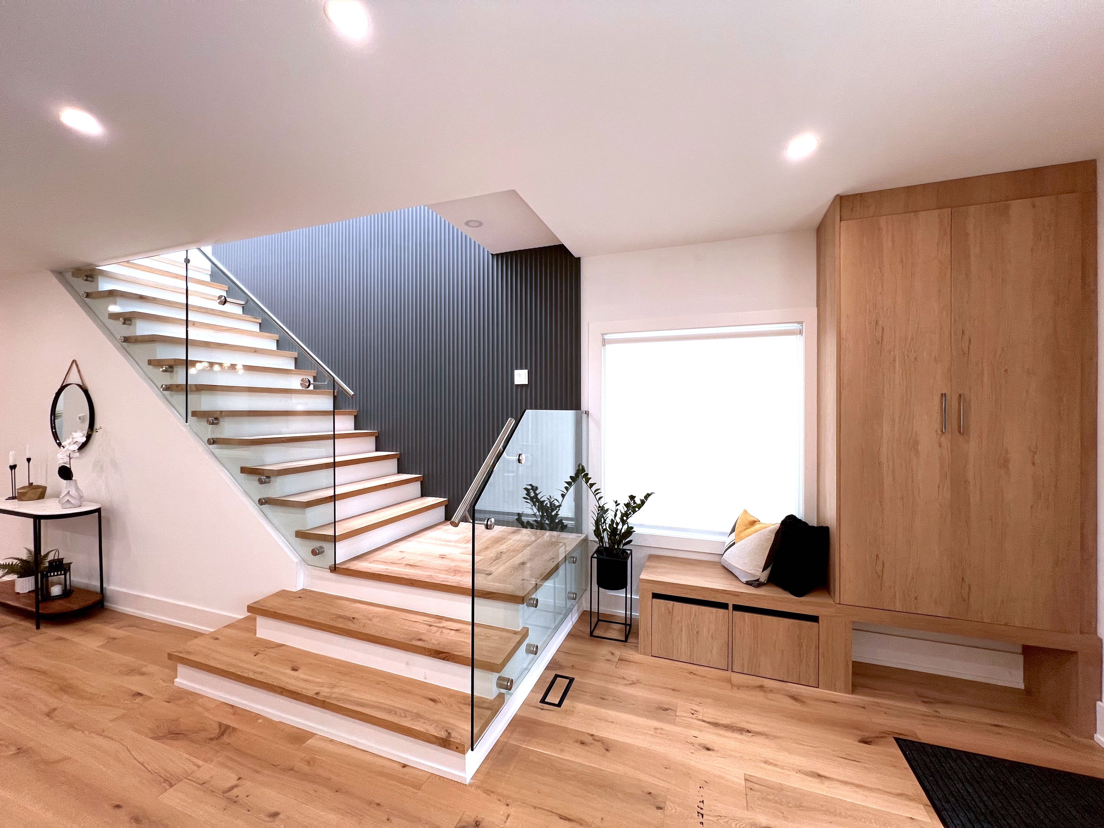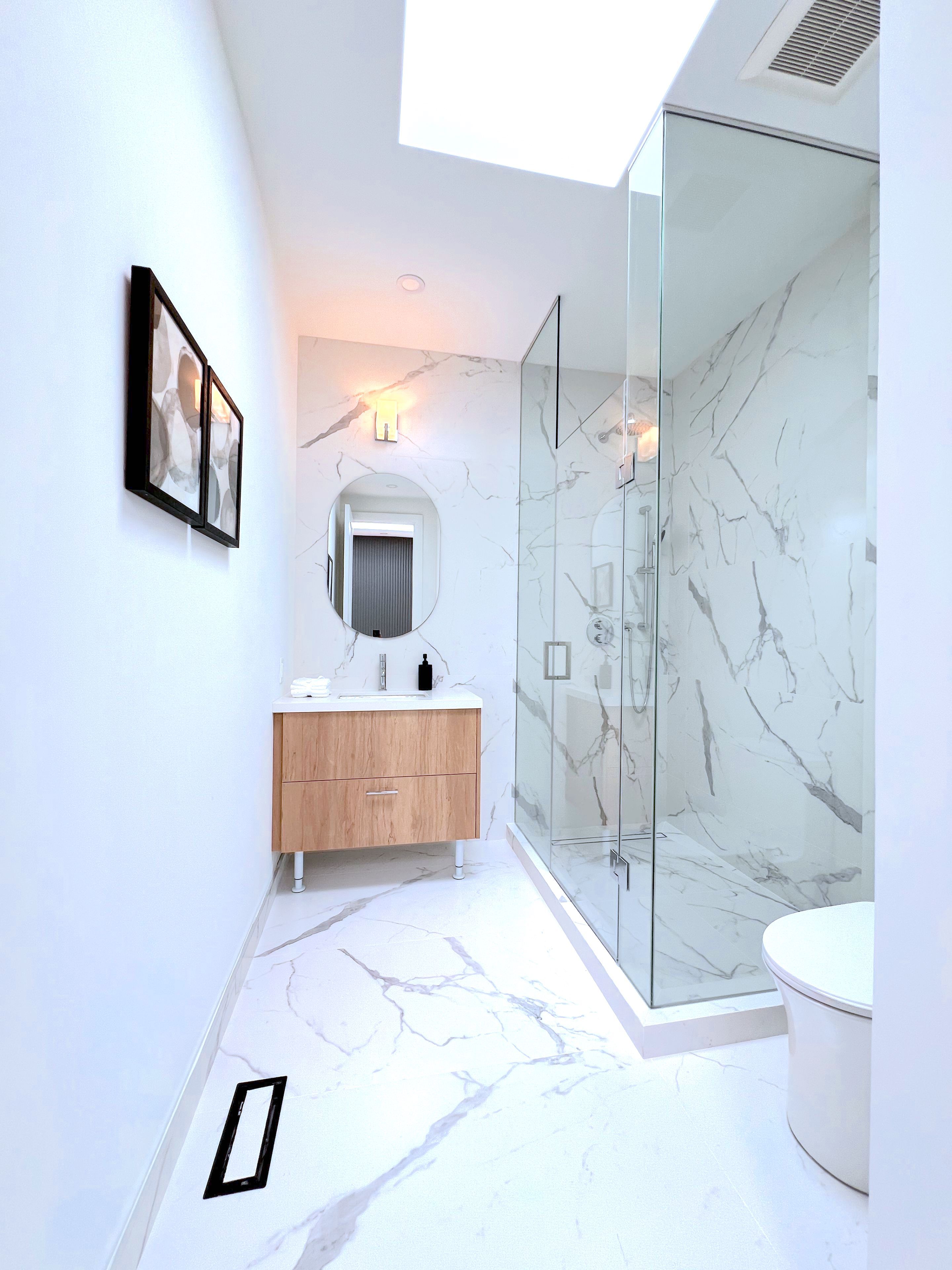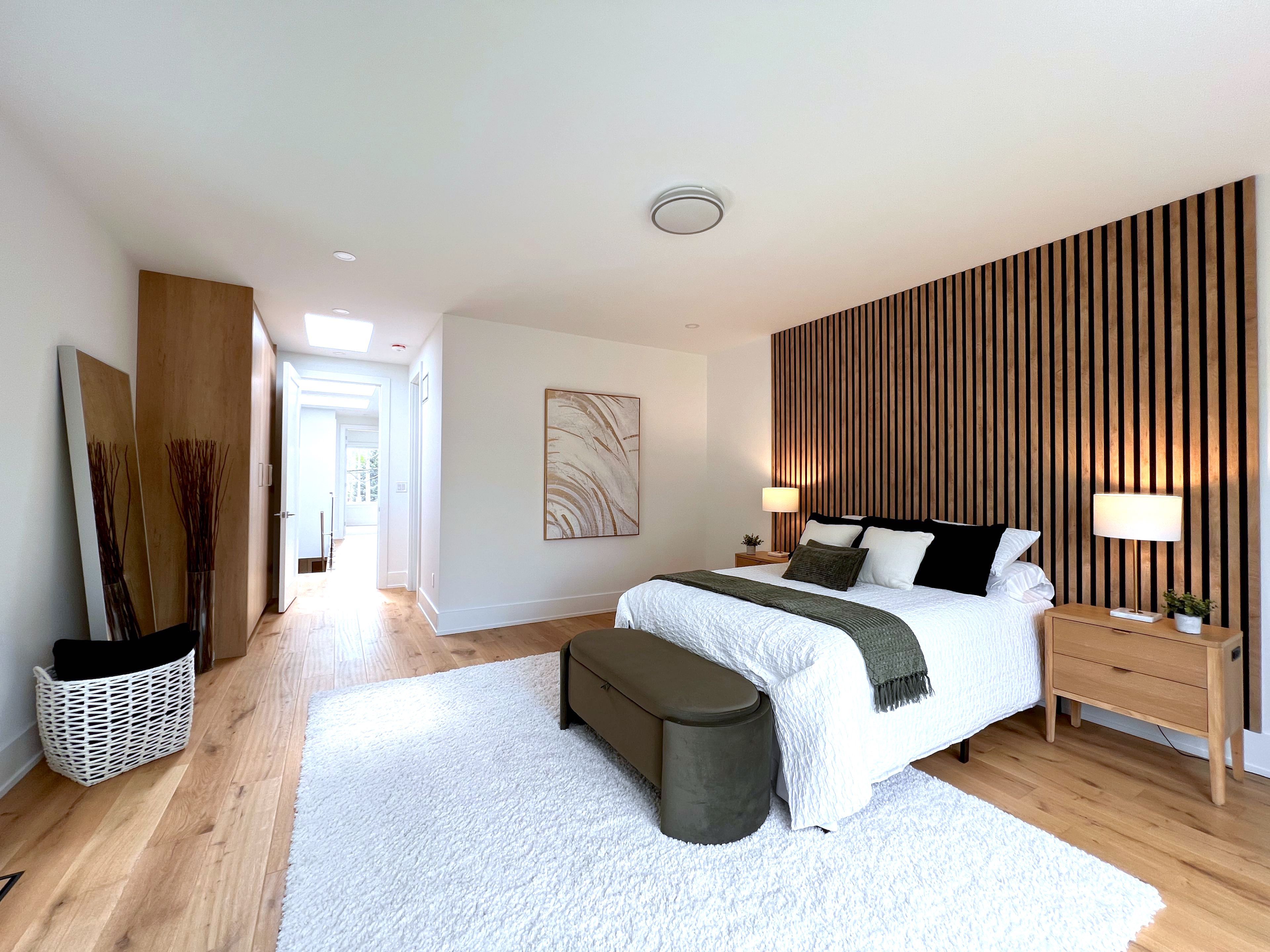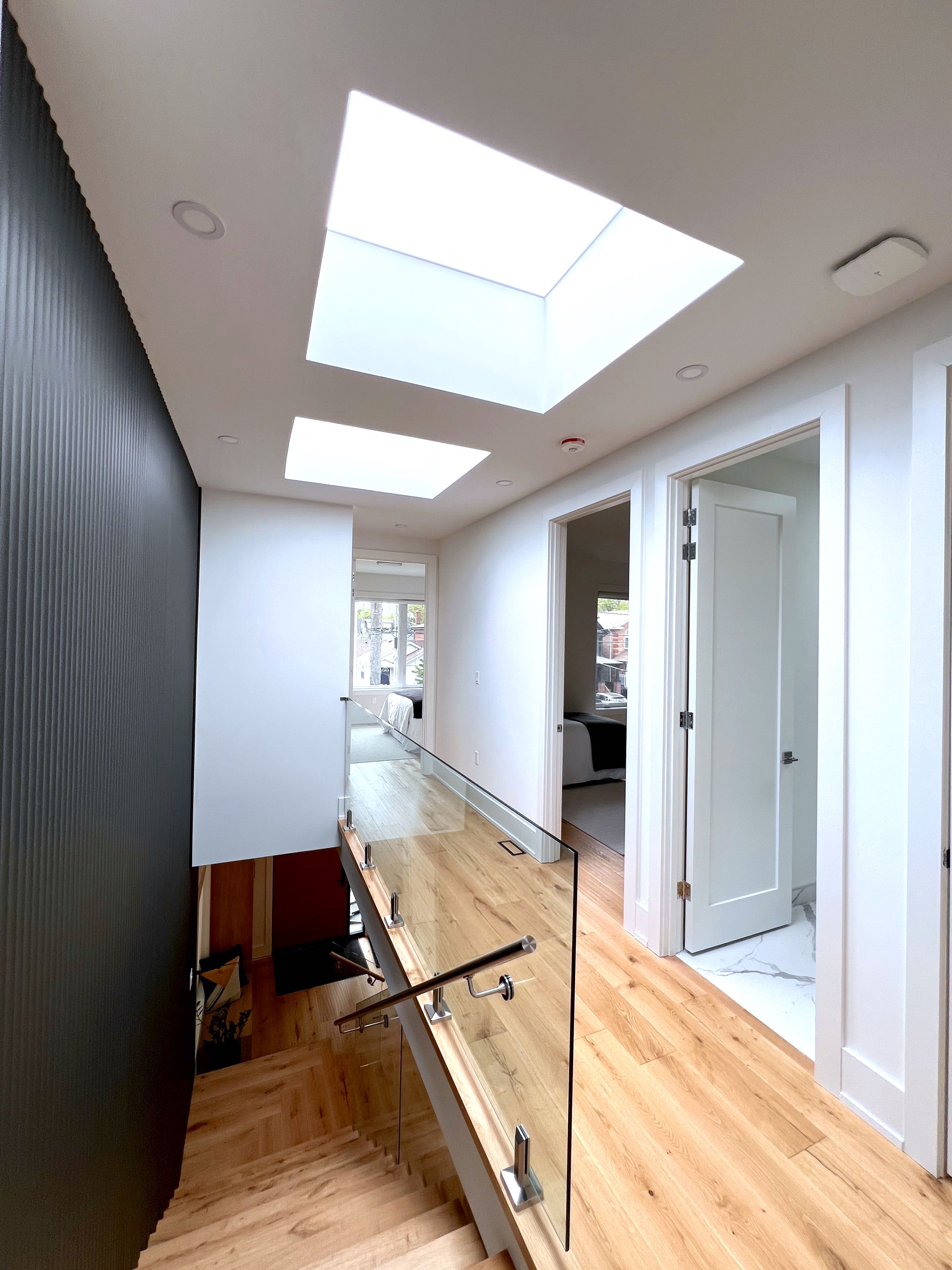 Welcome to this beautifully designed modern detached home with a legal basement suite, offering approx. 3,300 sq. Ft. Of luxurious living space (incl. Bsmt) in one of east york's desirable neighbourhoods! Set on a generous lot with private parking, this 3+1 bed, 4 bath home blends contemporary design with everyday functionality. The open-concept main floor showcases high ceilings, premium engineered hardwood floors, elegant pot lighting, and a roughed-in surround sound system. A sophisticated smart home setup with 3 cameras & video doorbell provides modern convenience and peace of mind. The dining area flows into a chef's kitchen featuring s/s appliances, 6-burner gas stovetop with pot filler, waterfall quartz island, custom countertops & sleek cabinetry - perfect for entertaining. The family room offers a gas fireplace with a stunning feature wall, large windows & walk-out to the backyard deck. The living room is enhanced by a beautifully designed staircase with striking custom wall paneling, creating a sophisticated focal point. The oak staircase with glass railing is accented by a floor-to-ceiling feature wall & two skylights above, filling the space with natural light. Upstairs, three additional skylights create an airy, sun-filled atmosphere. The serene primary suite features custom closets, acoustic wood paneling, skylight w/ roof access & a spa-inspired 5-pc ensuite with soaker tub & double vanity. A stylish 2nd bath & laundry area complete this level. The legal basement suite offers high ceilings, large windows, a modern kitchen w/ s/s appliances & breakfast bar, sep. Entrance, in-suite laundry & dedicated hydro meter - ideal for rental income or extended family. Outside features a private backyard w/ deck, bbq hookup & shed, plus potential for a future garden suite (city services in place). Near parks, schools, shops, ttc/go, dvp & downtown. A contemporary east york gem blending luxury, functionality & timeless design - ready to be yours!