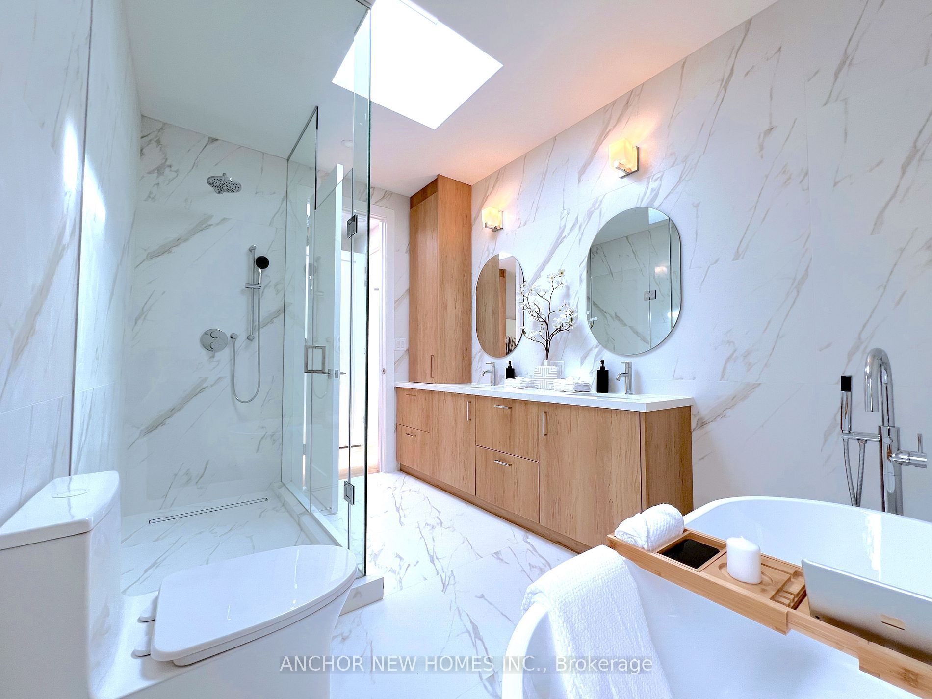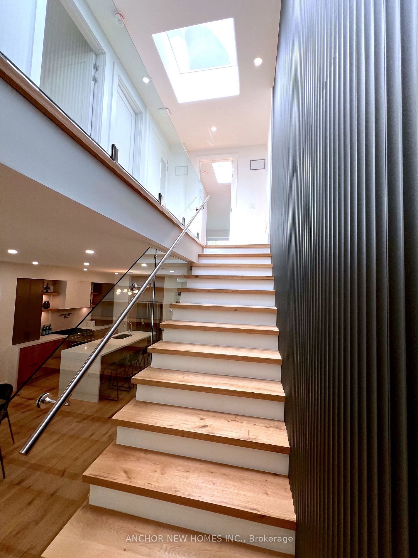 Welcome to this beautifully designed modern detached home with a legal basement suite, offering over. 3,200 sq. Ft. Of luxurious living space (incl. Bsmt) in one of east york's desirable neighbourhoods! Set on a generous lot with private parking, this 3+1 bed, 4 bath home blends contemporary design with everyday functionality. The open-concept main floor showcases wide-plank engineered hardwood floors, pot lighting throughout, and a roughed-in surround sound system. A sophisticated smart home setup with 3 cameras & video doorbell provides modern convenience and peace of mind. The dining area flows into a chef's kitchen featuring s/s appliances, 6-burner gas stovetop with pot filler, waterfall quartz island, custom countertops & sleek cabinetry - perfect for entertaining. The family room offers a gas fireplace feature wall, large windows & walk-out to the backyard deck. The living room is enhanced by a beautifully designed staircase with striking custom wall paneling, creating a sophisticated focal point. The oak staircase with glass railing is accented by a floor-to-ceiling feature wall & two skylights above, flooding the space with natural light. Upstairs, three additional skylights create an airy, sun-filled atmosphere. The serene primary suite features custom closets, acoustic wood paneling, skylight w/ roof access & a spa-inspired 5-pc ensuite with soaker tub & double vanity. A stylish 2nd bath & laundry area complete this level. The legal basement suite offers high ceilings, large windows, a modern kitchen w/ s/s appliances & breakfast bar, sep. Entrance, in-suite laundry & dedicated hydro meter - ideal for rental income or extended family. Outside features a private backyard w/ deck, bbq hookup & shed, plus potential for a future garden suite (city services in place). Near parks, schools, shops, ttc/go, dvp & downtown. A contemporary east york gem blending luxury, functionality & timeless design - ready to be yours!