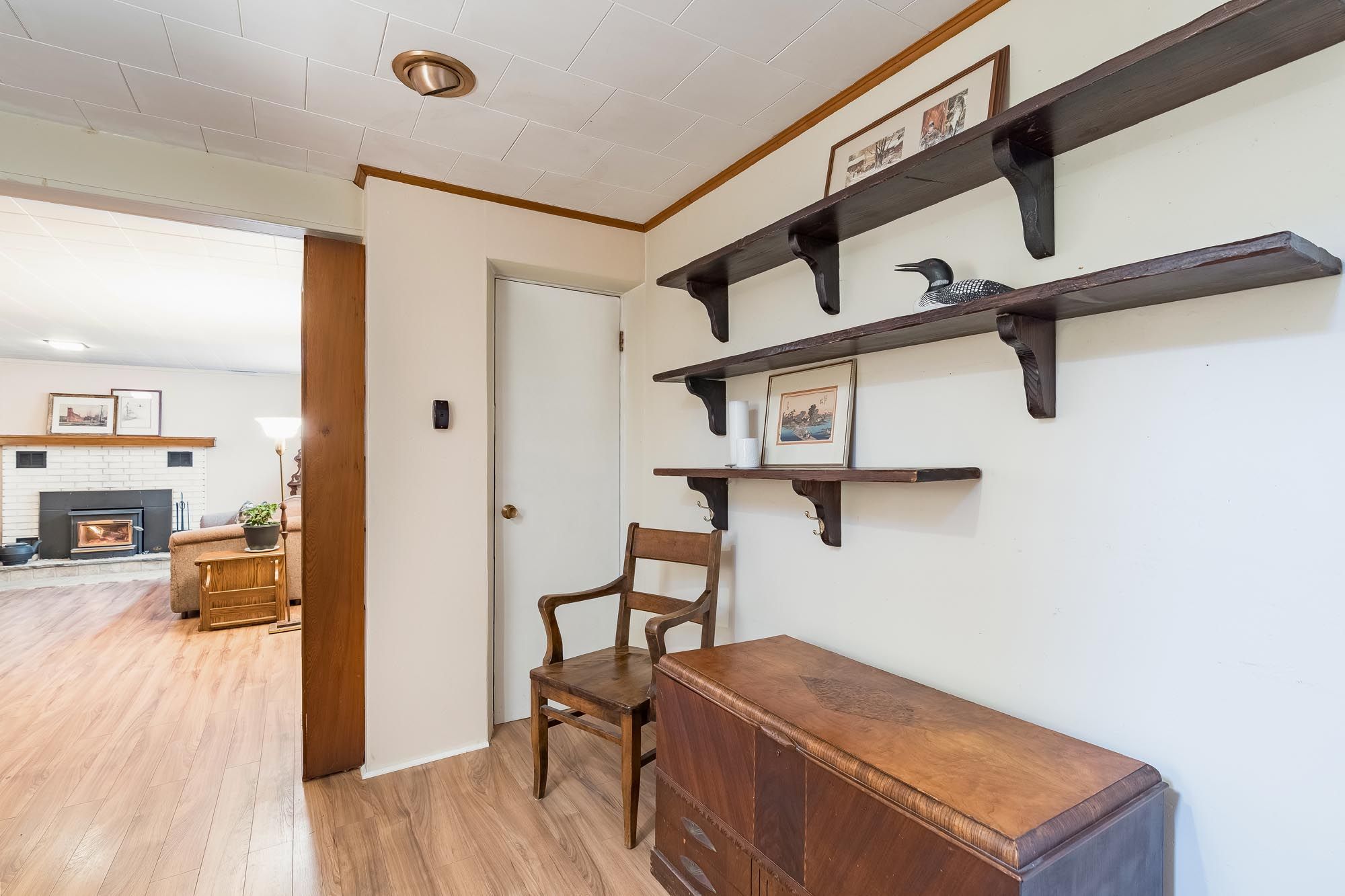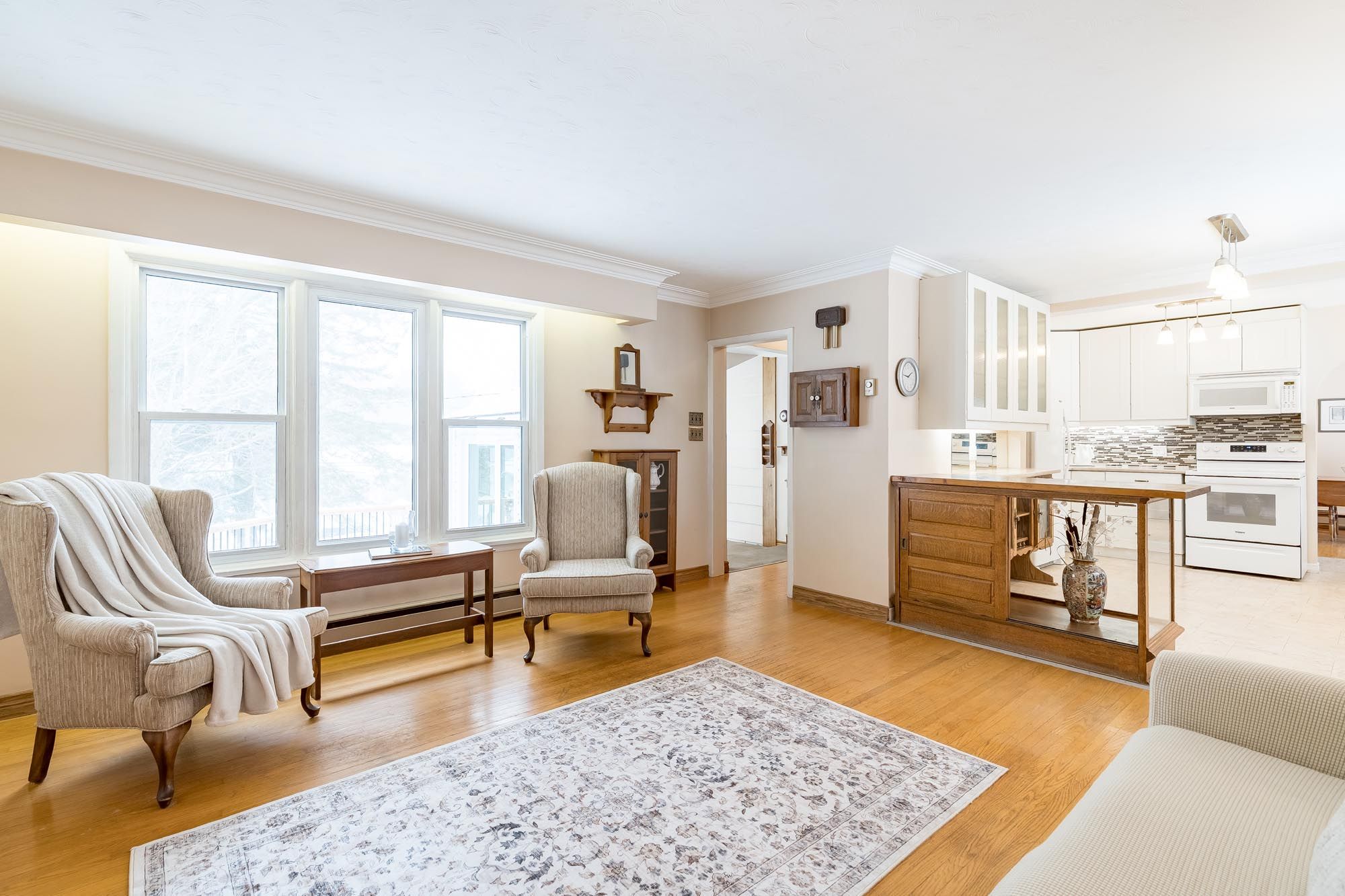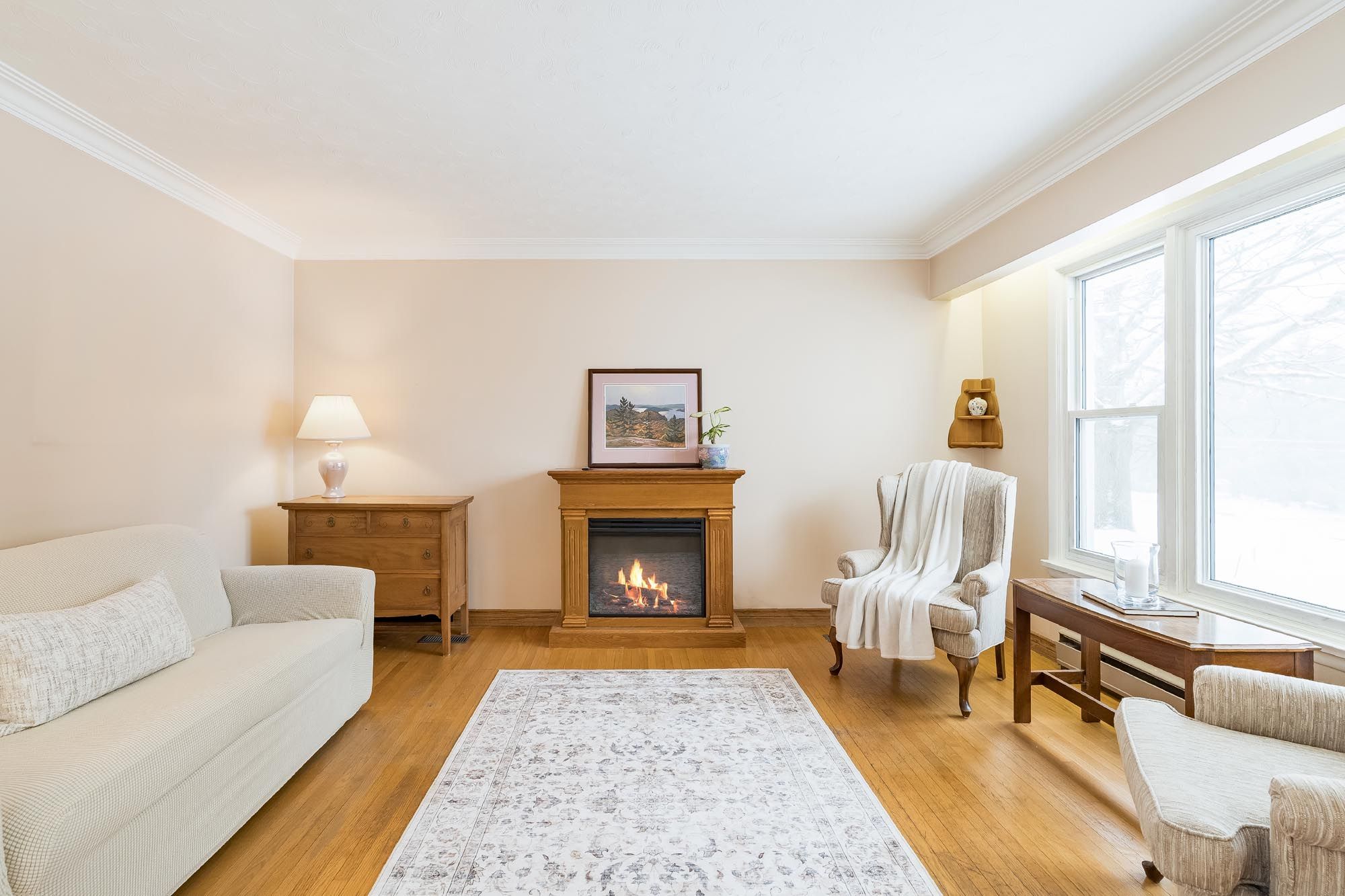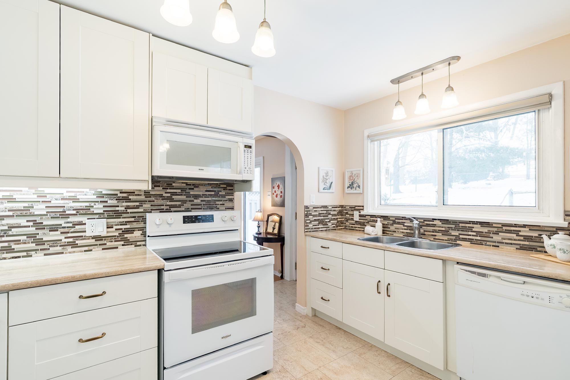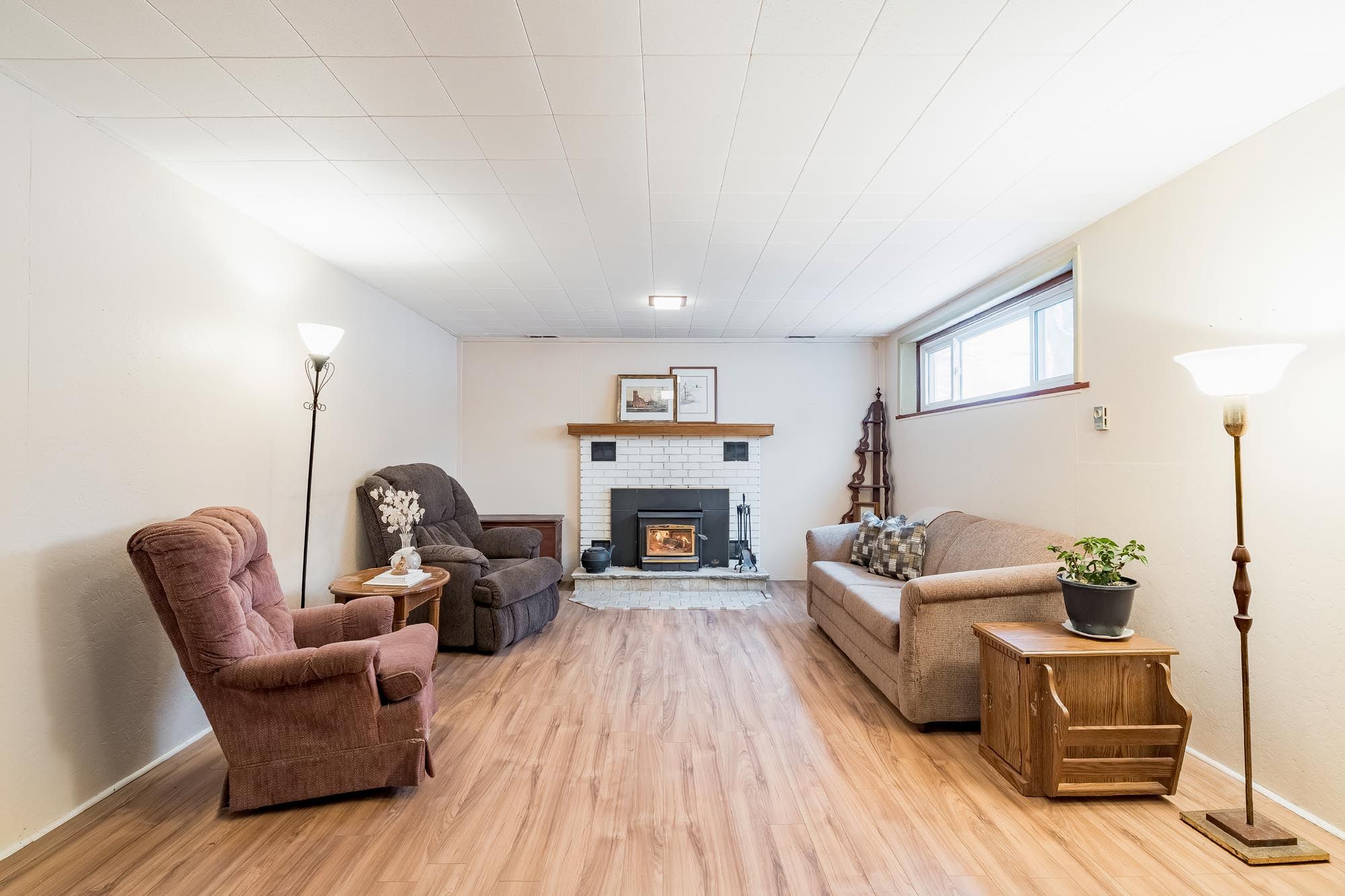 Top 5 reasons you will love this home: 1) expansive windows and a charming sunroom-style foyer bathe the home in natural light, offering tranquil views of the surrounding gardens from the moment you step inside 2) the home includes six appliances, providing everyday convenience and allowing you to settle in with ease from day one, alongside a recent home inspection and wett certificate for added peace of mind 3) the kitchen walks out to a generous, fully fenced backyard framed by mature trees, creating a private outdoor retreat perfect for entertaining, children, or pets 4) two distinct living areas enhance the home's versatility, including a formal living room accented with crown moulding and a high, dry basement featuring an airtight wood-burning stove for added warmth and character 5) descend to the versatile basement showcasing an expansive recreation room offering endless possibilities as a hobby space, home office, gym, or guest area, easily adapting to suit your lifestyle. 1,169 above grade sq. Ft. Plus a finished basement.