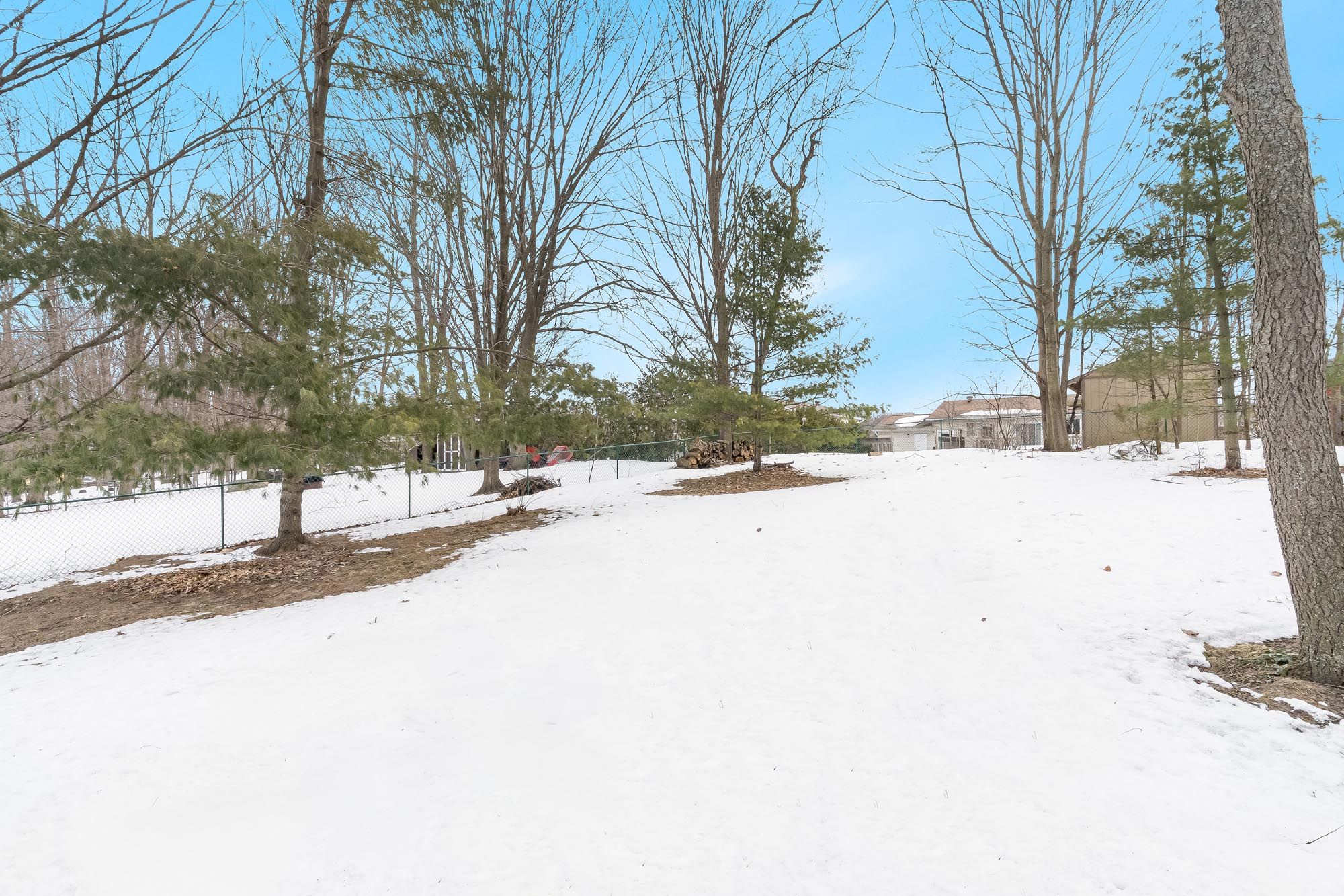 • Generous, fully fenced backyard surrounded by trees, perfect for privacy and outdoor fun.