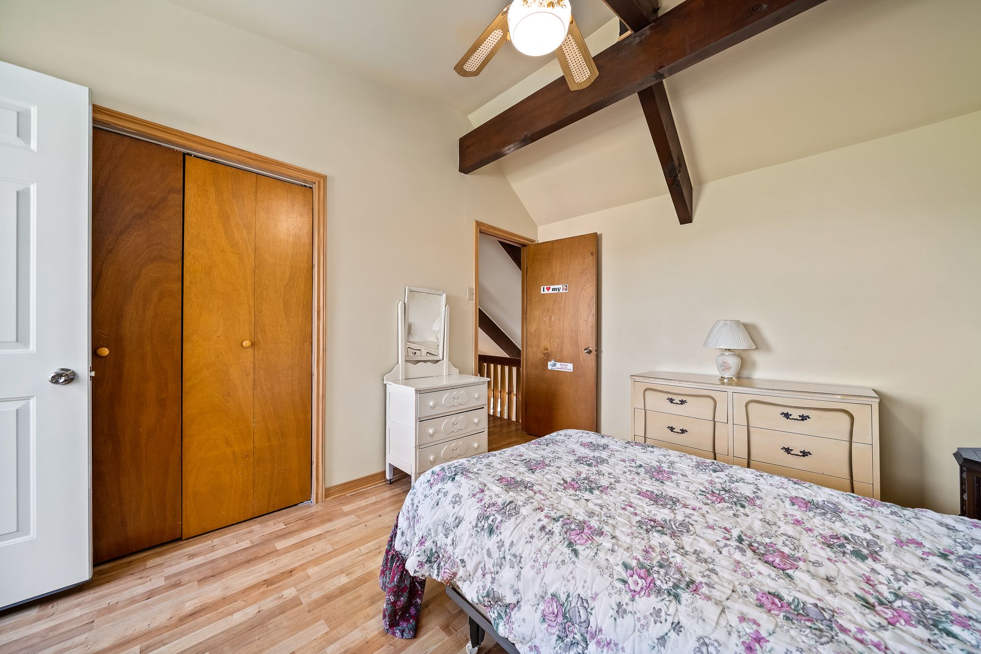• Second floor offers primary bedroom and large bedroom with balcony access.