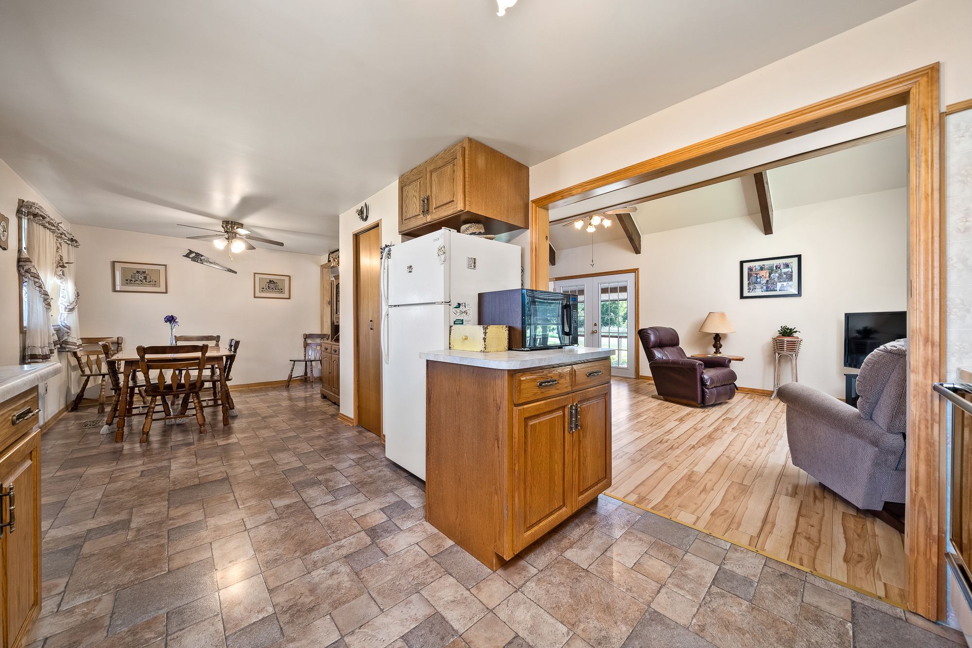 • Spacious main floor features a kitchen, dining area, and impressive living room.