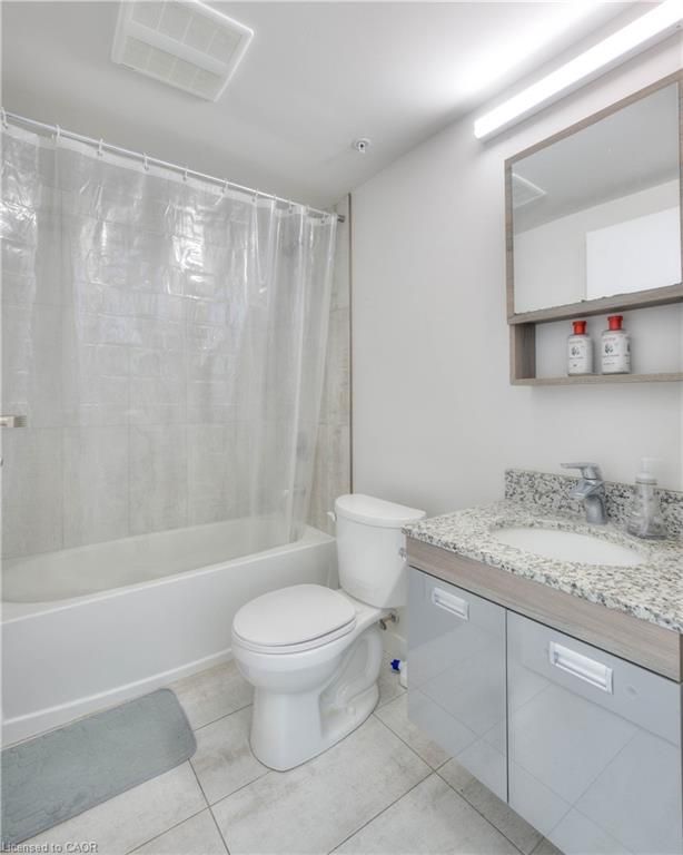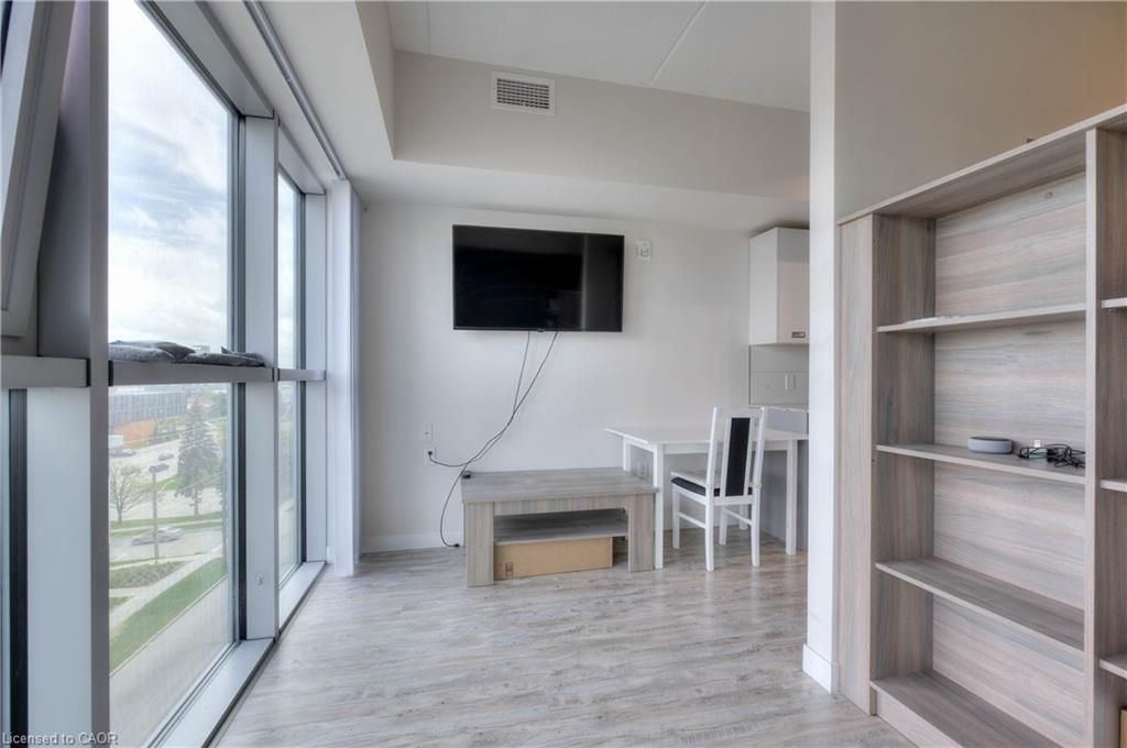 Welcome to urban sophistication at its finest! This stunning 1 bedroom, 1 bathroom condo nestled in the heart of waterloo is walking distance to university of waterloo and wilfred laurier university. The unit offers the epitome of modern living combined with convenience and comfort. As you step inside, you'll be greeted with floor-to-ceiling windows, which flood the space with natural light. The layout seamlessly integrates the living, dining, and kitchen areas, perfect for both relaxing evenings and entertaining guests. One of the highlights of this condo is the in-suite laundry, ensuring convenience and efficiency in your daily routine. The unit comes fully equipped with granite counter tops, stainless steel appliances, as well as existing furniture, including a full bed frame with mattress, a sofa, a coffee table, a built-in study table with shelves, an office chair, a dining table with four chairs, and a tv with tv console. Move-in ready, this condo offers a hassle-free transition. Moreover, residents of this building are granted access to an array of amenities designed to enhance their lifestyle. Keep up with your fitness goals in the exercise room, host memorable gatherings in the party room, or unwind and soak in panoramic views from the rooftop deck/garden and visitor parking for your guests. This condo presents an exceptional opportunity for investors as well as end-users. Book a showing today and experience everything that has to offer. - property has been virtually staged.