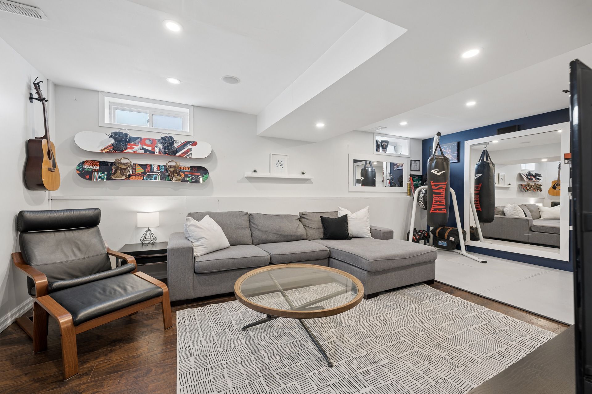 • Finished basement with high ceilings adds extra living space.