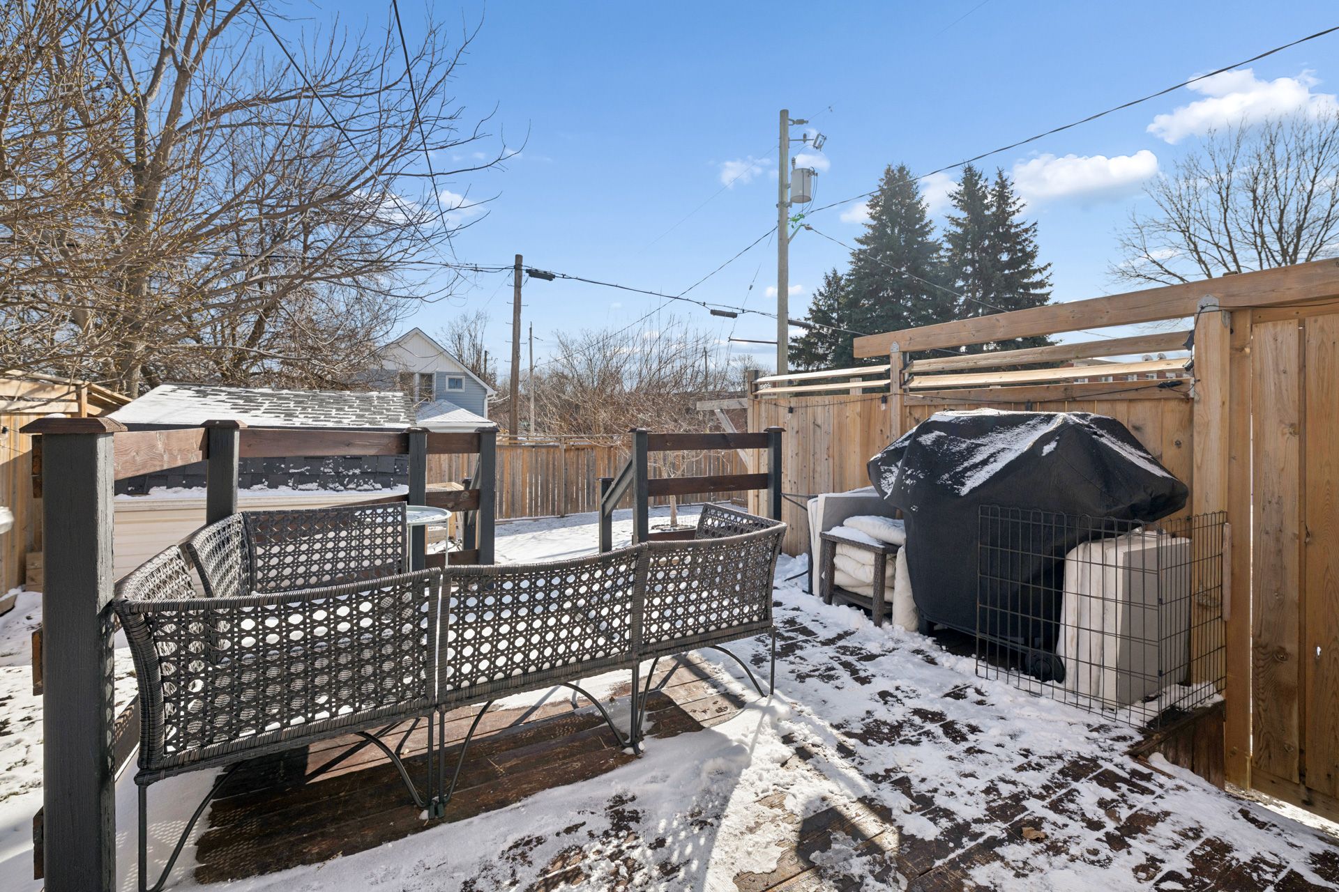 • Large deck overlooks a private, fully fenced yard.
