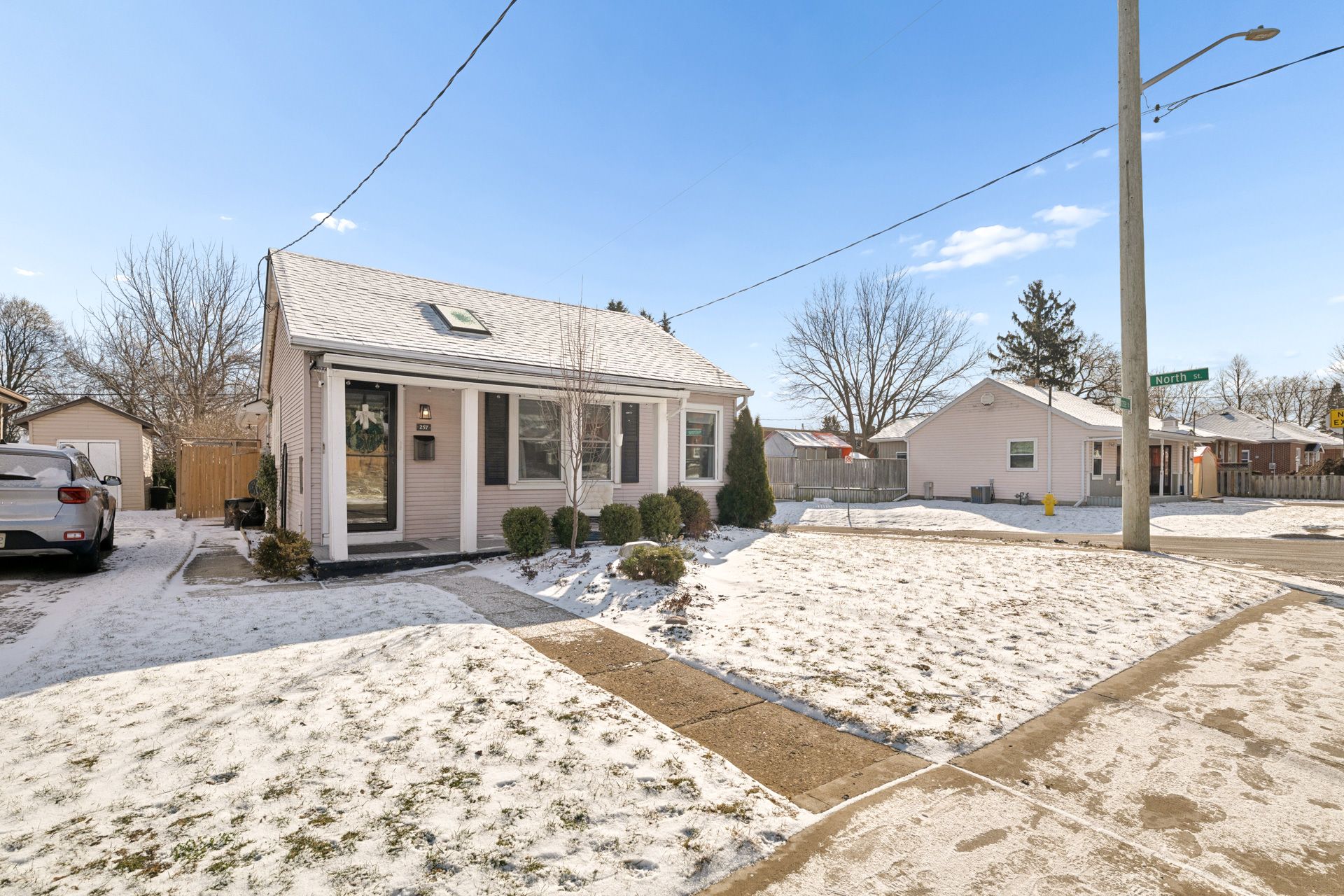 Imagine your morning coffee on this covered front porch. Meticulously maintained and beautifully updated 2-bedroom detached home in desirable preston north, just minutes to hwy 401 and walking distance to riverside park and the grand river. This move-in ready home features a bright layout , sky lights and large windows. Upgraded kitchen and bathroom, along with thoughtful updates and quality finishes throughout. A rare finished basement find with high ceilings and a washroom adds that valuable living space for your future game day headquarters. Enjoy the large deck overlooking a private oversized fully fenced yard with shed, or relax on the charming covered front porch. Major systems including plumbing, electrical, heating, a/c, roof, windows, doors, and appliances have been well maintained. A perfect opportunity for first-time buyers or down-sizers seeking a turn-key home in a fantastic location.