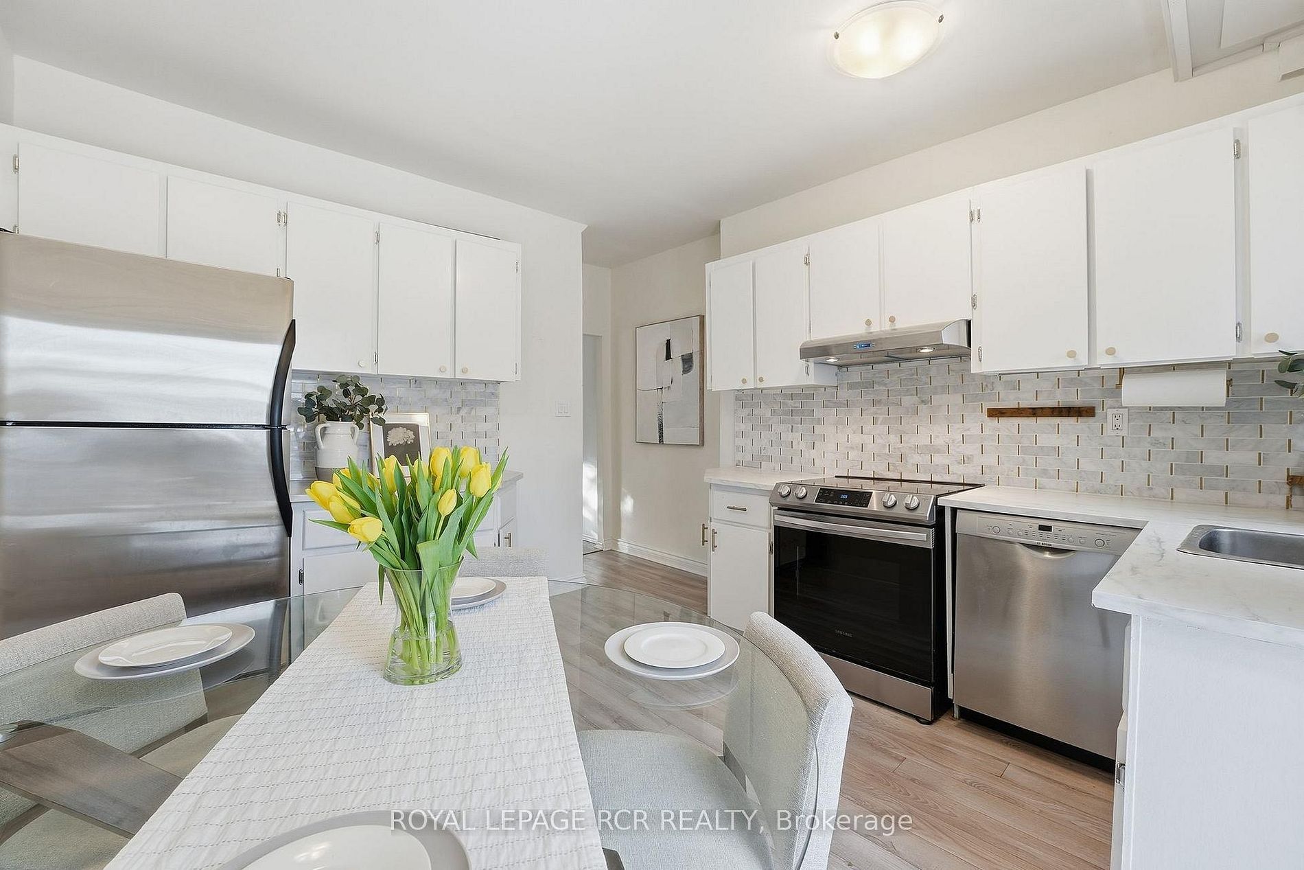 • Updated eat-in kitchen featuring stainless steel appliances.