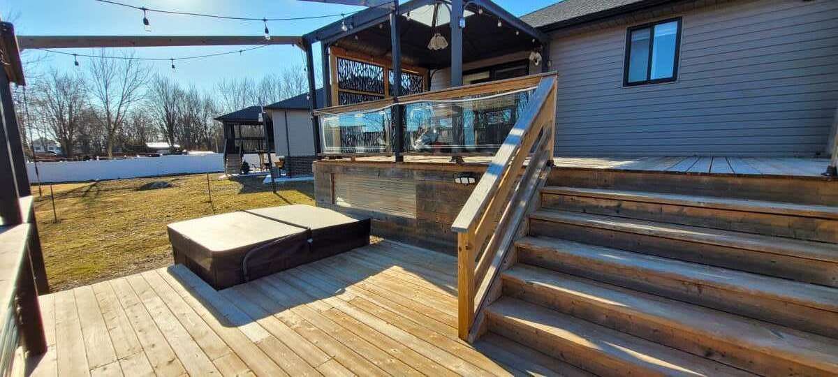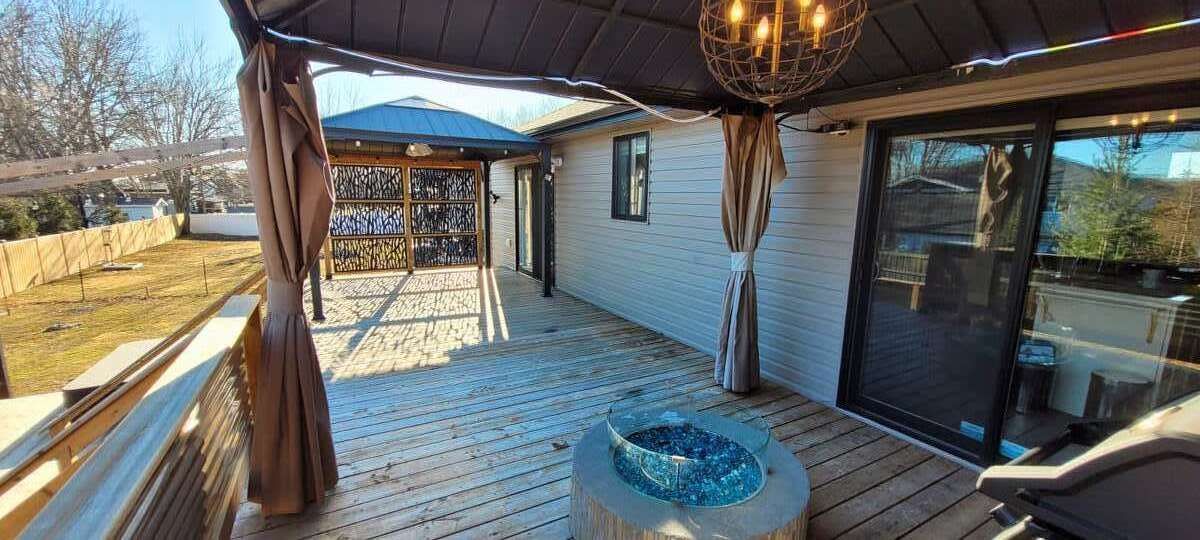 *** visit the realtor website for further information about this listing *** a stunning home in a peaceful cul-de-sac - the best of essex living. You can own this truly spectacular property located in the heart of essex, perfectly tucked at the end of a quiet cul-de-sac on an eighth of an acre. It offers all the conveniences of city living while giving you the peaceful feeling of being in the county - the best of both worlds. The professionally landscaped front yard features maintenance-free astroturf designed to resemble an executive mini-golf course, ensuring a beautiful look year-round with zero upkeep. Inside, you'll find a spacious open-concept layout filled with natural light, showcasing a stunning kitchen with a large island, garburator, and stainless steel appliances. Basement is partially finished, offering excellent versatility and room to grow. The living space flows seamlessly to a two-tier deck complete with gazebos and private hot tub access directly from the primary bedroom. This home is ready and waiting for you to make it your own.
