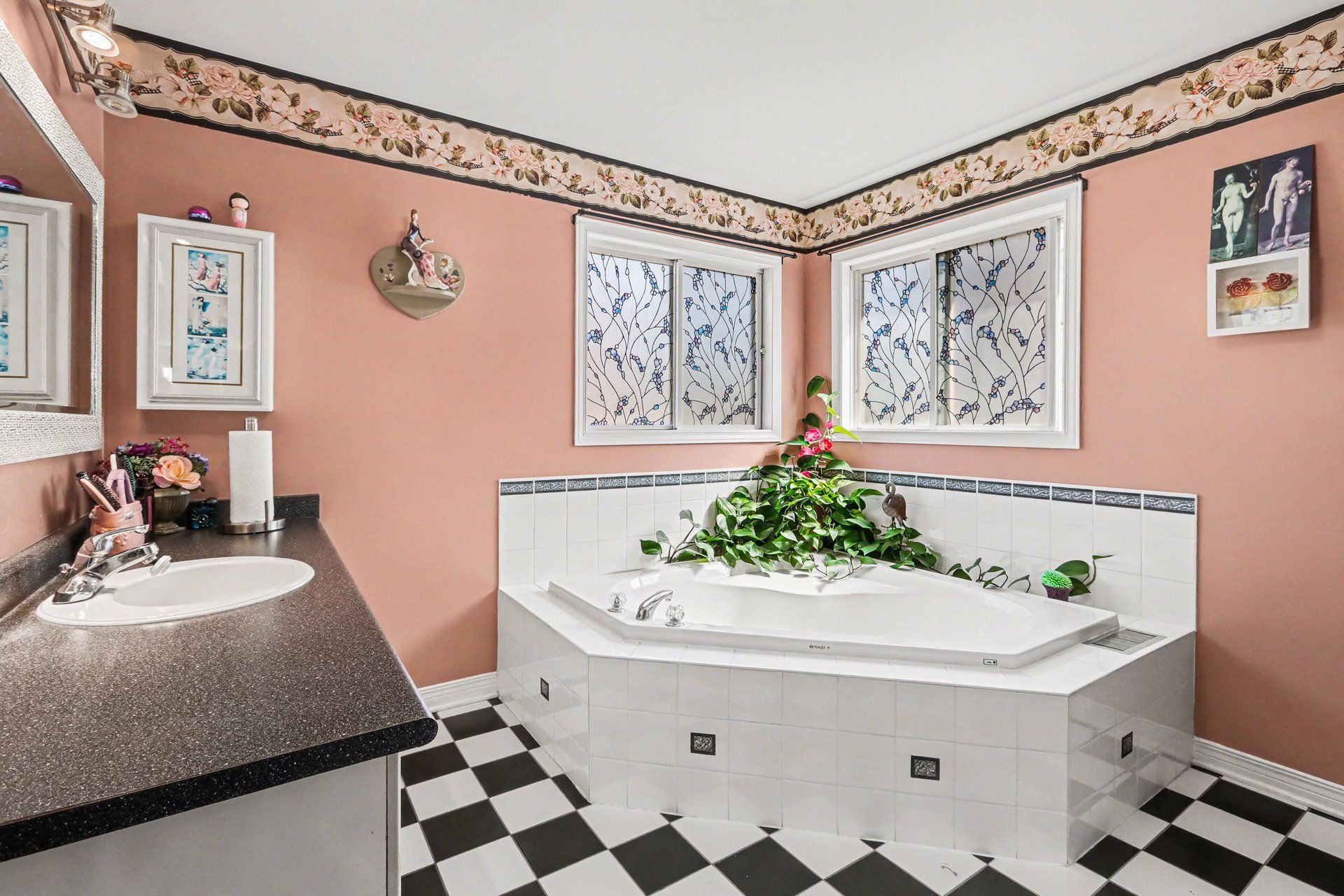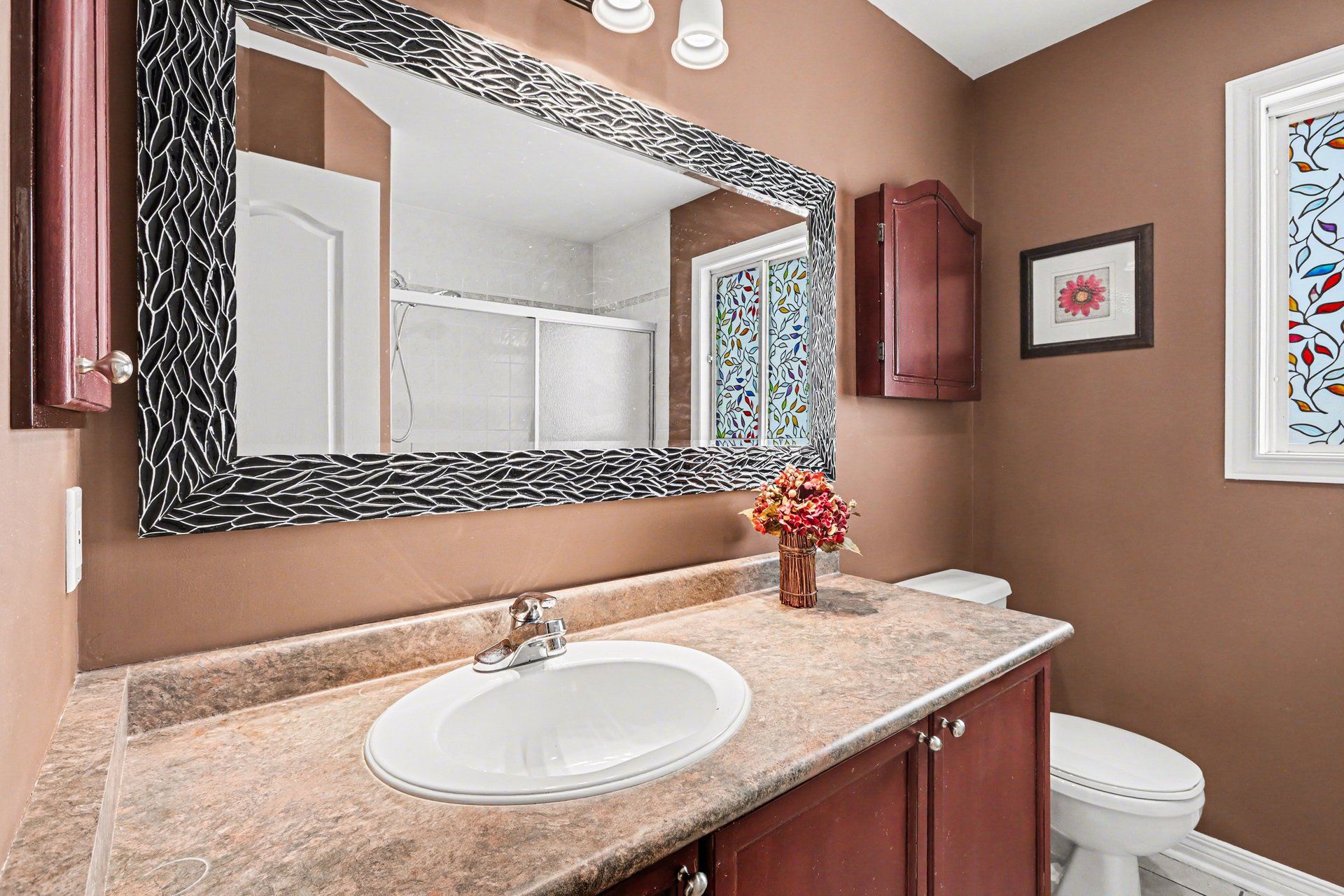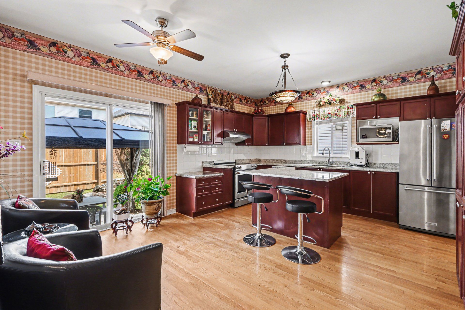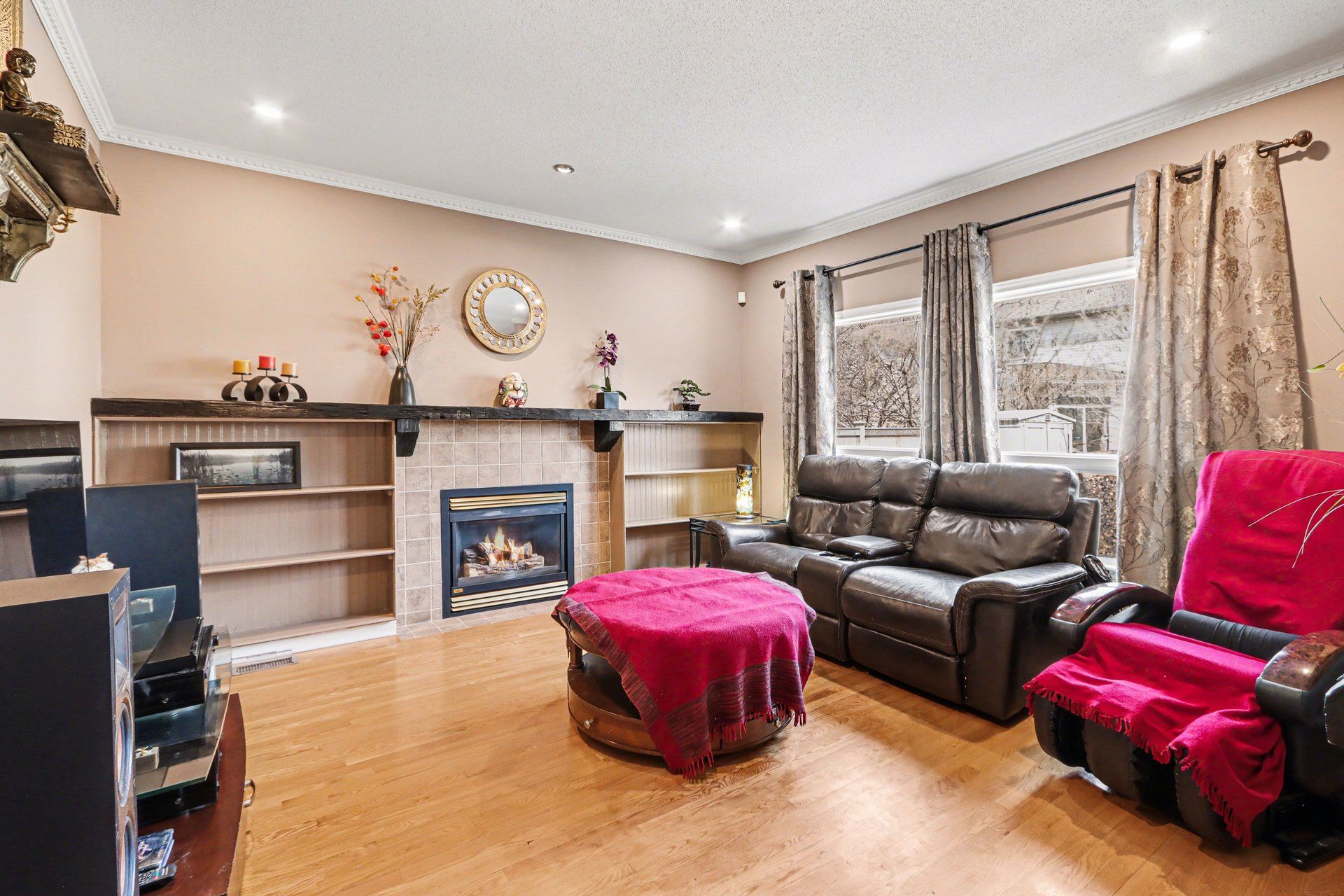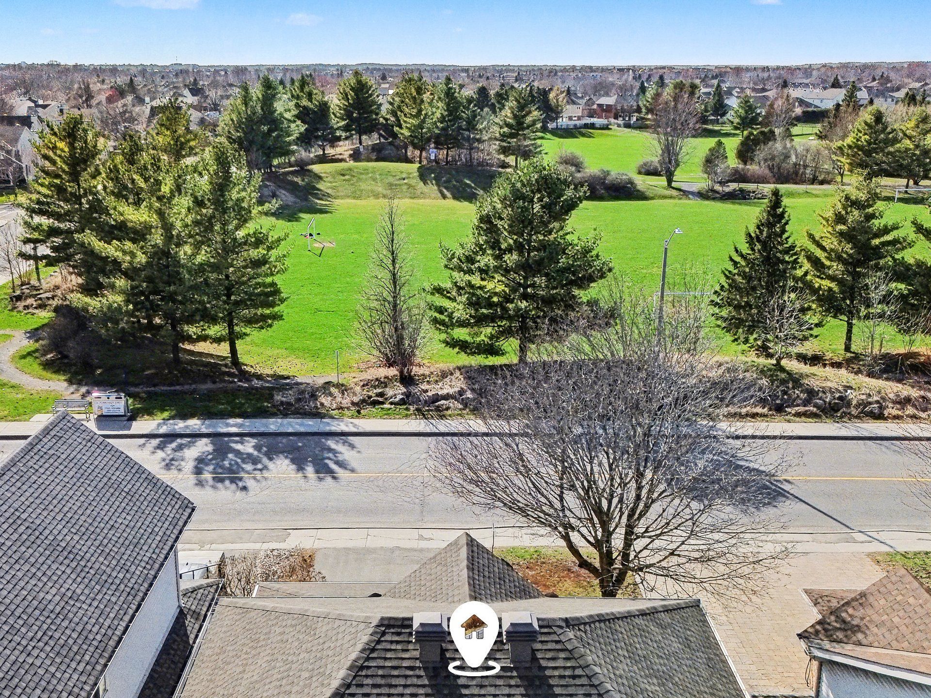 Welcome home! This former tartan model home enjoys a prime, street-facing location directly across from the park and splash pad. Offering 4 bedrooms and 3 bathrooms, this beautifully maintained property features hardwood and tile flooring throughout the main level, second floor, and main staircase. The spacious layout includes a bright living room, a separate dining room, and a versatile main-floor den. The kitchen is filled with natural light and boasts granite countertops, a breakfast bar, and a comfortable eating area. The inviting family room is highlighted by a gas fireplace with a custom wood mantle. A convenient side-door entrance adds flexibility and function. Upstairs, the generous primary bedroom includes a 4-piece ensuite with a separate shower and a relaxing soaker tub. An unfinished basement offers the perfect footprint for a future home theater, personal gym, or guest retreat. Ideally situated across from adrienne clarkson elementary school and stonecrest park, this home also features important updates, including the roof, furnace, and kitchen countertops.