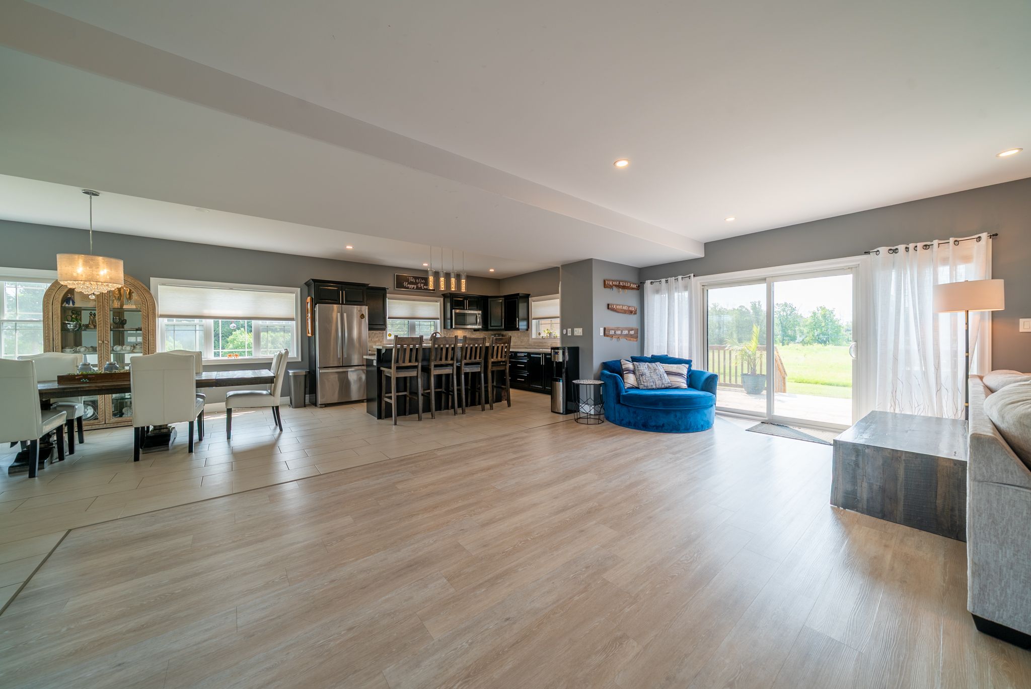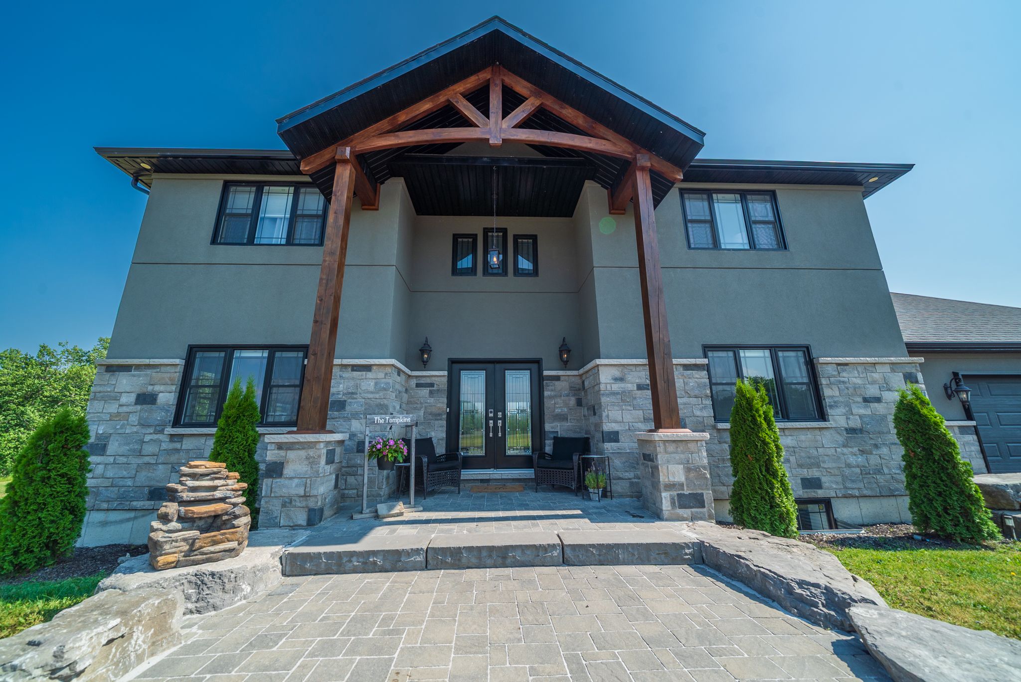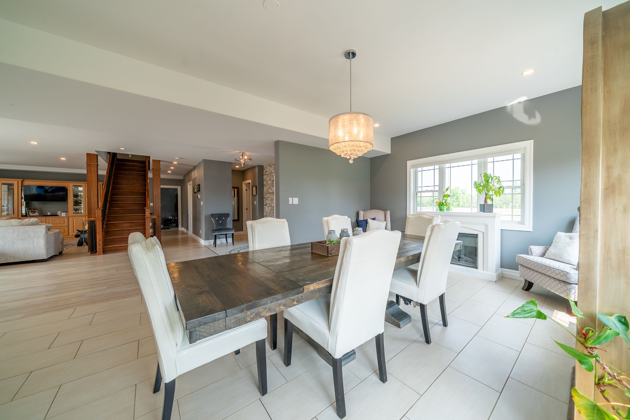 Welcome to your dream home, a breathtaking custom-built two-story residence that effortlessly combines luxury and comfort. As you approach the property, you'll be greeted by a newly paved circular driveway, and an attached two-car garage that adds convenience and ample space for parking. The grand entrance is truly a sight to behold, featuring large, elegant wood beams that exude a timeless charm and glandular appeal. Step inside and immerse yourself in a sun-drenched space where an open-concept design seamlessly unites style and functionality. The expansive kitchen is a chef's delight, complete with a large center island, generous pantry, and a dining area that invites lively gatherings and memorable moments. The spacious living room, bathed in natural light, offers the tranquility of a serene retreat. Open the patio doors to a welcoming deck, perfect for an afternoon unwind, and enjoy your private above-ground pool with picturesque views of the peaceful pond beyond. Completing the main level is a chic 2-piece bathroom, a versatile den or office space for those who work from home, and a convenient mudroom with direct access to the garage. Ascend the stunning wood staircase to the second floor, where every detail has been crafted with care. Discover three beautifully appointed bedrooms and a well-equipped laundry room with a sink for added ease. The primary bedroom is a true oasis, featuring a walk-in closet and a luxurious 4-piece ensuite that promises relaxation with its indulgent soaker tub and sleek glass shower. The lower level offers even more, leading you to a vibrant finished recreation room, a perfect canvas for family entertainment or personal retreat. This level also includes a fifth bedroom, a 4-piece bathroom, and a generous utility room with abundant storage. This spectacular home is your sanctuary, where every corner is designed to inspire and comfort. Embrace the elegance, the space, and the breathtaking viewsthis is a property not to be missed!