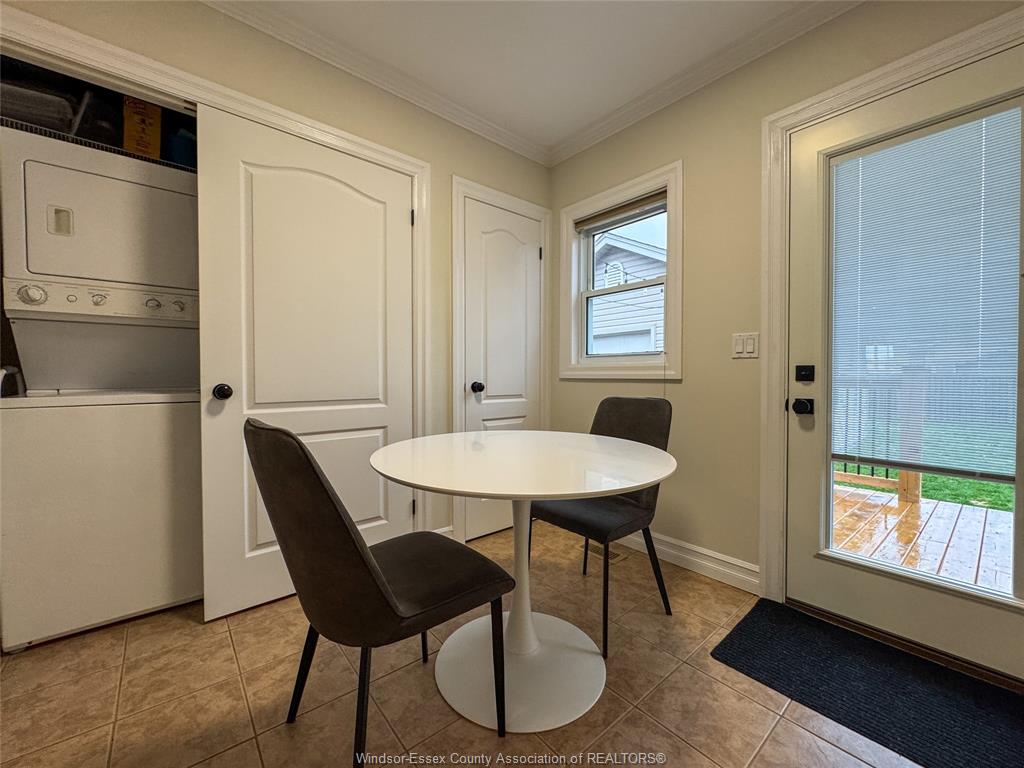 • Functional layout includes a laundry/mudroom with stackable washer/dryer.