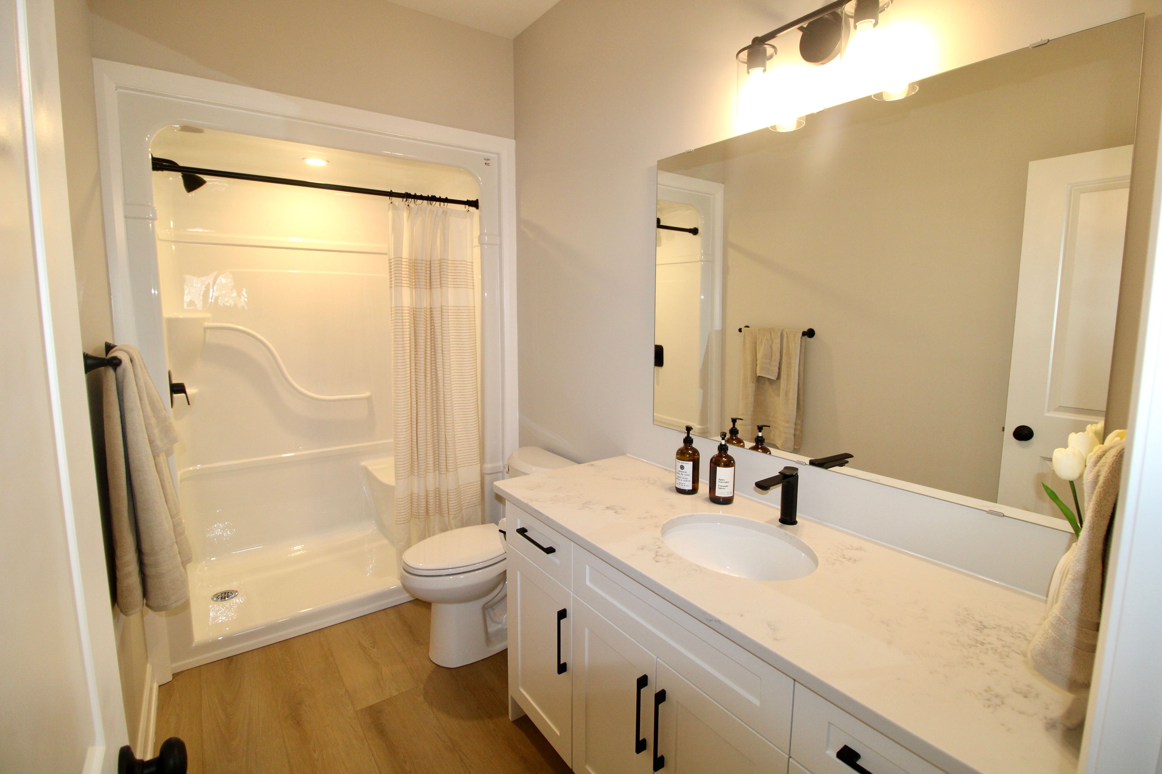 • Spacious primary bedroom with ensuite and quartz countertops for convenience.