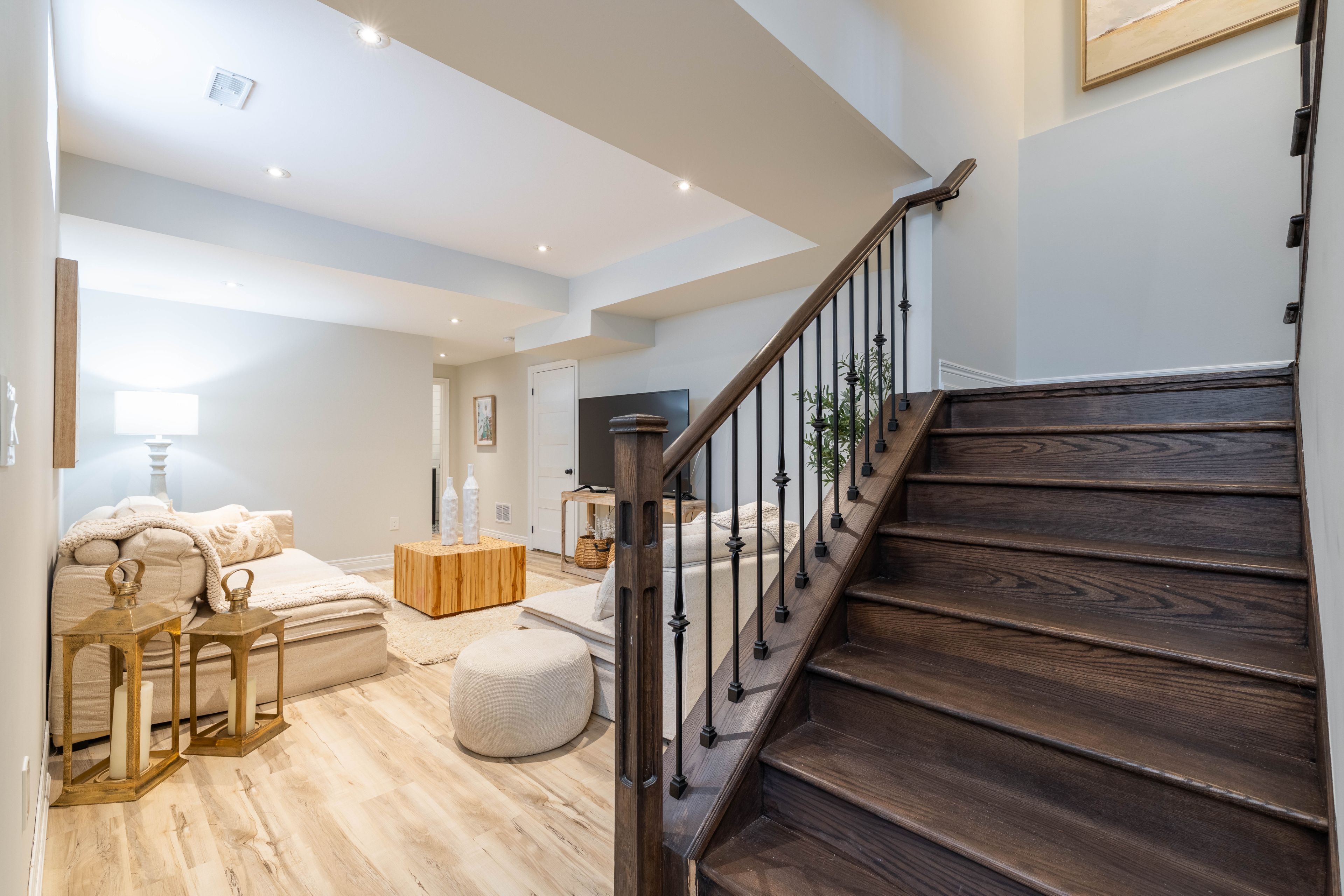 As featured in the newmarket 2025 holiday home tour, this exquisite custom built designer home is situated in the heart of newmarket. Constructed in 2017, this impeccable home showcases superior craftsmanship with tens of thousands spent on upgrades and premium finishes throughout. Spanning approximately 2,033 square feet above grade plus a fully-finished lower level, this property offers sophisticated living spaces defined by soaring 9 foot ceilings on the main lower floor. The main level is flooded with natural light from an abundance of large windows, highlighting the stunning engineered hardwood flooring that flows throughout. The gourmet kitchen is a chef's dream, equipped with quartz countertops, an island with 110v outlet, stainless steel appliances and convenient walk-out to the yard. Adjoining the kitchen is the inviting great room with a cozy gas fireplace, perfect for family gatherings. The formal dining room is a showstopper, featuring a magnificent coffered ceiling and elegant wall panelling. Ascend to the second floor to find a convenient laundry room with vaulted ceilings, quartz counters, and electrolux appliances. The primary retreat features a stylish shiplap accent wall, walk-in closet, and luxurious 5-piece ensuite,. Two additional bedrooms share a well-appointed 5-piece jack and jill bathroom. The professionally finished basement expands the living space with durable vinyl flooring, spacious recreation room, 3-piece bathroom, and fourth bedroom perfect for guests. Outside, enjoy $45,000 in landscaping creating a backyard oasis, including patio, fence, and hot tub. This home is perfectly positioned for an active lifestyle in an amazing location. Just steps away, you can explore the natural beauty of fairy lake and its scenic walking trails. The area is also excitedly awaiting the upcoming mulock park, destined to be a community hub. With historic main street just a stroll away, you have the best of nature and urban amenities at your doorstep.