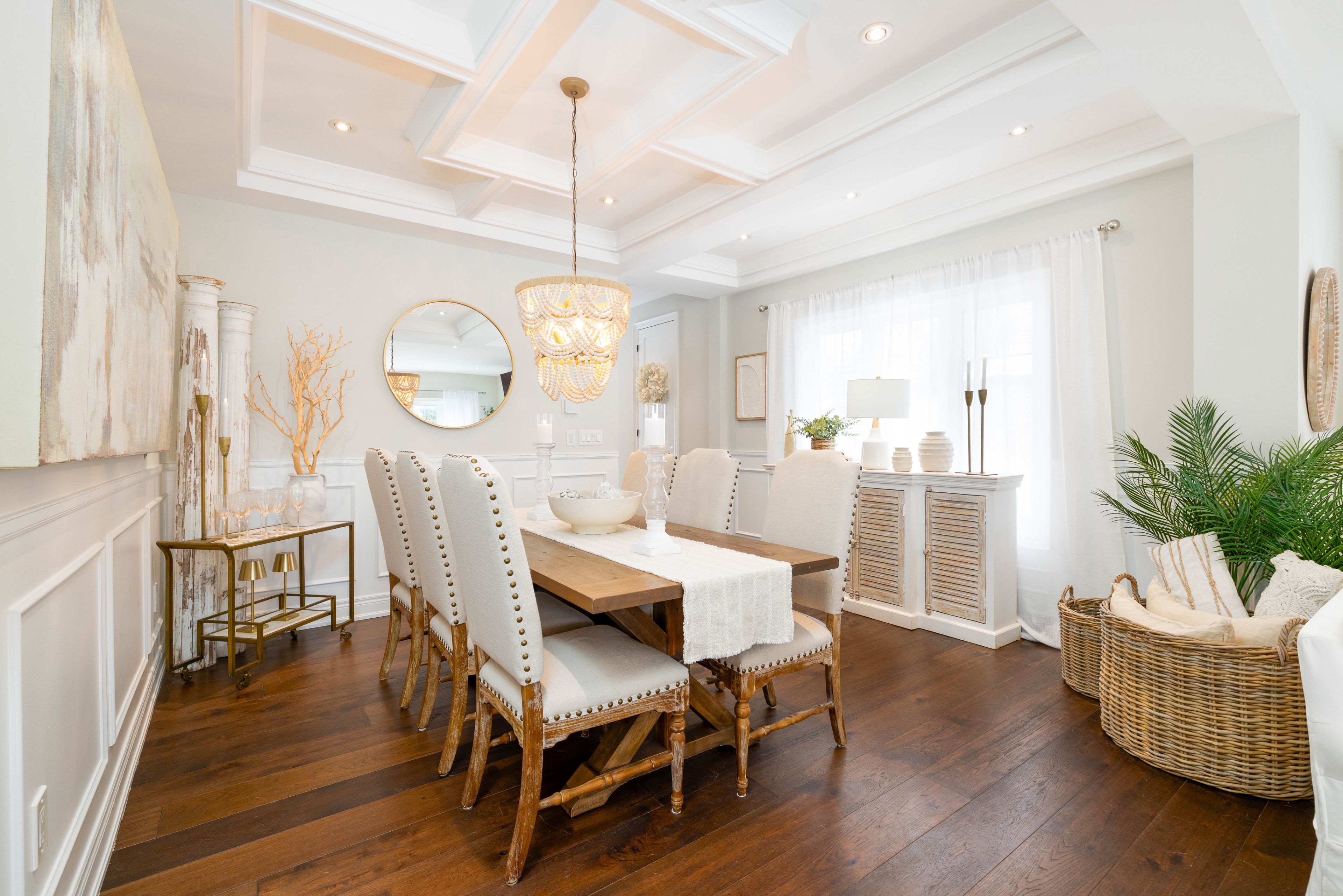As featured in the newmarket 2025 holiday home tour, this exquisite custom built designer home is situated in the heart of newmarket. Constructed in 2017, this impeccable home showcases superior craftsmanship with tens of thousands spent on upgrades and premium finishes throughout. Spanning approximately 2,033 square feet above grade plus a fully-finished lower level, this property offers sophisticated living spaces defined by soaring 9 foot ceilings on the main lower floor. The main level is flooded with natural light from an abundance of large windows, highlighting the stunning engineered hardwood flooring that flows throughout. The gourmet kitchen is a chef's dream, equipped with quartz countertops, an island with 110v outlet, stainless steel appliances and convenient walk-out to the yard. Adjoining the kitchen is the inviting great room with a cozy gas fireplace, perfect for family gatherings. The formal dining room is a showstopper, featuring a magnificent coffered ceiling and elegant wall panelling. Ascend to the second floor to find a convenient laundry room with vaulted ceilings, quartz counters, and electrolux appliances. The primary retreat features a stylish shiplap accent wall, walk-in closet, and luxurious 5-piece ensuite,. Two additional bedrooms share a well-appointed 5-piece jack and jill bathroom. The professionally finished basement expands the living space with durable vinyl flooring, spacious recreation room, 3-piece bathroom, and fourth bedroom perfect for guests. Outside, enjoy $45,000 in landscaping creating a backyard oasis, including patio, fence, and hot tub. This home is perfectly positioned for an active lifestyle in an amazing location. Just steps away, you can explore the natural beauty of fairy lake and its scenic walking trails. The area is also excitedly awaiting the upcoming mulock park, destined to be a community hub. With historic main street just a stroll away, you have the best of nature and urban amenities at your doorstep.