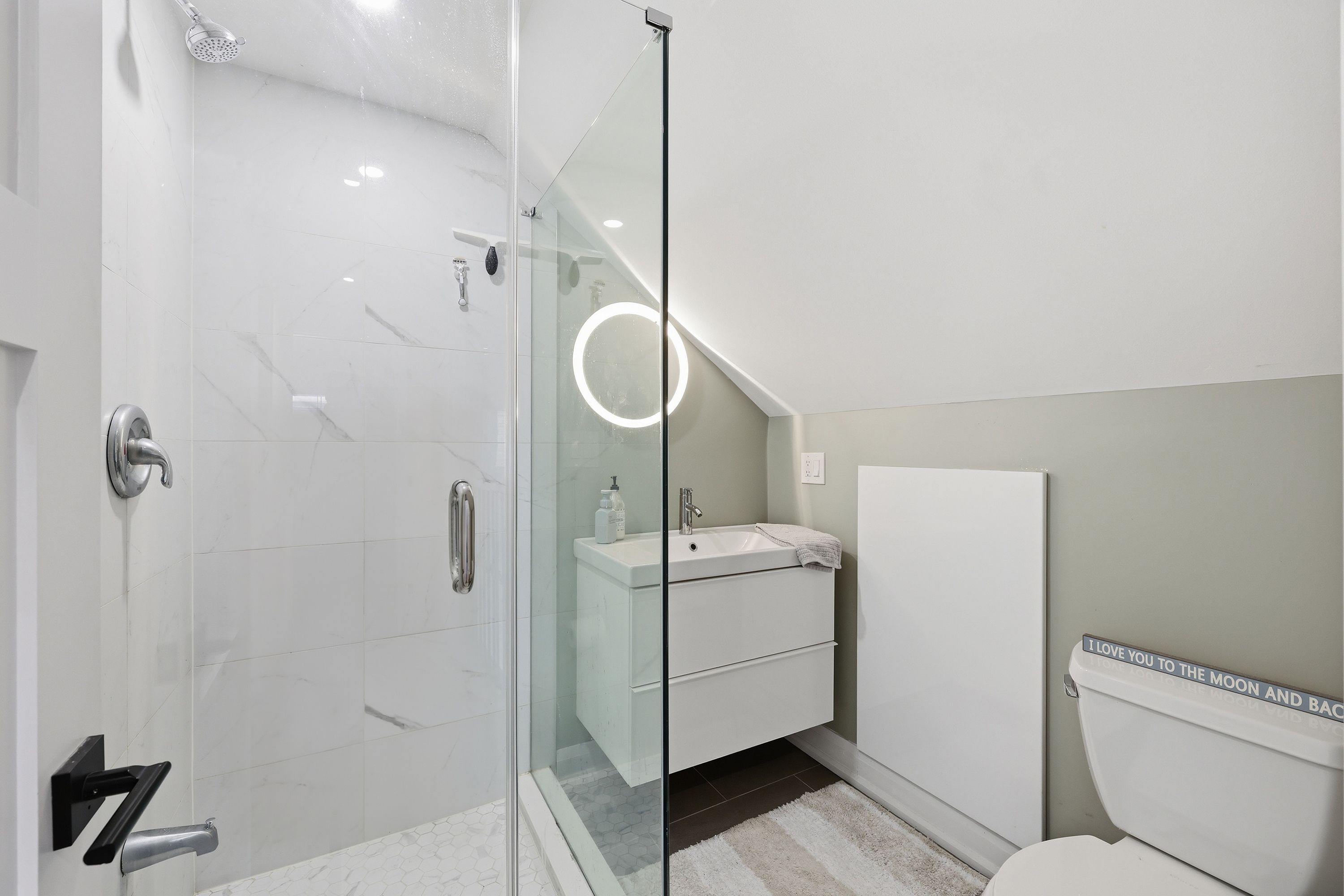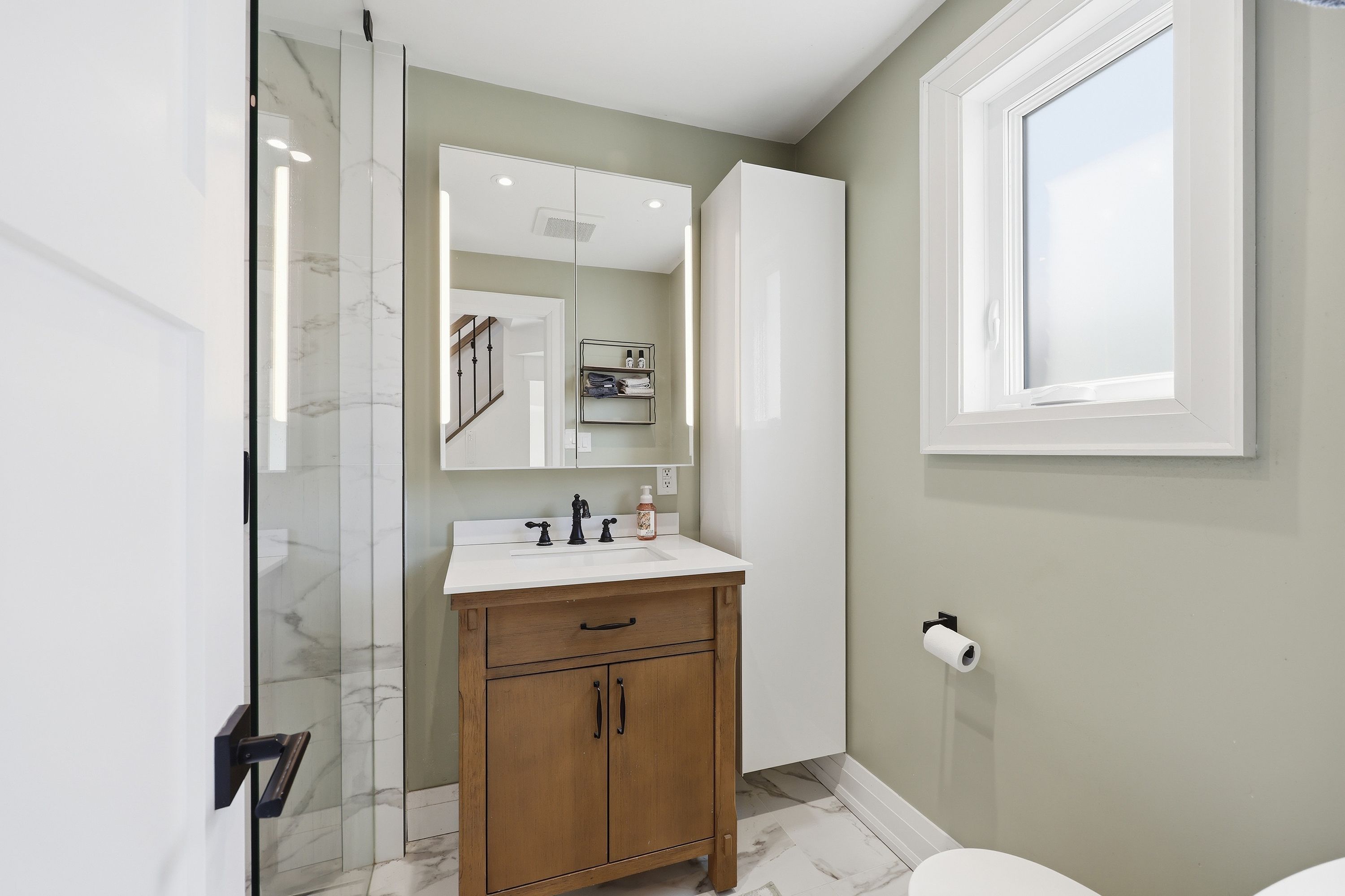 • Fully finished lower level with offices, laundry, and extra bathroom.