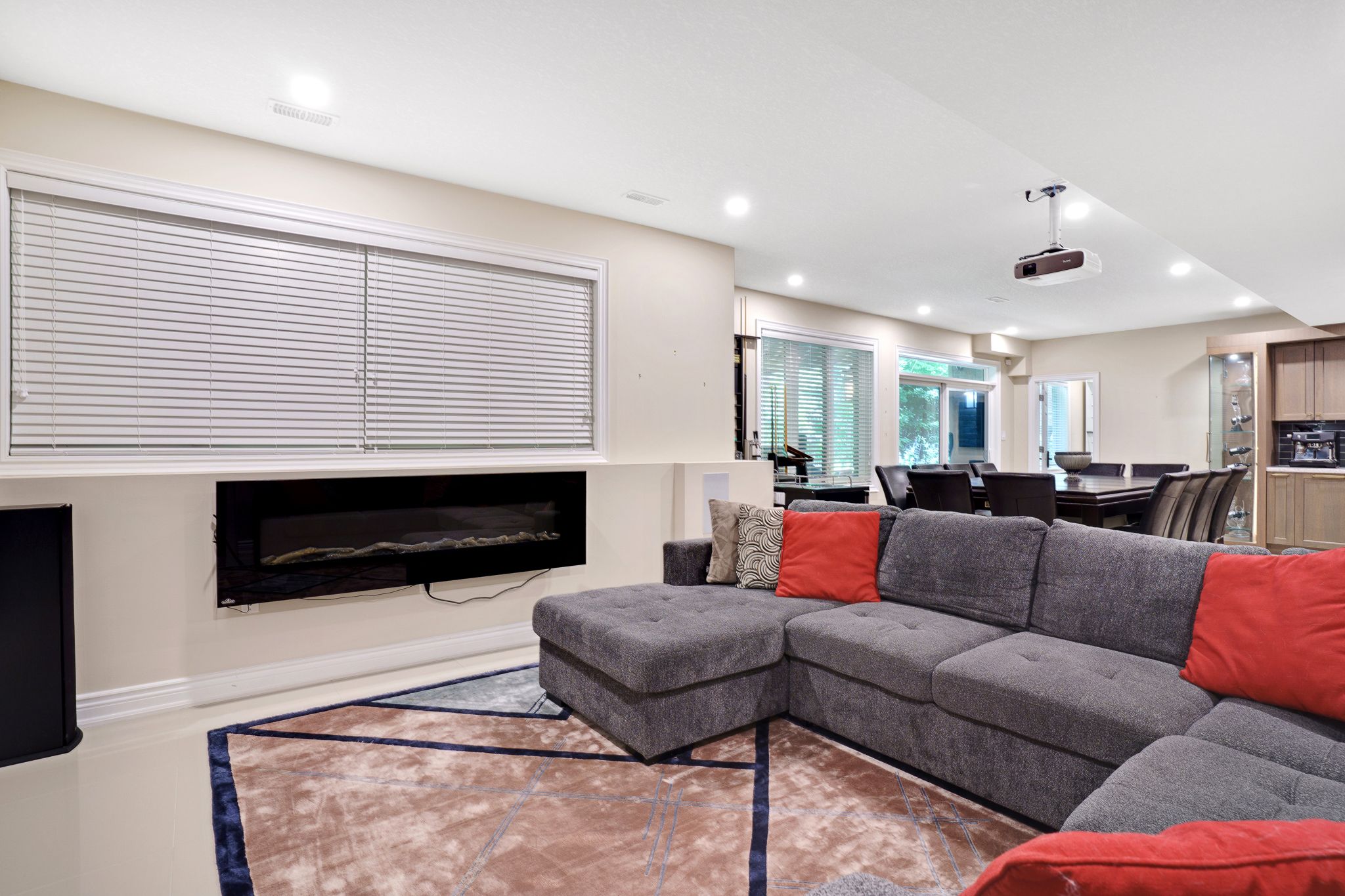Welcome to unit 8, 258 edgewater crescent a home that offers space, comfort, and a peaceful natural backdrop. Backing onto a forest with a flowing creek, this property feels like a private retreat while still being just minutes from everyday conveniences. The upper level includes four spacious bedrooms, one of which is currently set up as a walk-in dressing room. A fifth bedroom is located in the fully finished walkout basement, complete with a large walk-in closet, ideal for guests or extended family. With three full bathrooms upstairs, a main floor powder room, and another full bathroom with a built-in sauna downstairs, this home is well-suited for families of all sizes. The grand living room opens onto a massive sixteen by forty foot waterproof deck, offering views of mature trees and the creek below, a perfect extension of your living space. Downstairs, the basement features a theatre room, a second kitchen with a custom wine cabinet, and a spacious family room, making it a versatile area for entertaining or multi-generational living. A separate four-season room, completed in 2019, sits off the large covered patio for year-round enjoyment. This home also features a triple car garage, reverse osmosis system in the kitchen, and a water leak detection system. These thoughtful upgrades add comfort, function, and peace of mind. Set on a quiet street in a desirable neighbourhood, this beautifully maintained home is a rare opportunity to enjoy privacy, space, and convenience all in one.