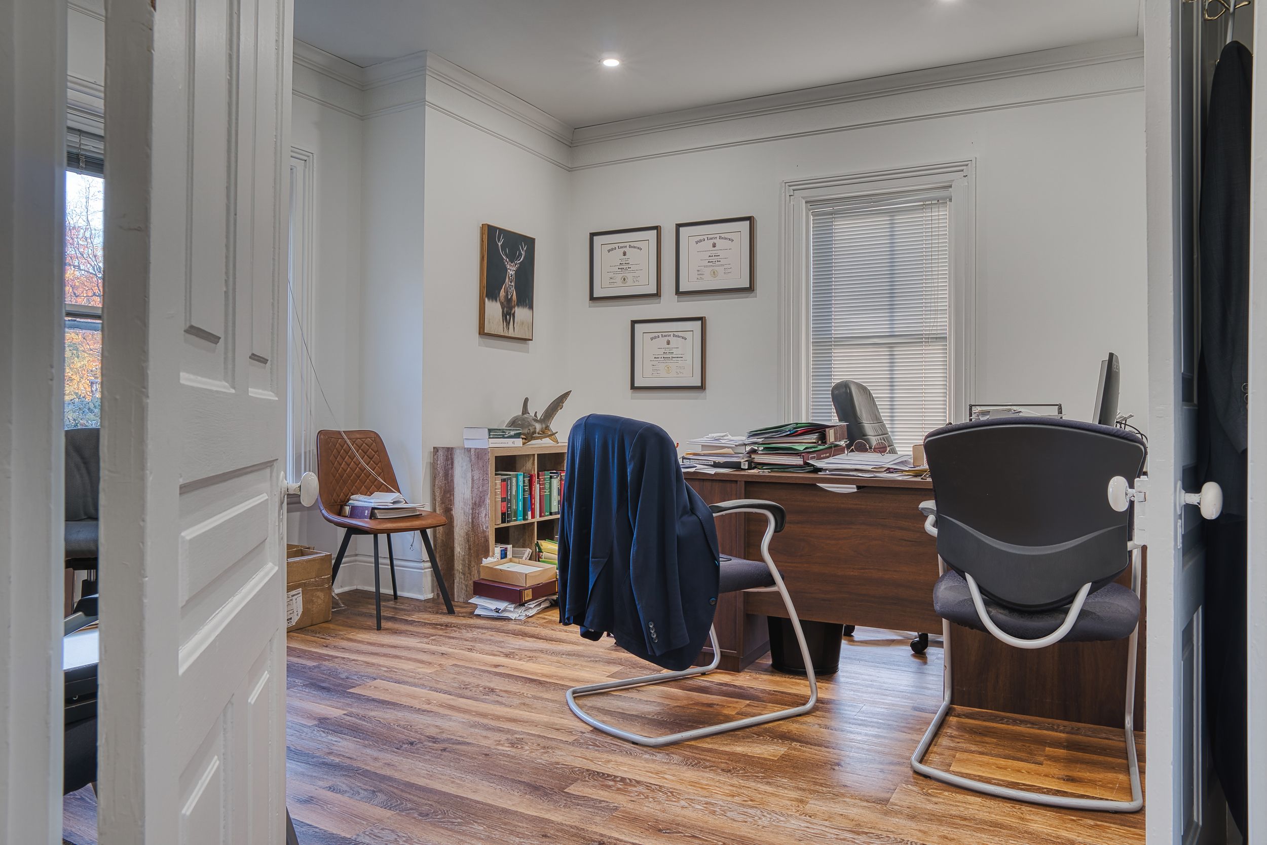 A rare opportunity to own a beautiful, historic mixed-use commercial/residential property located on main street in stratford, ontario. Prime, high-visibility location with excellent street presence and signage. The upper level features a spacious two-bedroom apartment complete with in-suite washer and dryer, offering comfortable residential living or strong rental potential. The main and second floors were previously occupied by a law office that relocated solely to accommodate a need for additional space. Extensively updated throughout, the property has undergone significant improvements, including complete replacement of former knob-and-tube electrical wiring, installation of new high-efficiency lighting, ethernet cabling run to all rooms, patching and repainting of most of the building, new flooring throughout the entire upper unit and select areas of the main floor, and new toilets in both bathrooms along with updated fixtures in the lower-level bathroom. This is an excellent income-producing property offering the flexibility to own and operate your business on-site while benefiting from supplemental residential rental income. Ideal for entrepreneurs seeking the perfect work-life balance. Zoned mur, permitted uses include residential and a wide range of business opportunities such as professional or medical offices, clinics, studios, personal care establishments, day spa, pet grooming, private or commercial schools, and more. Conveniently located close to all amenities including downtown shopping, stratford festival theatres, restaurants, schools, and parks. The property also features a private parking lot accommodating seven or more vehicles. A truly versatile investment with exceptional visibility in one of stratford's most desirable areas.